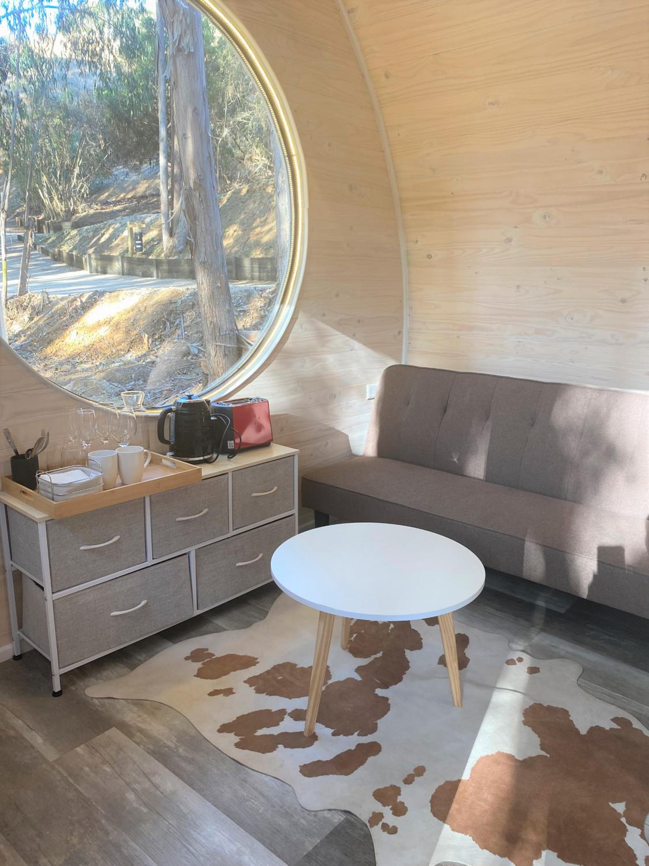 Carisimo para los servicios, llegamos y nos dimos con loS tachos con la basura de los huéspedes anteriores y una escalera larga y con mucha subida por la cual subimos 3 noches en la oscuridad, a pesar de q pedimos q nos prendan las luces, súper ruidoso, ladridos de perros, y camiones y autos q pasan por ruta cercana, tuvimos q llevar el agua para consumo, el wifi no está disponible en la carpa. La parrilla, es una parrilla electrica sucia. Haría falta un microondas. Al hacer check out, y comentar sobre la basura y las luces de la subida, nos quisieron compensar con un desayuno, ya habiamos desayunado y algunas cosas no hay forma de compensar. Nos hubieran prendido las luces cuando pedimos.