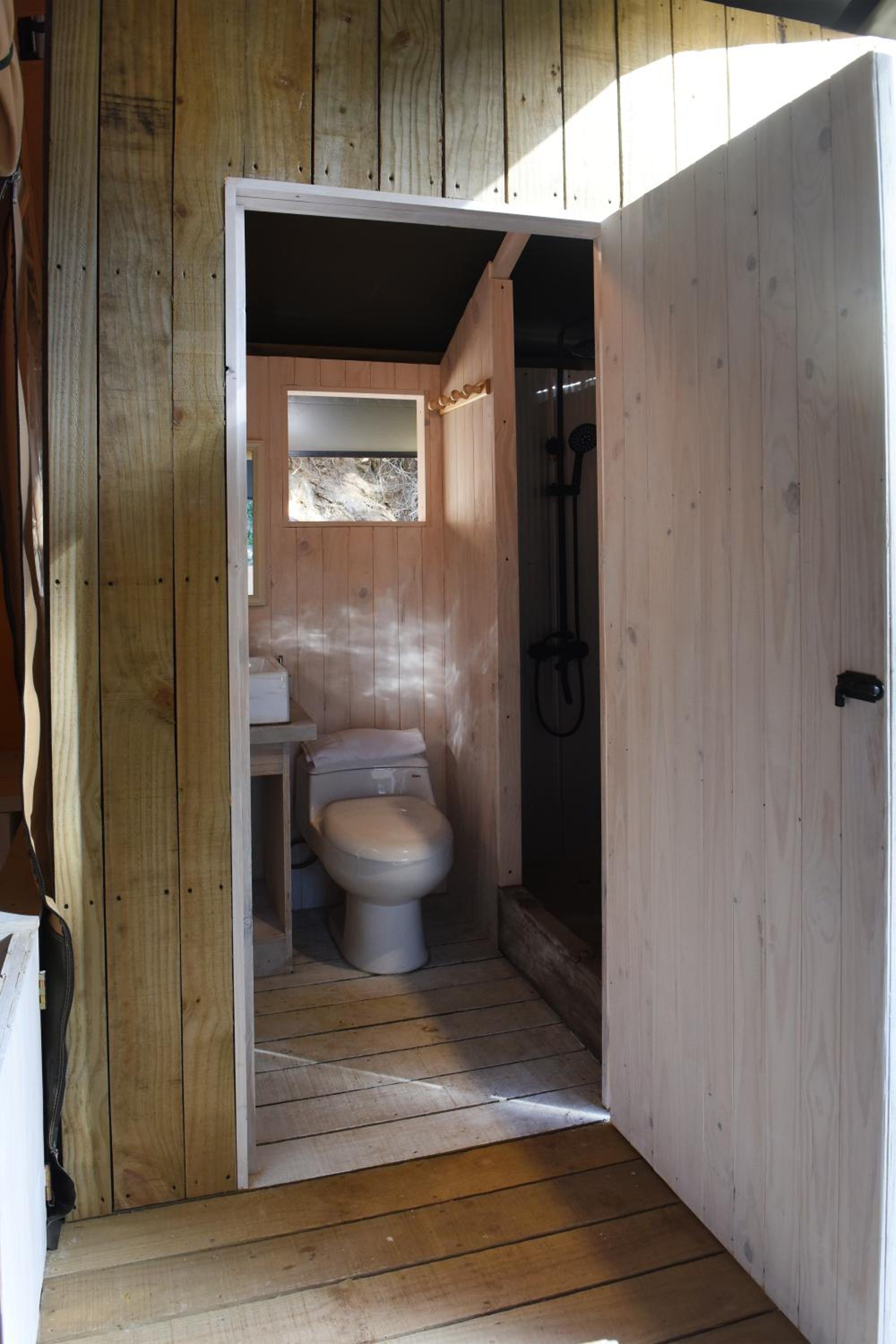 Mi cabaña tenía una ducha exterior, pero el desagüe estaba malo y se devolvía toda el agua, fue lamentable porque era una muy buena instalación para ocupar.