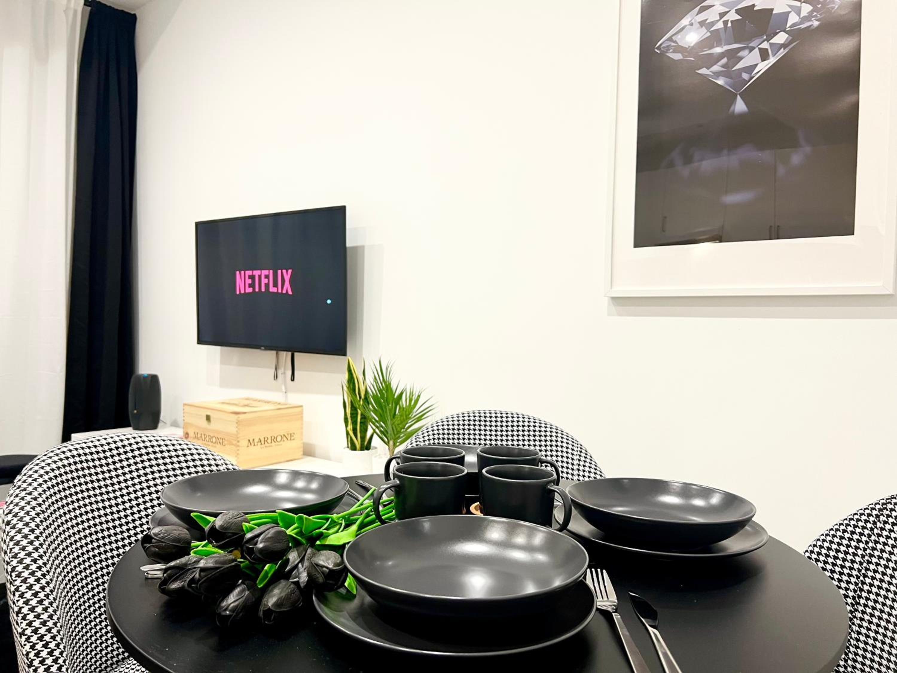 Modern Amenities: Enjoy a comfortable stay with air conditioning, free WiFi, and a flat-screen TV with streaming services. The fully equipped kitchen and private entrance provide convenience and privacy.