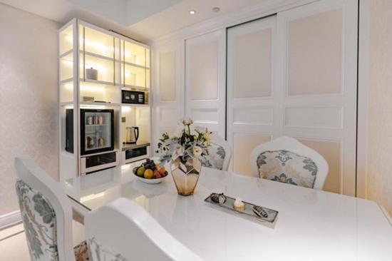 No kettle ot cups in room.to make a coffee or tea despite even having a dining table