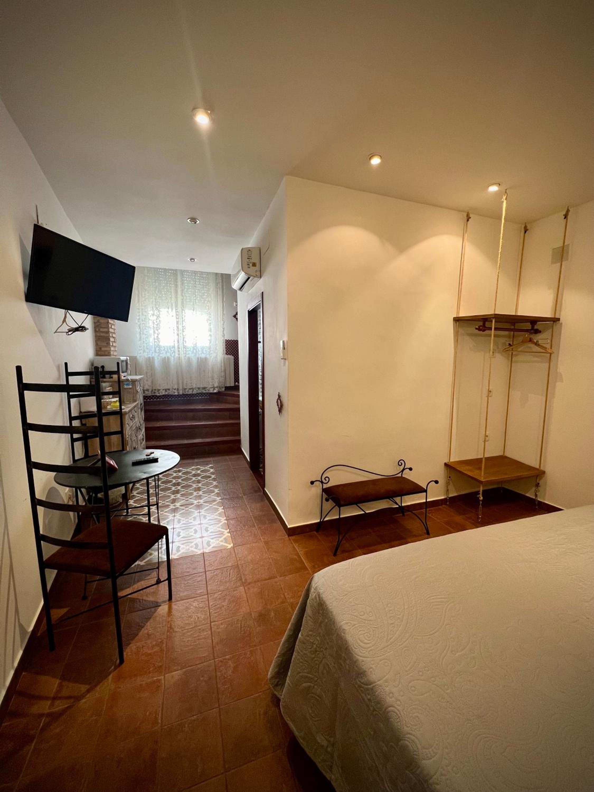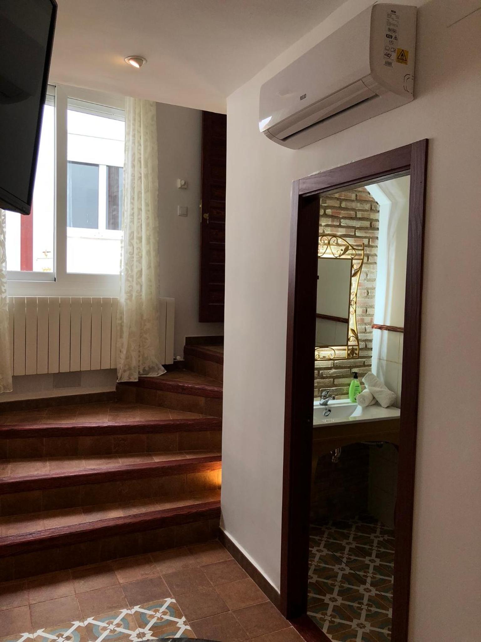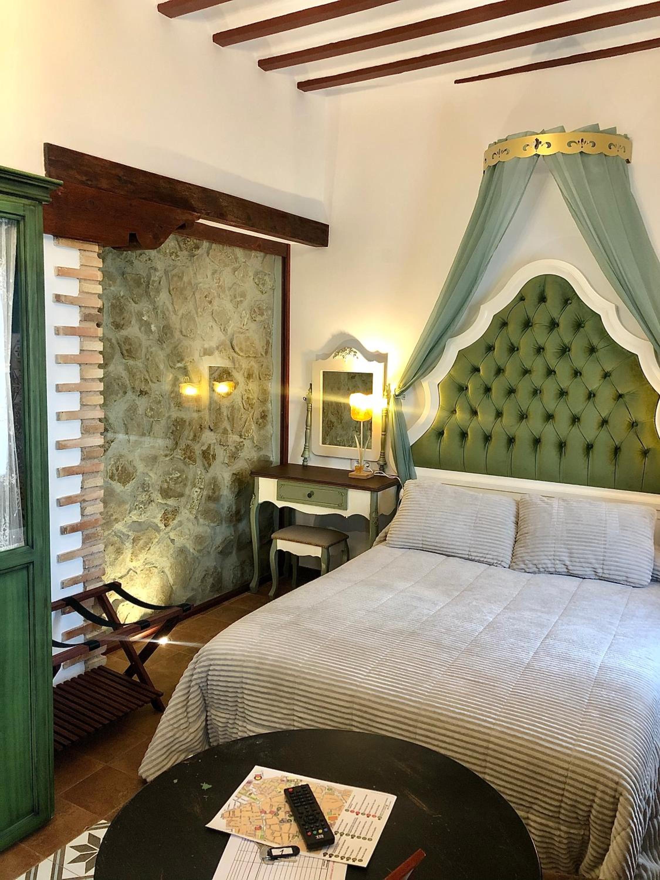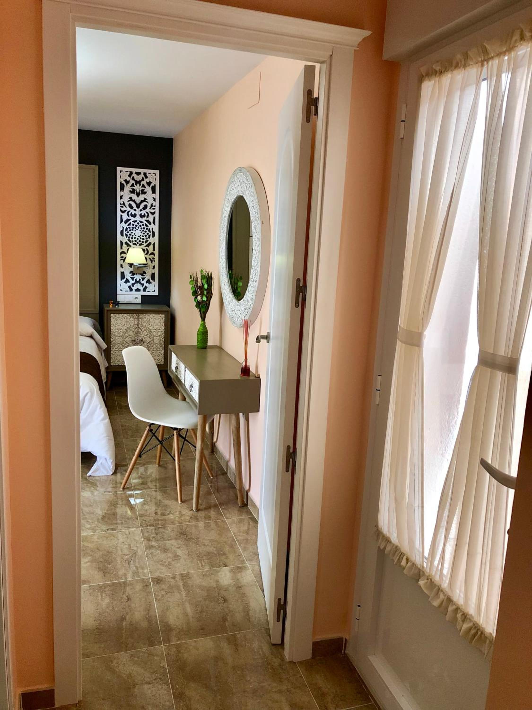 Bien situado y fácil aparcamiento cerca. La atención del personal extraordinaria. La habitación es grande y la cama también (grande y cómoda). Tiene cafetera con 2 capsulas y una botella de agua de 2 litros ya que no se puede beber el agua del grifo. El baño es pequeño pero el tamaño de la ducha es bueno. Para llegar a la habitación pasas por un patio típico de la zona y por la noche iluminado con unas velas eléctricas. Muy bonito. Esta todo muy nuevo. Lo recomiendo