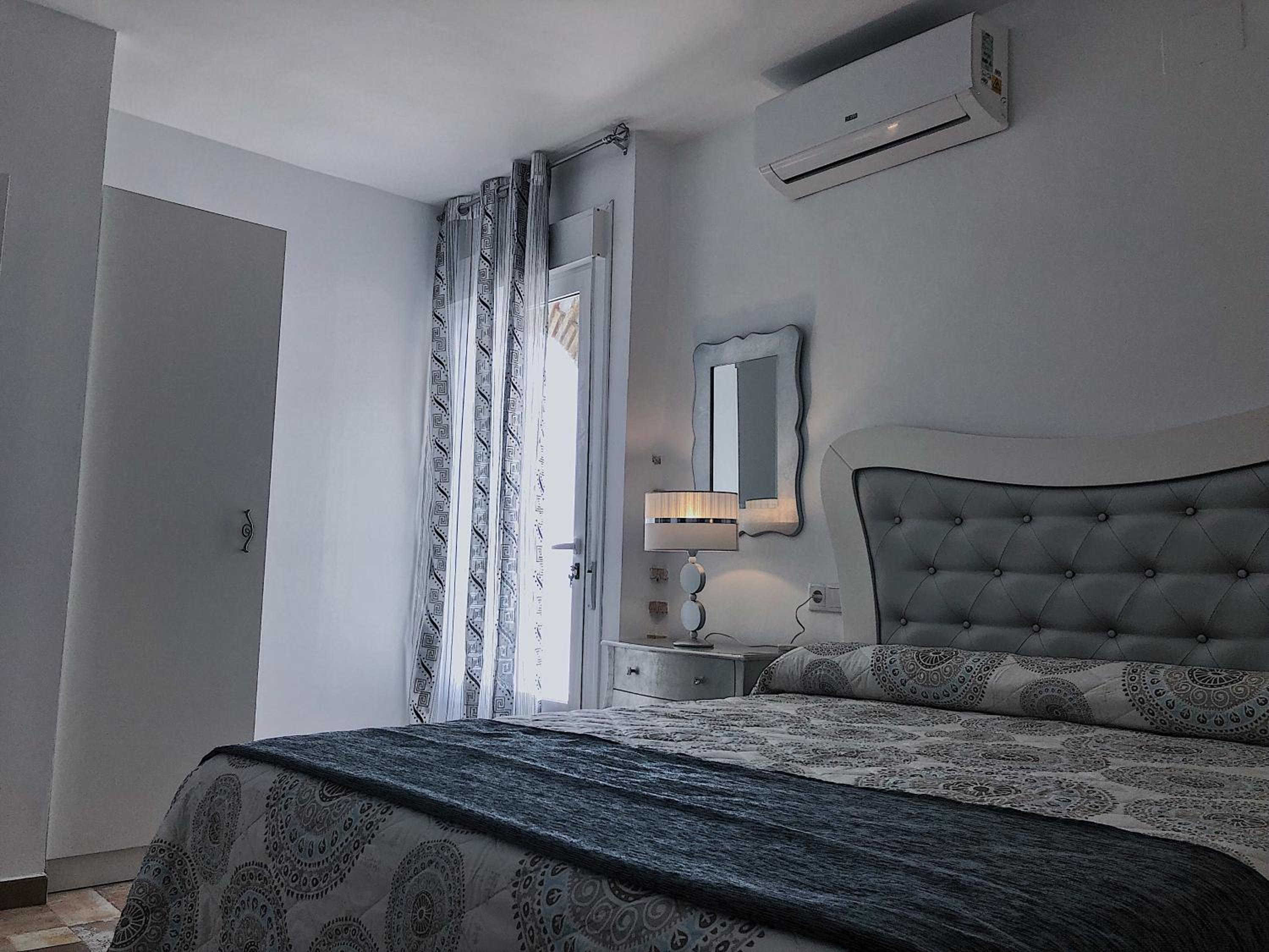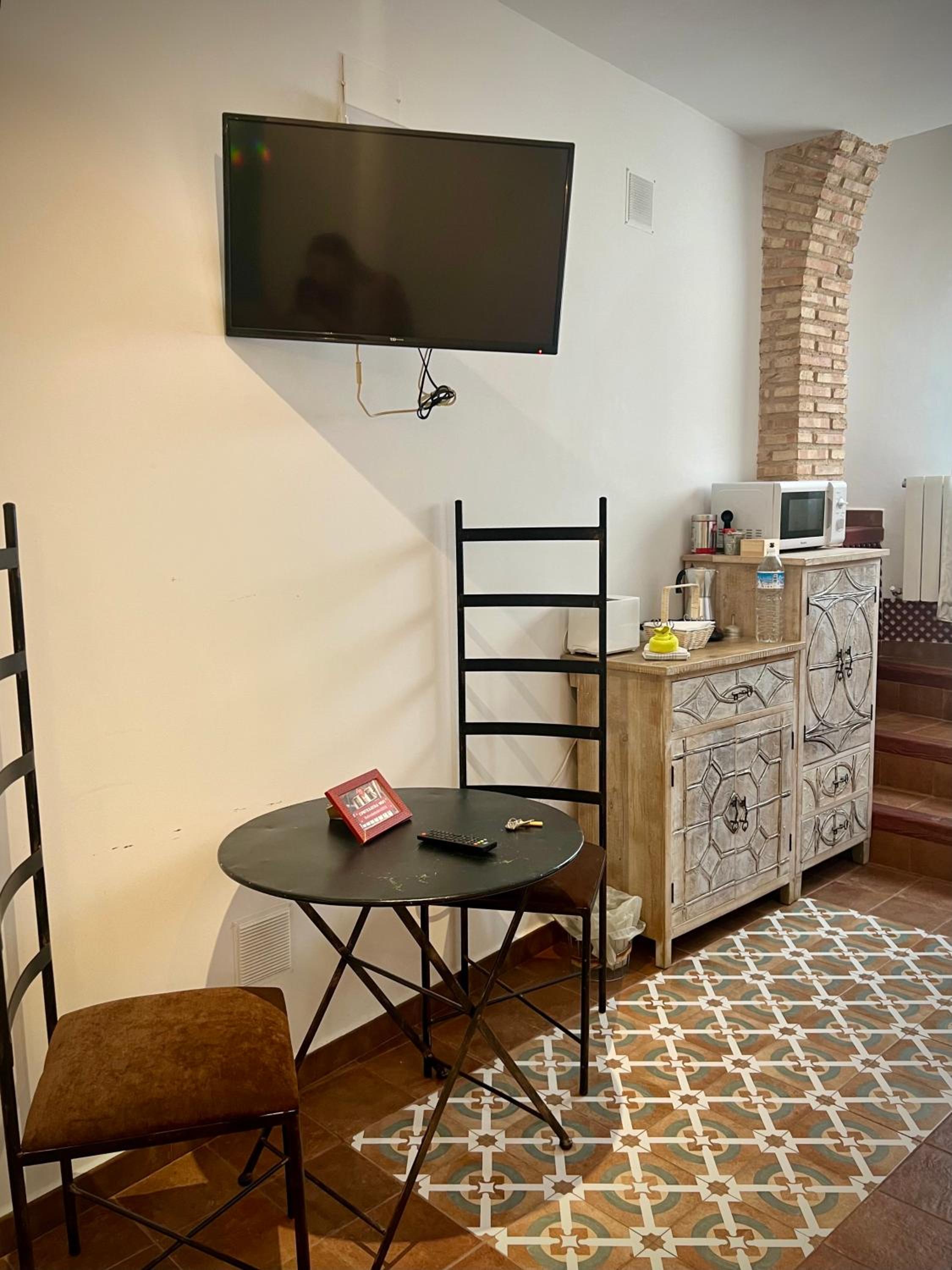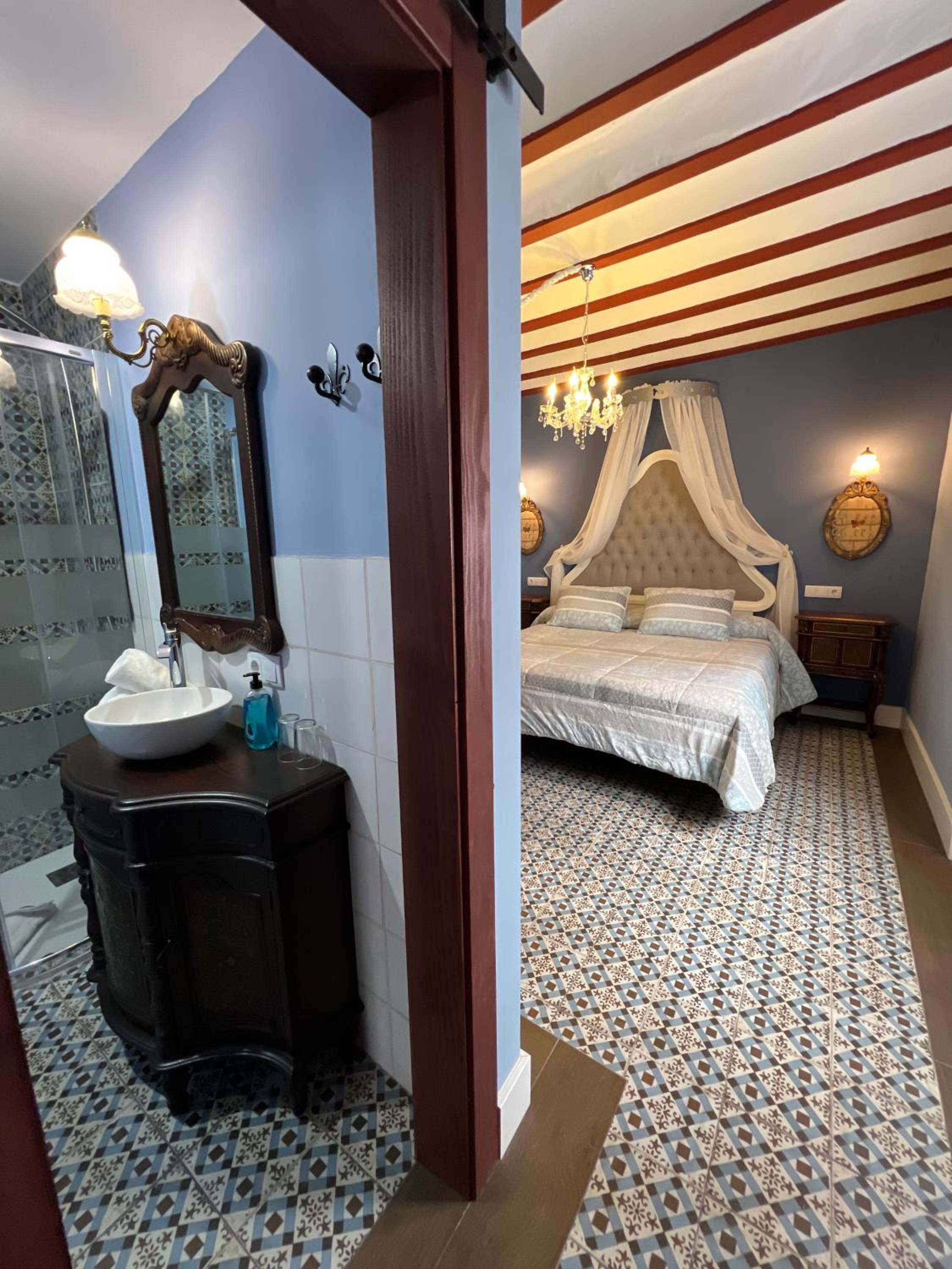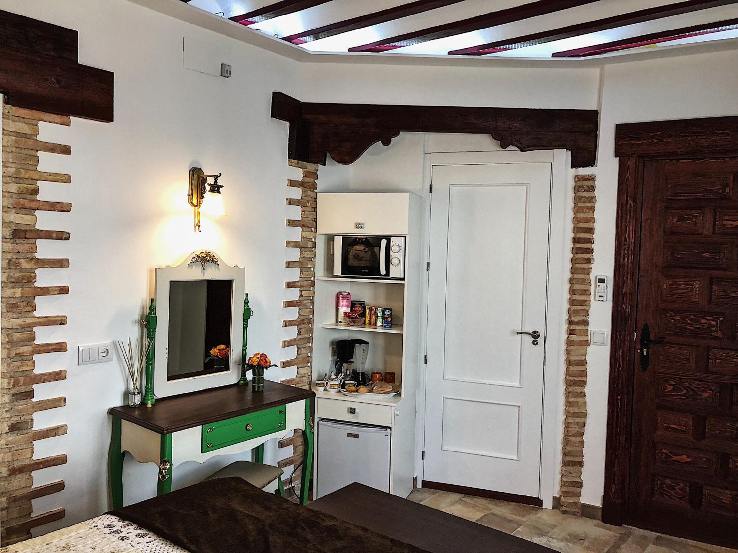 Bien situado y fácil aparcamiento cerca. La atención del personal extraordinaria. La habitación es grande y la cama también (grande y cómoda). Tiene cafetera con 2 capsulas y una botella de agua de 2 litros ya que no se puede beber el agua del grifo. El baño es pequeño pero el tamaño de la ducha es bueno. Para llegar a la habitación pasas por un patio típico de la zona y por la noche iluminado con unas velas eléctricas. Muy bonito. Esta todo muy nuevo. Lo recomiendo