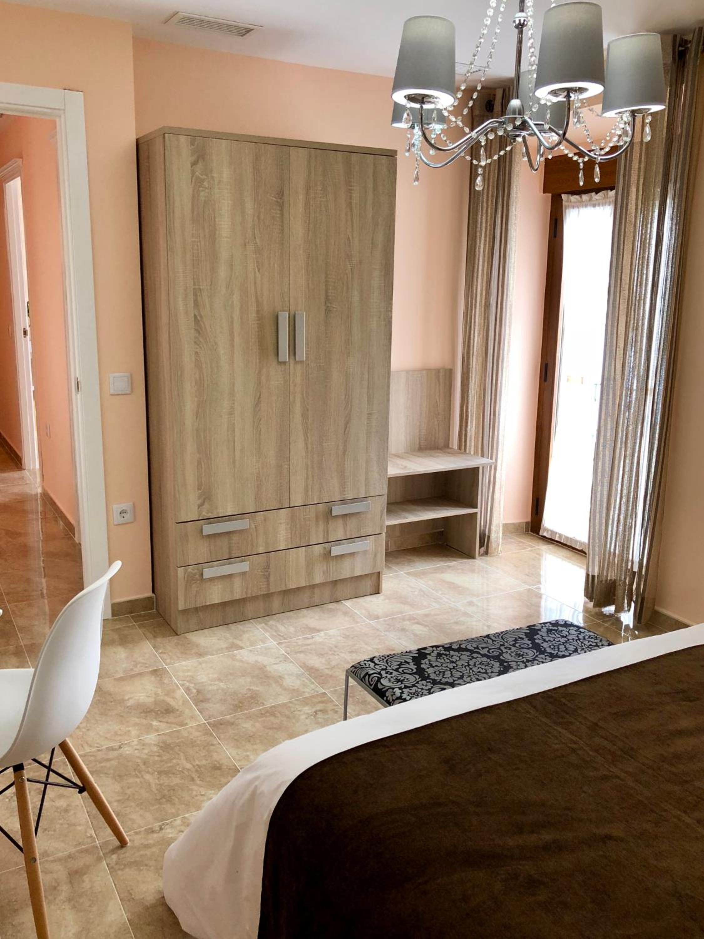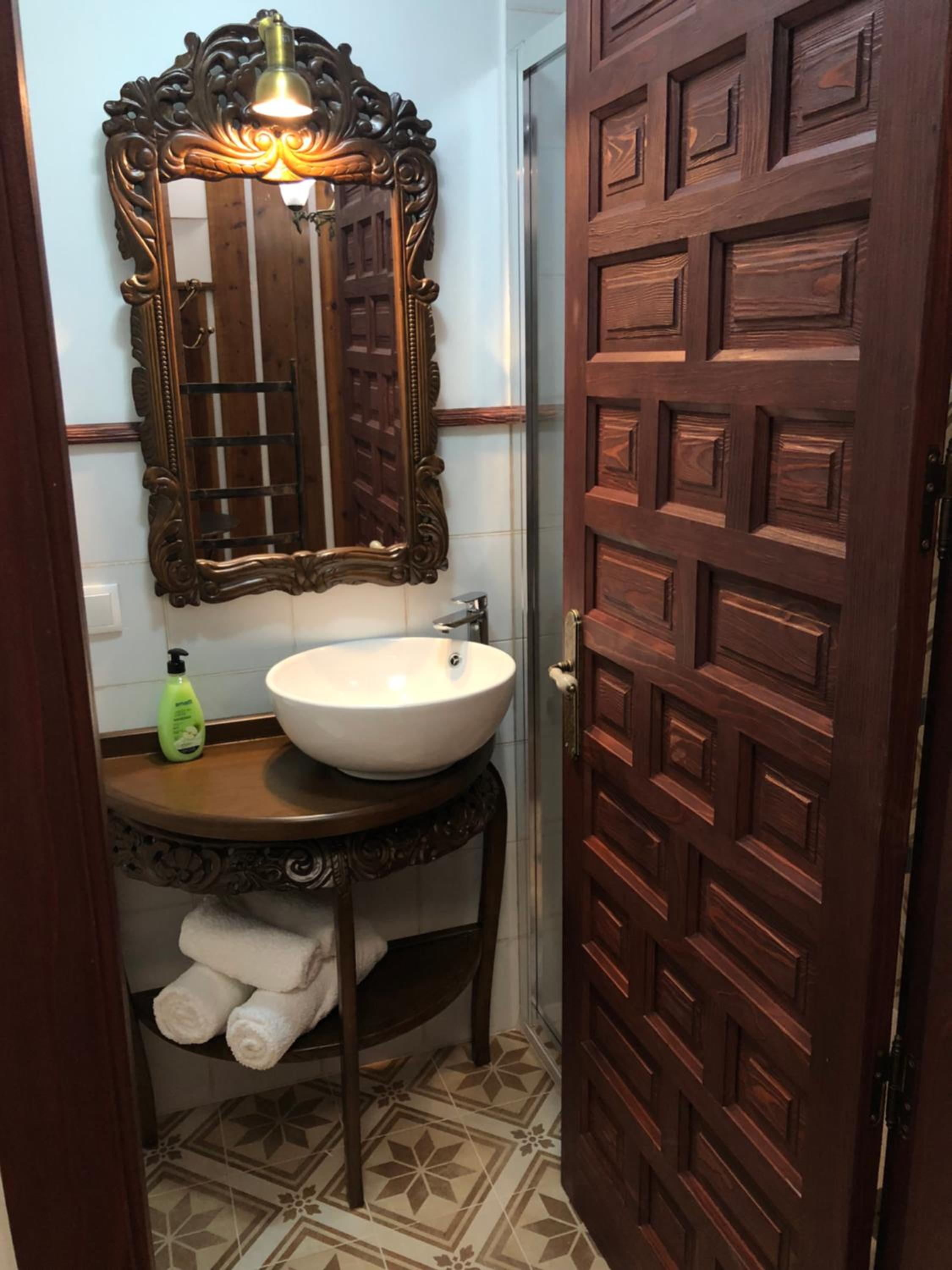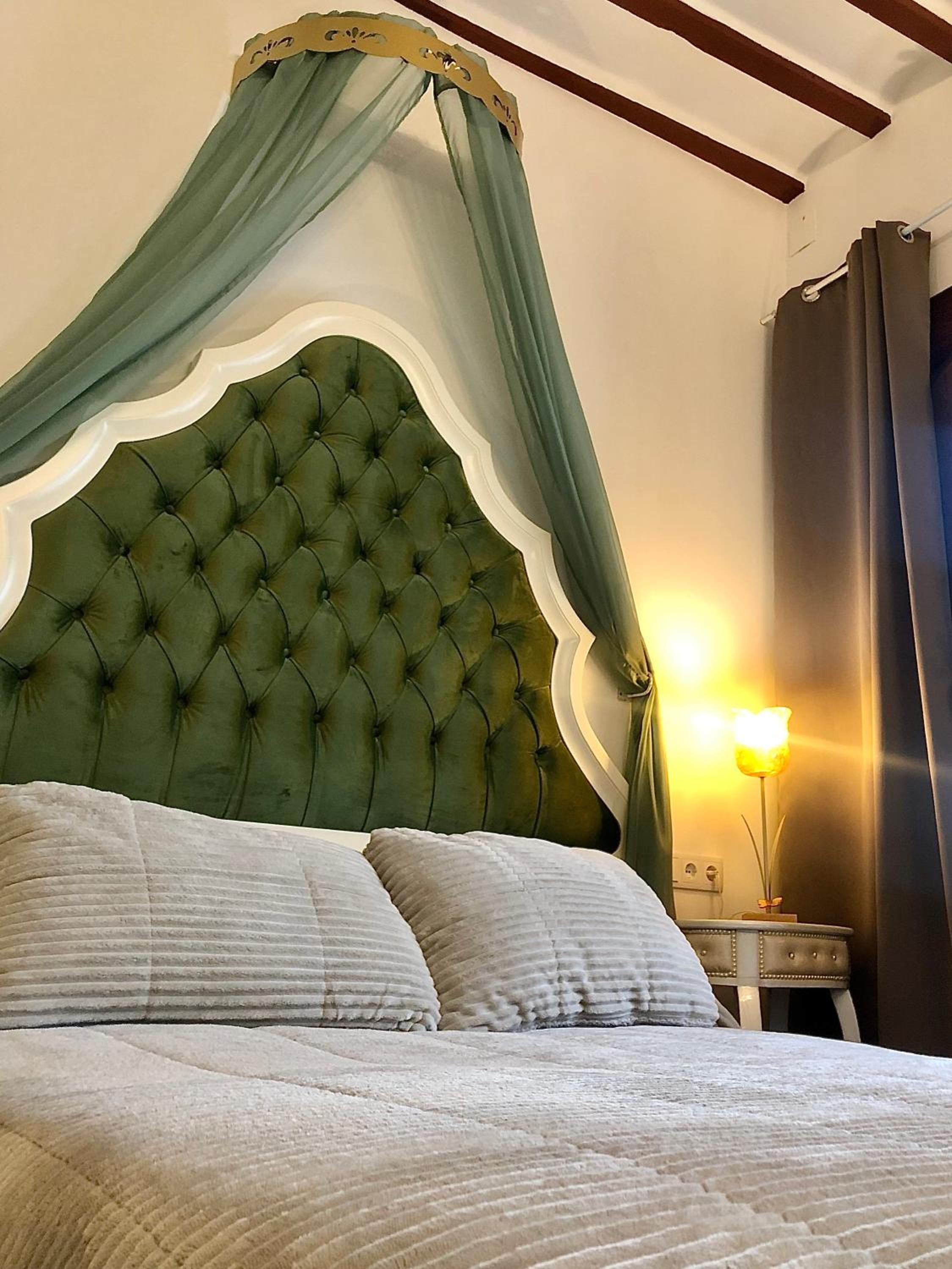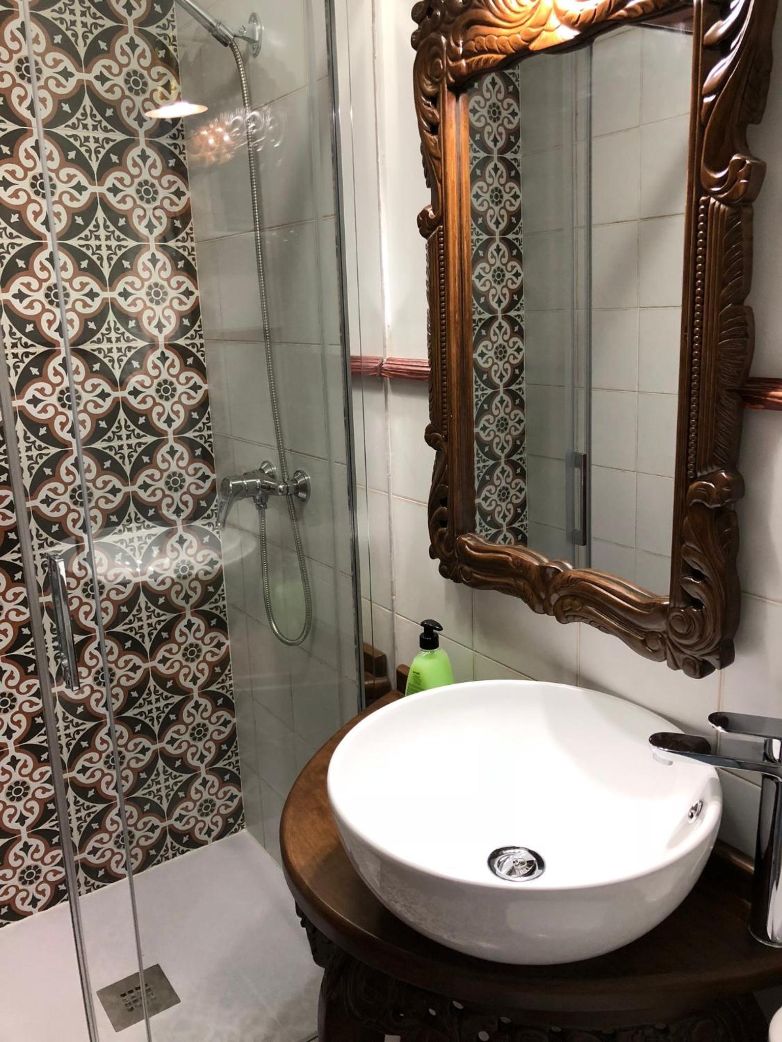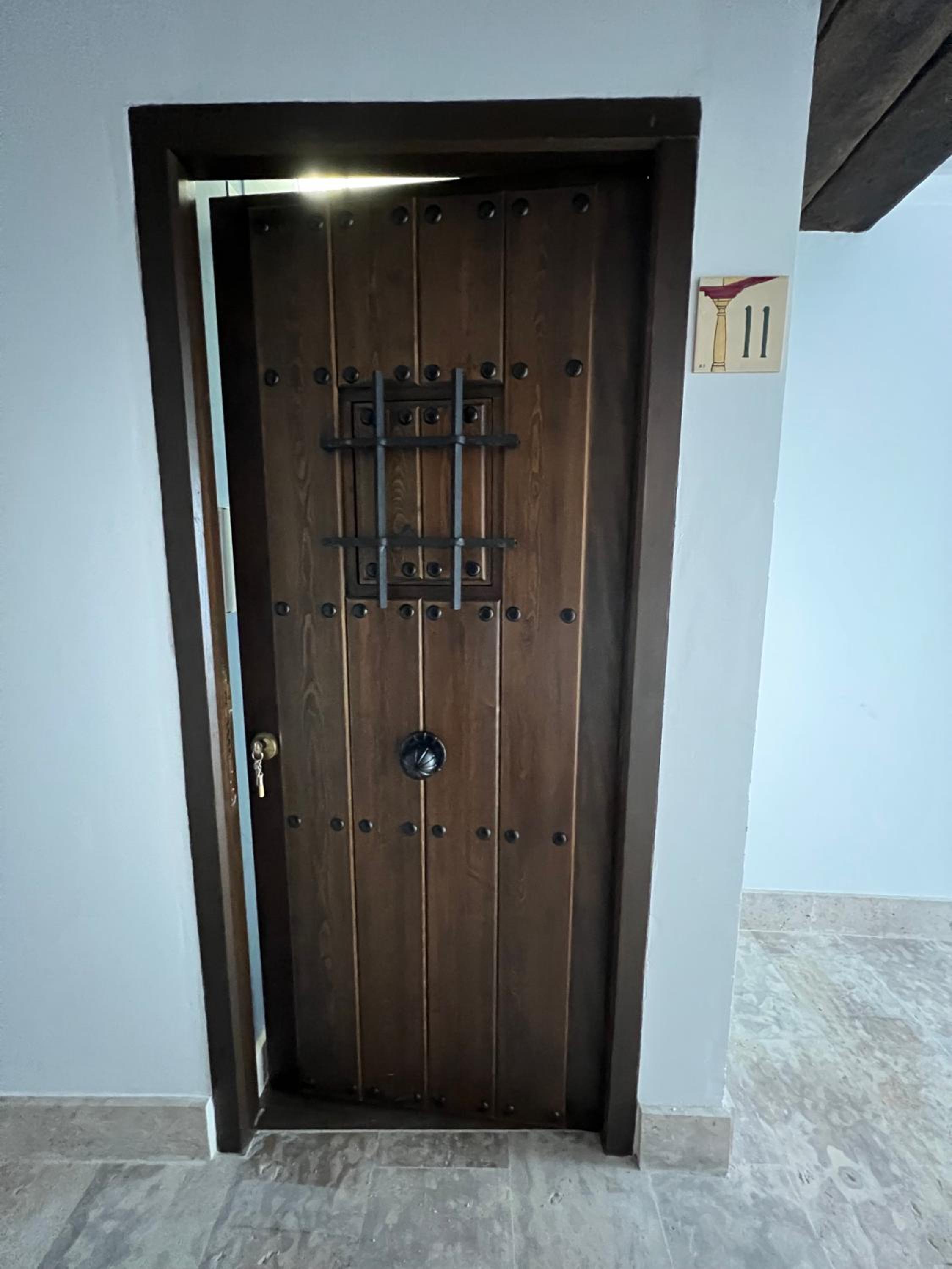 Bien situado y fácil aparcamiento cerca. La atención del personal extraordinaria. La habitación es grande y la cama también (grande y cómoda). Tiene cafetera con 2 capsulas y una botella de agua de 2 litros ya que no se puede beber el agua del grifo. El baño es pequeño pero el tamaño de la ducha es bueno. Para llegar a la habitación pasas por un patio típico de la zona y por la noche iluminado con unas velas eléctricas. Muy bonito. Esta todo muy nuevo. Lo recomiendo