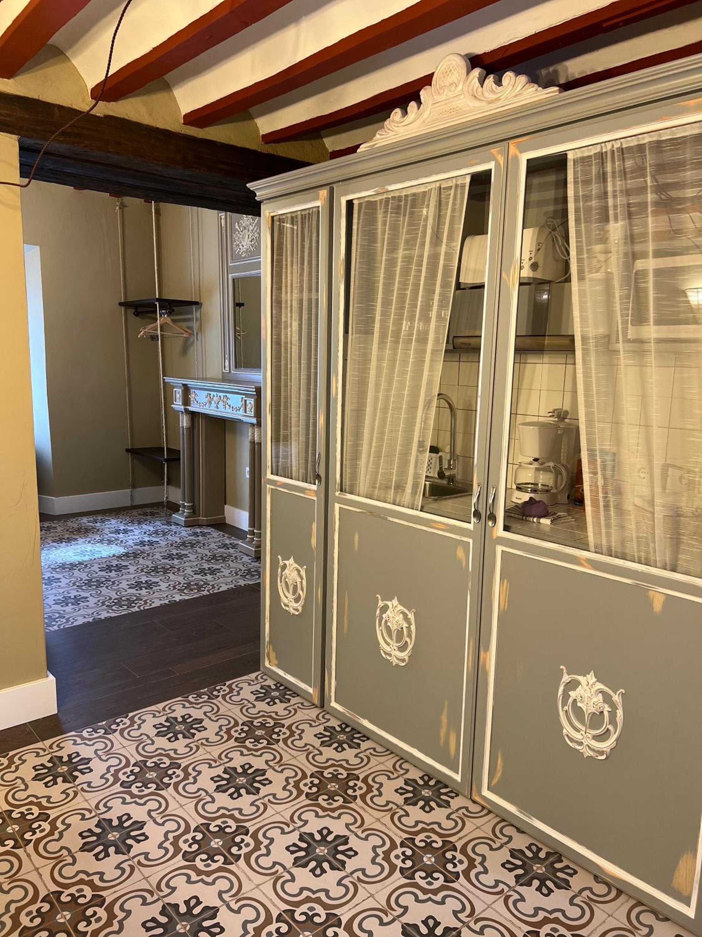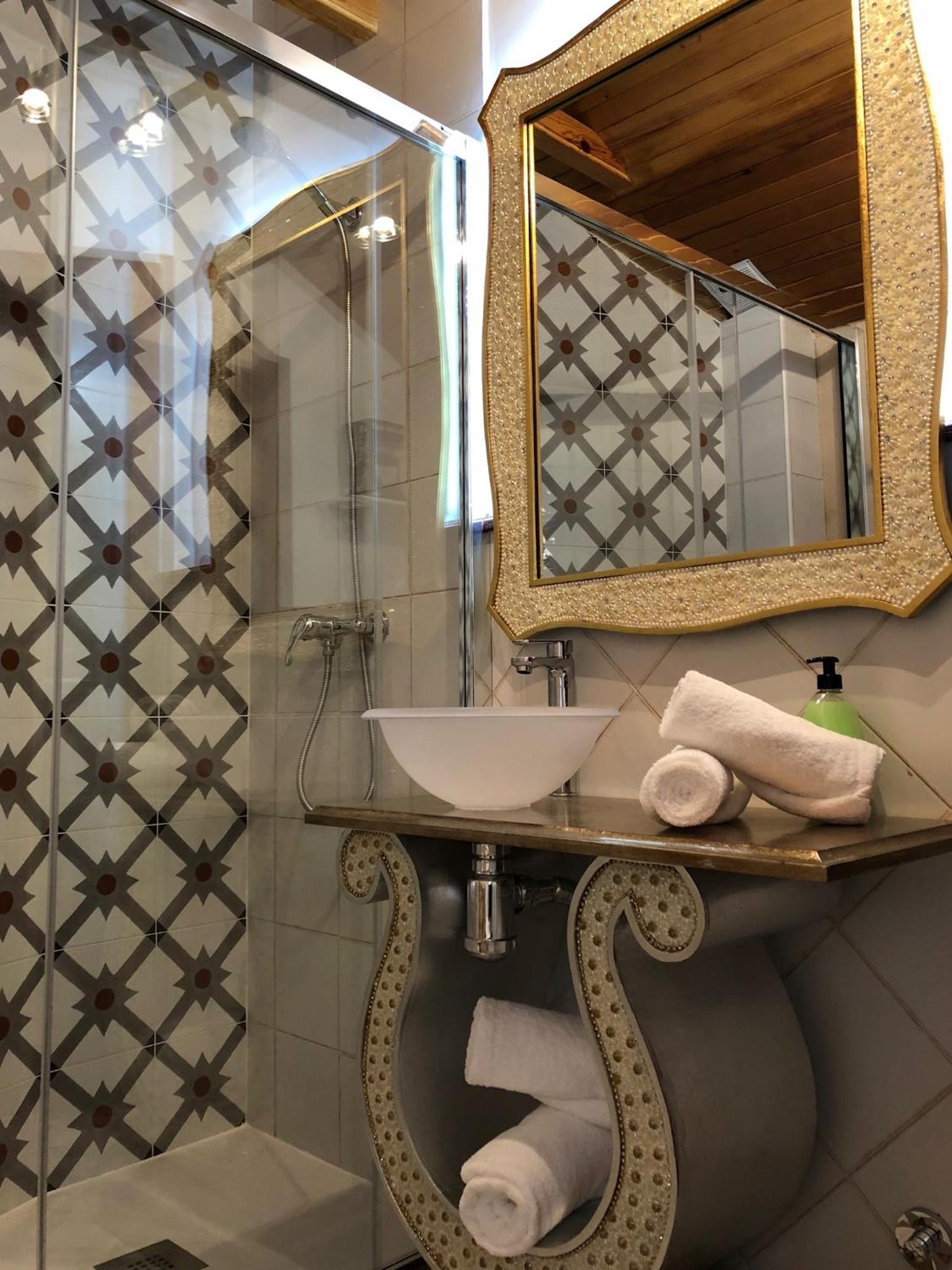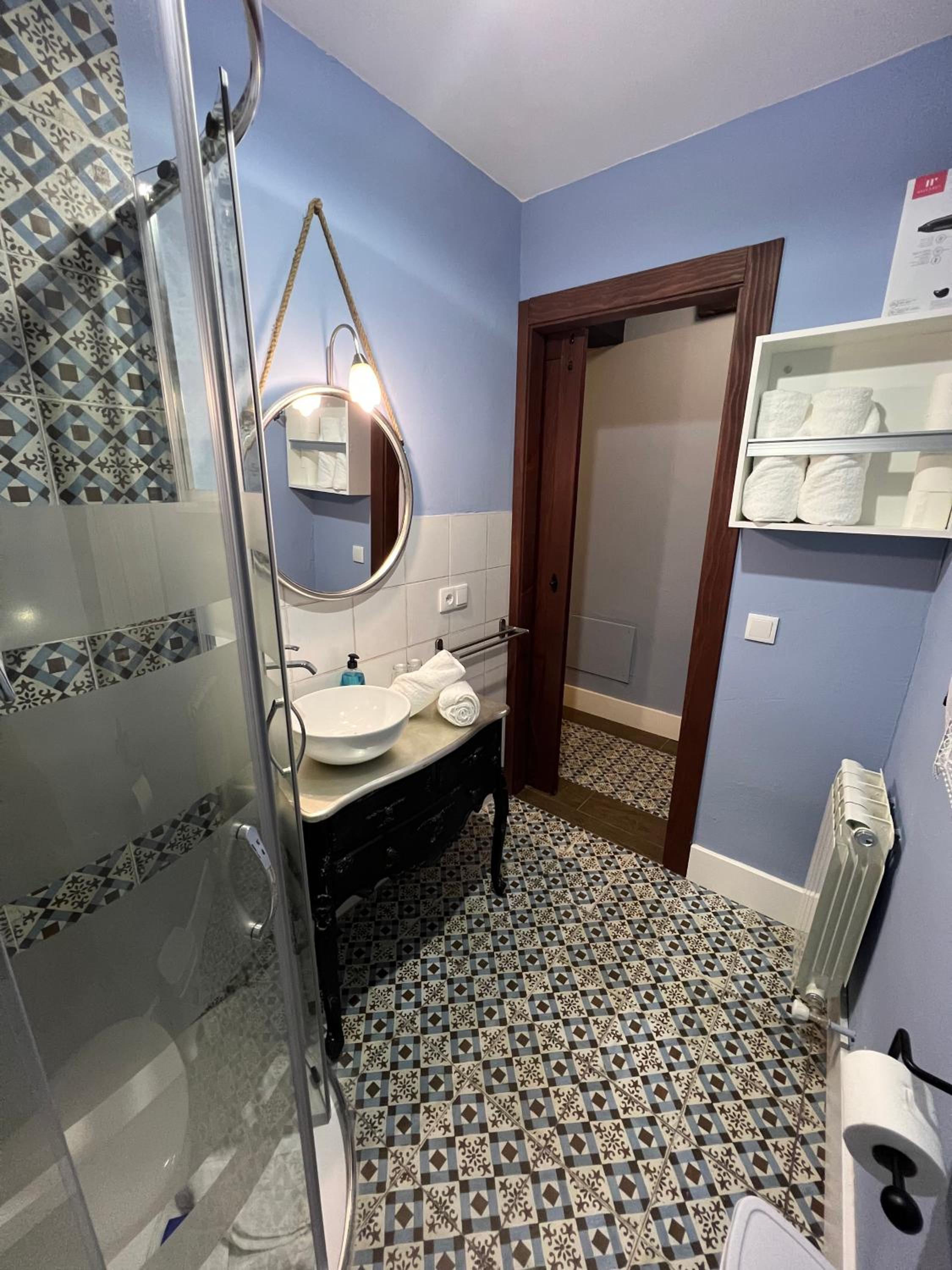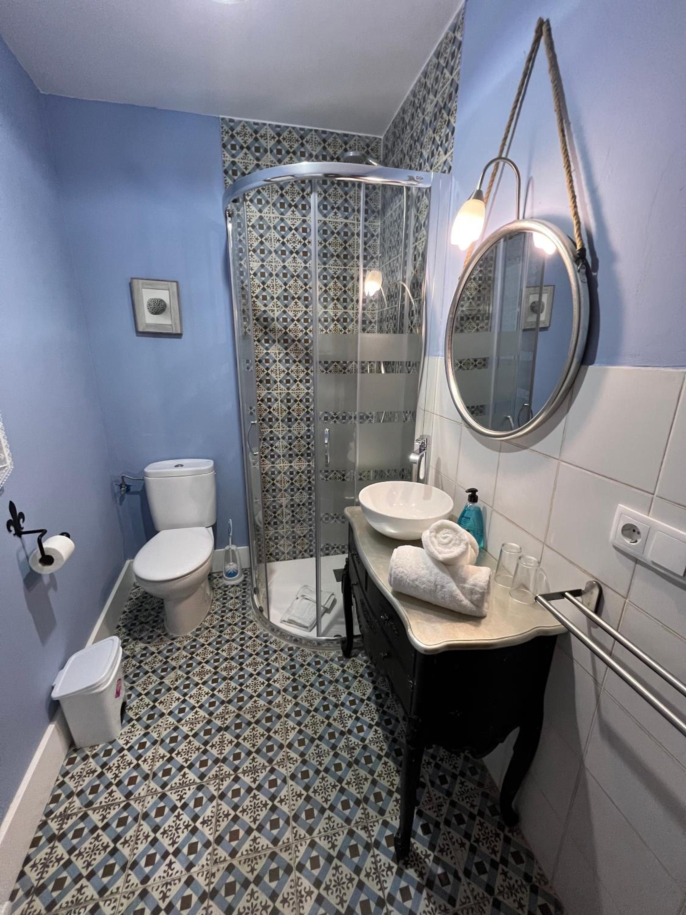 Bien situado y fácil aparcamiento cerca. La atención del personal extraordinaria. La habitación es grande y la cama también (grande y cómoda). Tiene cafetera con 2 capsulas y una botella de agua de 2 litros ya que no se puede beber el agua del grifo. El baño es pequeño pero el tamaño de la ducha es bueno. Para llegar a la habitación pasas por un patio típico de la zona y por la noche iluminado con unas velas eléctricas. Muy bonito. Esta todo muy nuevo. Lo recomiendo