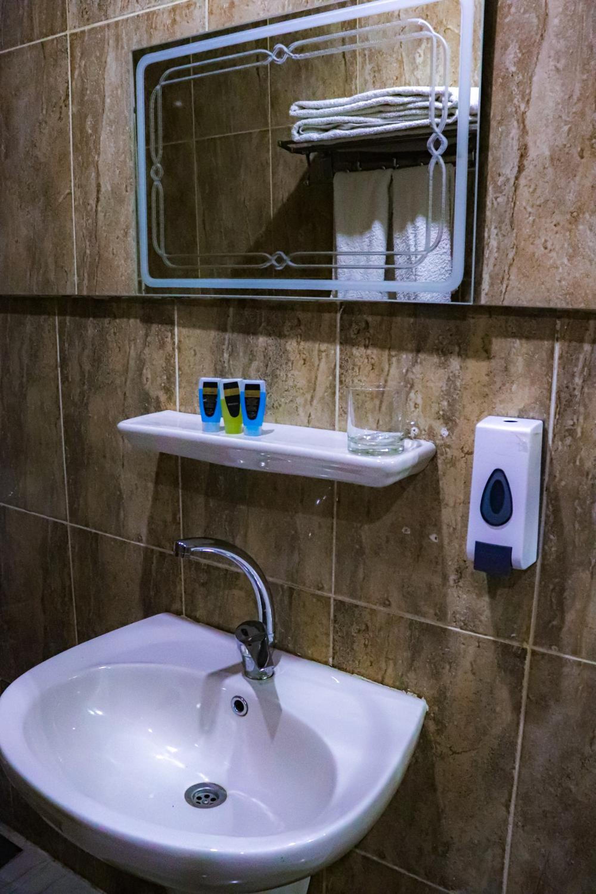 Когда мы заселялись, нам дали комнату с поломанным окном, которое дребезжало из-за кондиционера, звук был ужасный, а также дверь балкончика, выходившего на "конно-навозную" улицу совершенно не глушила никакие звуки. Мы попросили заменить номер, и нам пошли навстречу. Но в итоге жили мы в номере вообще без окон. Мы конечно много времени в отеле не проводили, но ощущение жизни в чулане немного деморолизовало. Ковролин на полу тоже скорее всего не часто чистят, поэтому на эту био-бомбу лучше босиком не вставать. При заселении в номере лежали старые кем-то ношеные тапки отельные. Я попросила заменить, и их заменили... на точно такие же старые ношеные, просто ужас! Полотенца тоже вначале были будто в чем-то испачканы, их тоже заменили после просьбы (но пришлось дважды напоминать). Но страшнее были кровати - я такого нигде не видела. Одеяла были без пододеяльников, а (внимание!) просто обернуты простынями с нижней стороны! Как в самых дешевых плацкартных поездах! Естественно во сне все это сползало, и я просто молилась на то, чтобы не заразиться ничем от этих одеял (вроде пронесло))). В душе вода плохо уходила. На все наши вопросы и пожелания хозяин учтиво улыбался и заверял, что все исправит, но по итогу половину просьб сразу же забывал. Район Гизы в целом вообще не туристический. Мы авантюристы и гуляли по округе, впечатления не из приятных. Не уверена, что вид на пирамиды (если вы все же найдете хороший отель с таковым) стоит пребывания здесь и долгих поездок в центр. Лучше селиться в городе, а сюда приехать один раз на пирамиды и не возвращаться. Кстати микроволновки в этом отеле вообще нет.