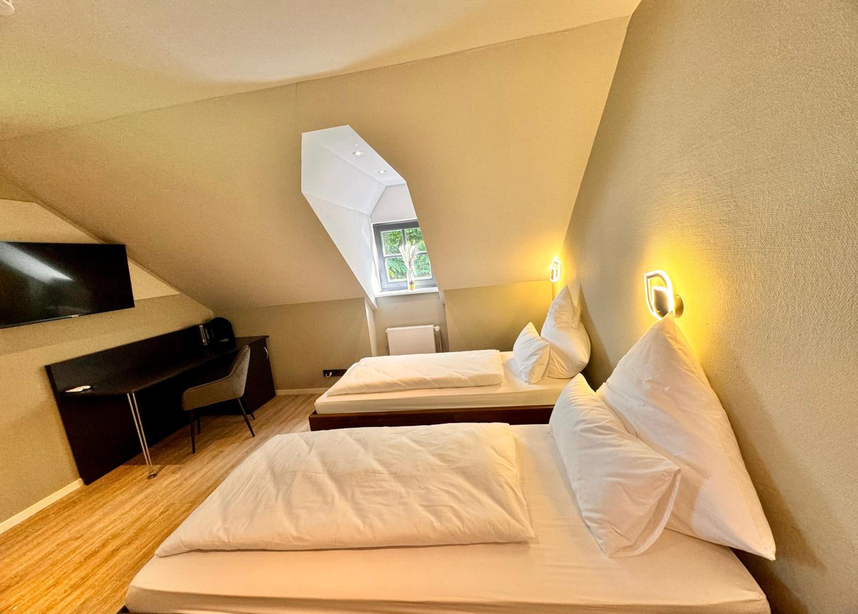 Ich mag keine Schlüsselsysteme, die mit zugesandtem Code funktionieren, wenn ich zu Gast bin, möchte ich auch begrüßt werden. Das Restaurant war geschlossen, also musste ich das Haus nochmals verlassen. Der Fernseher funktionierte nicht, Matratze einfachster Bauart auf einem sehr einfachen Lattenrost- so schlecht habe ich lange nicht gelegen. Eine LED Beleuchtung am Kopfende illuminierte auch im ausgeschalteten Zustand nachts das Zimmer- grauenhaft. Das einfache Frühstück mit aufgebackenen TK- Brötchen enttäuschte zusätzlich…
