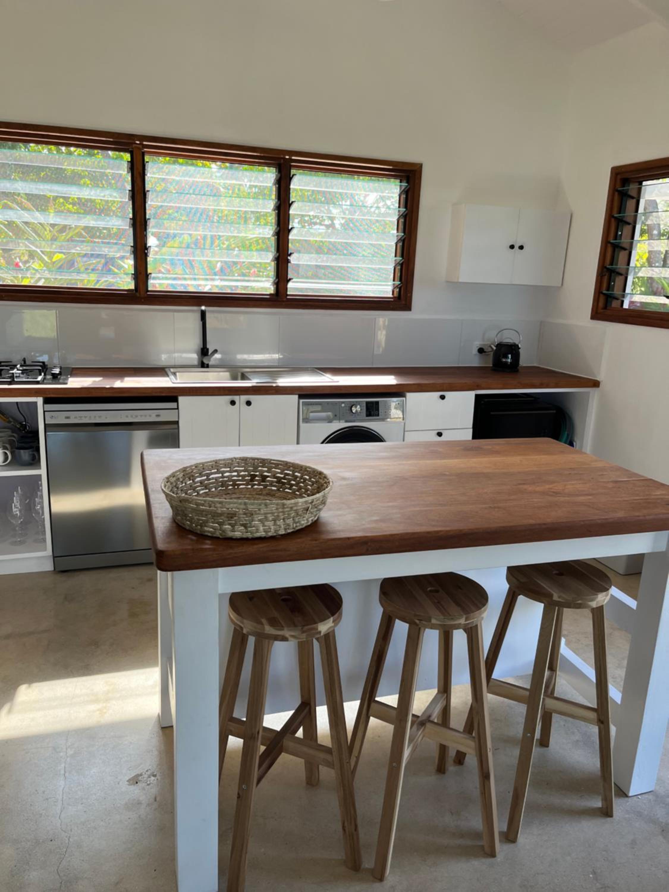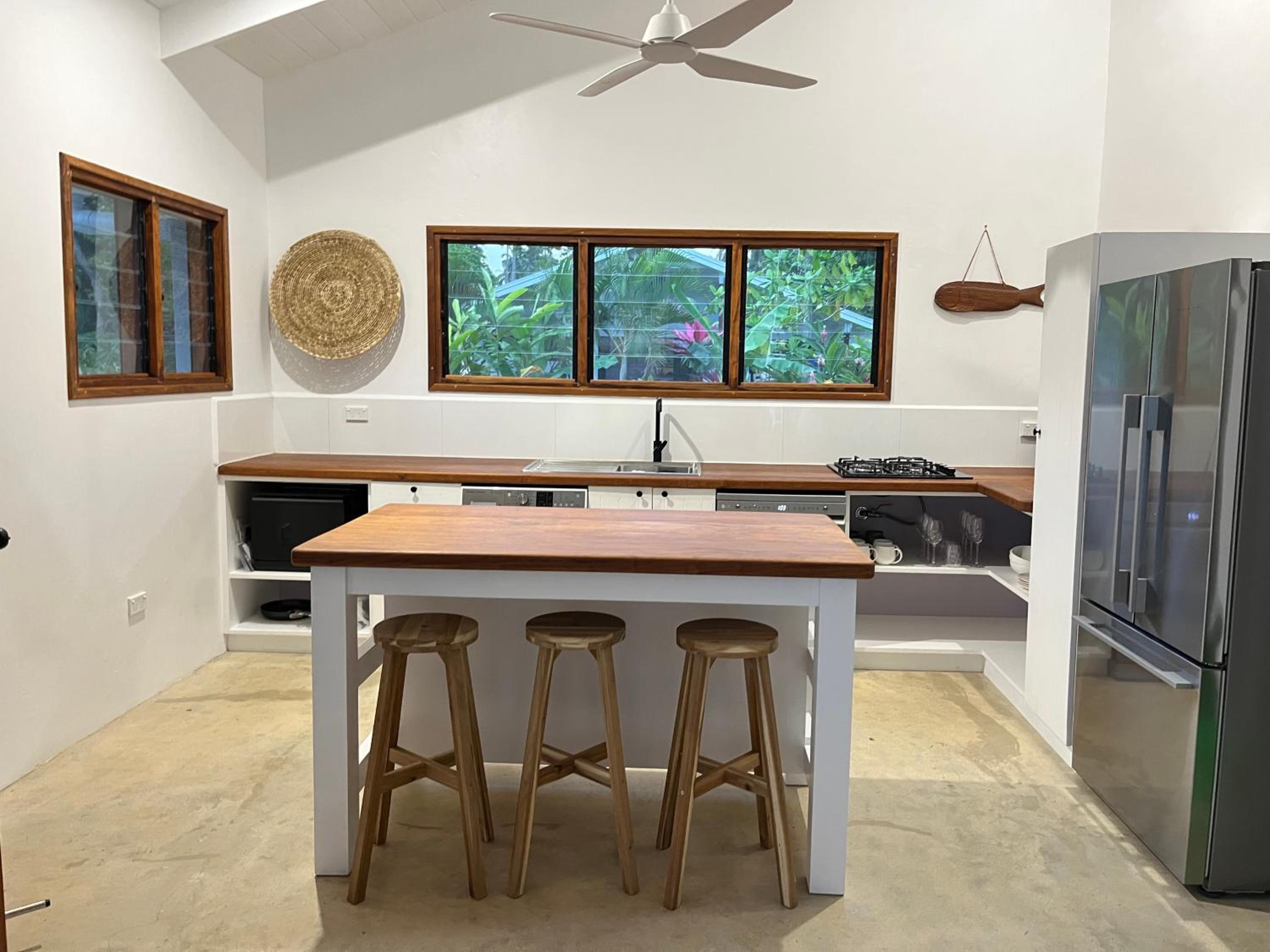 Very nice owners, Sue and Jamie, a couple who built just 2 villas, are very approachable, and have put the best in their lifetime project. The location is great, close enough to Lougainville/town on one side and close enough to all the attractions in the other direction. Nice decoration, top notch appliances and cooking ware, and amazing views on a very secluded and peaceful bay. Colors of the water are tantalising, can do kayaking, a bit of pool or sea swimming, relax, enjoy, all great! dDo book and enjoy, you will have a great time!