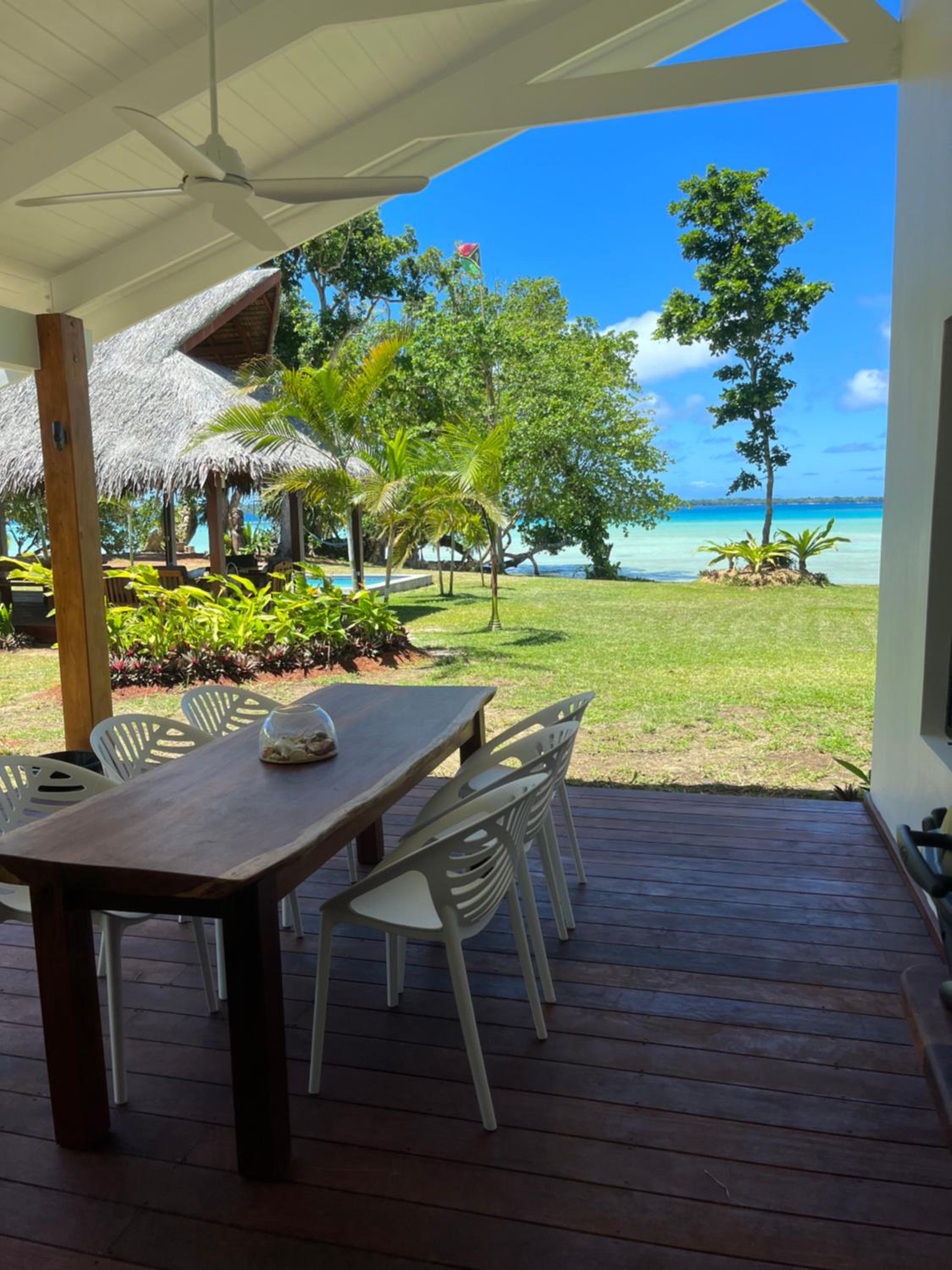 Great set up; our bungalow was well-designed, comfortable, had all the conveniences needed, including a gnerously sized deck. Liked having a swimming pool to cool off, a cabana for lounging around in, SUPs and a beach with reef within paddling distance, and a freshwater creek next door. The location is perfect – close enough to Luganville to pick up supplies, but nice and close to Matevulu, Riri and other famous east coast Santo attractions. Owners were very helpful and attentive, and the breakfast on the first morning was a nice touch.