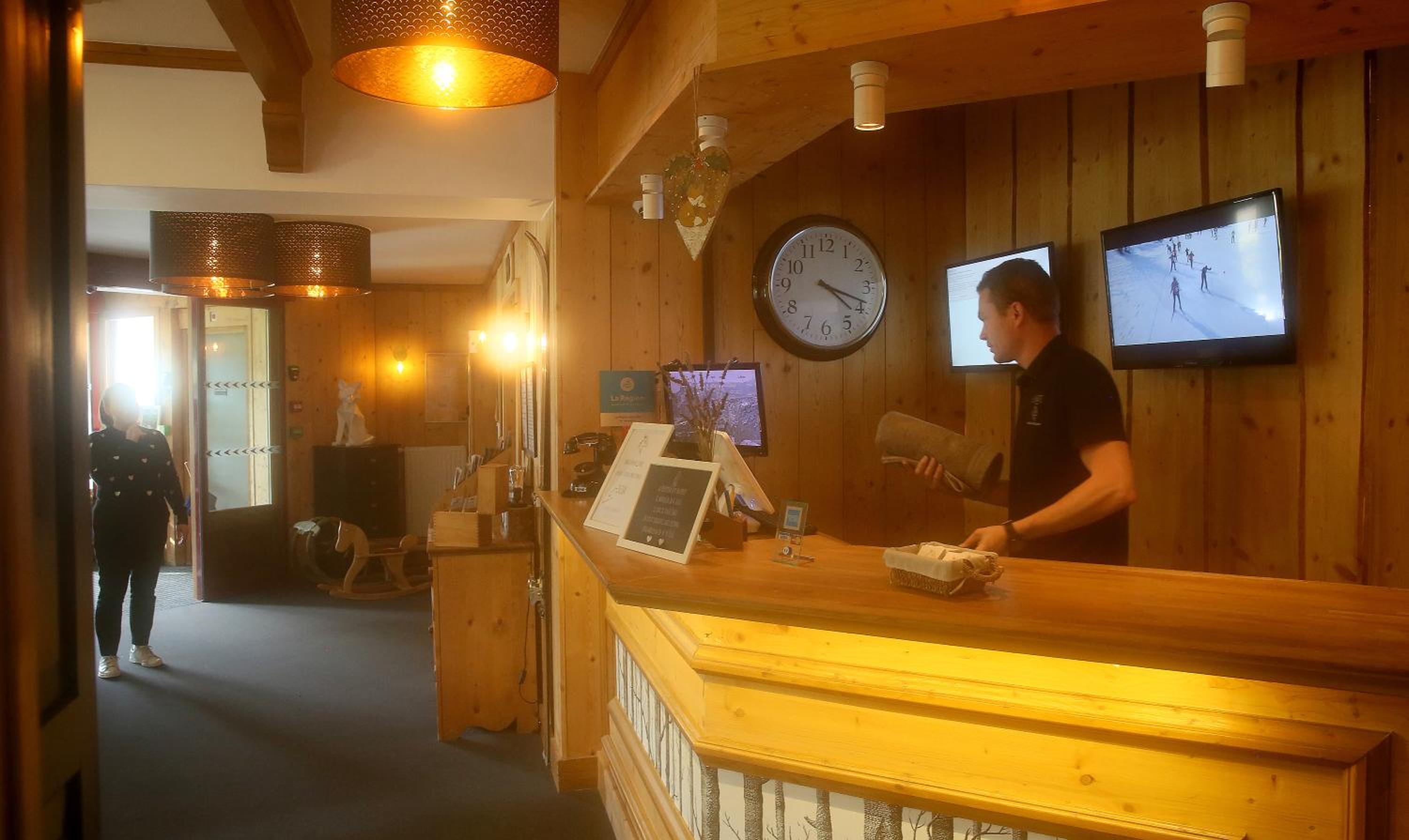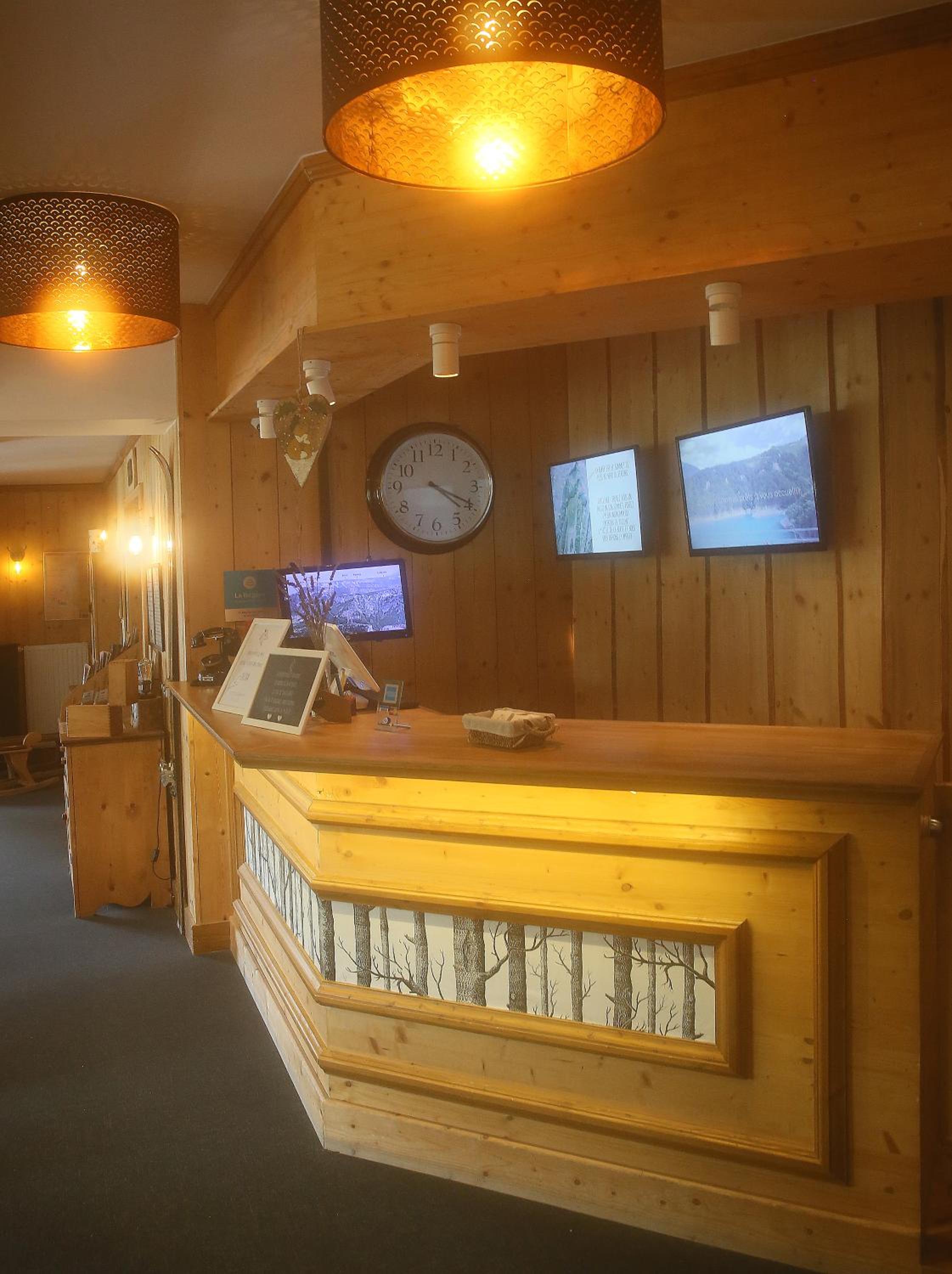 L’ambiance chaleureuse et l’emplacement à proximité du village et des pistes avec une belle vue sur la vallée de notre chambre.