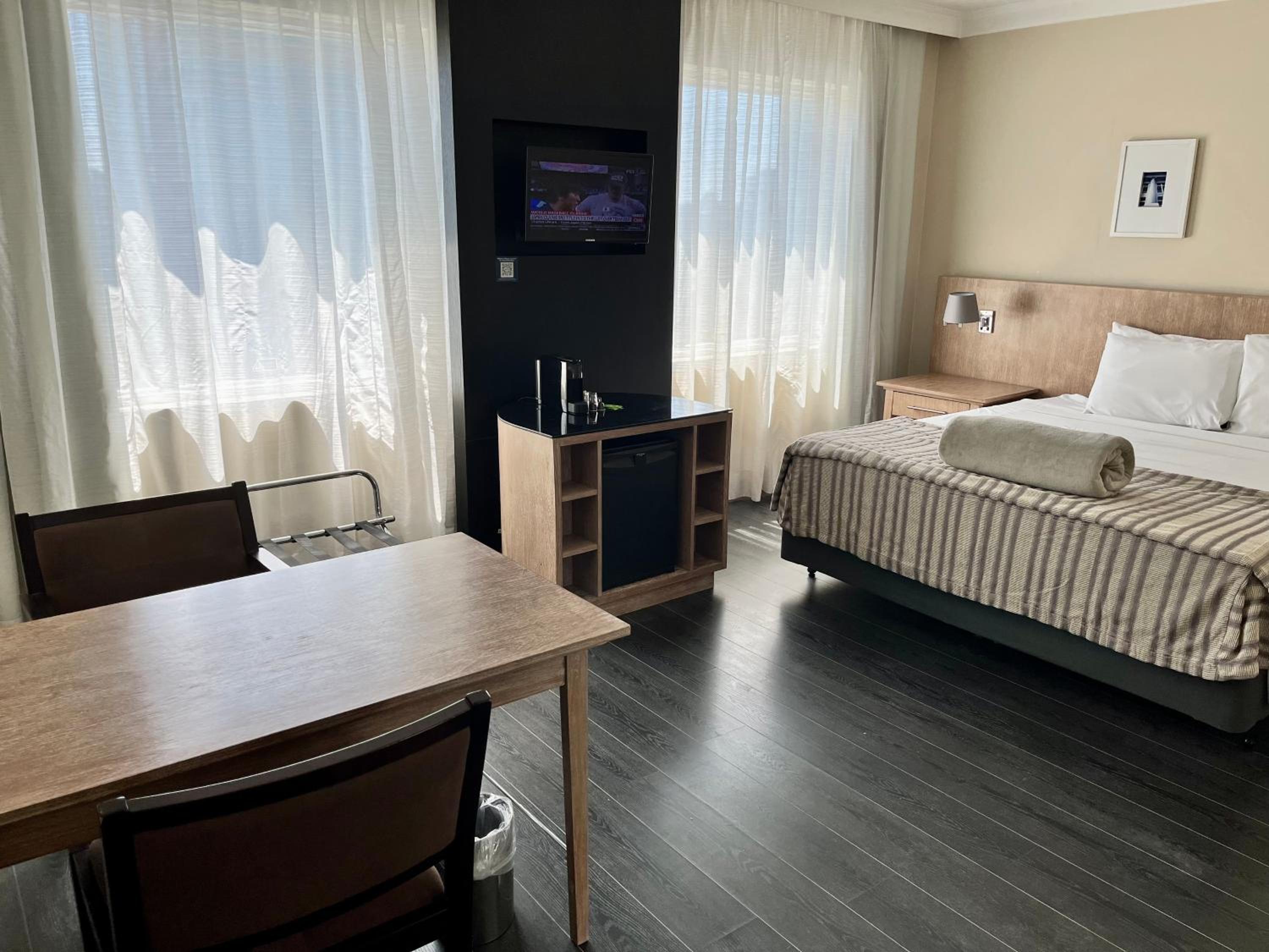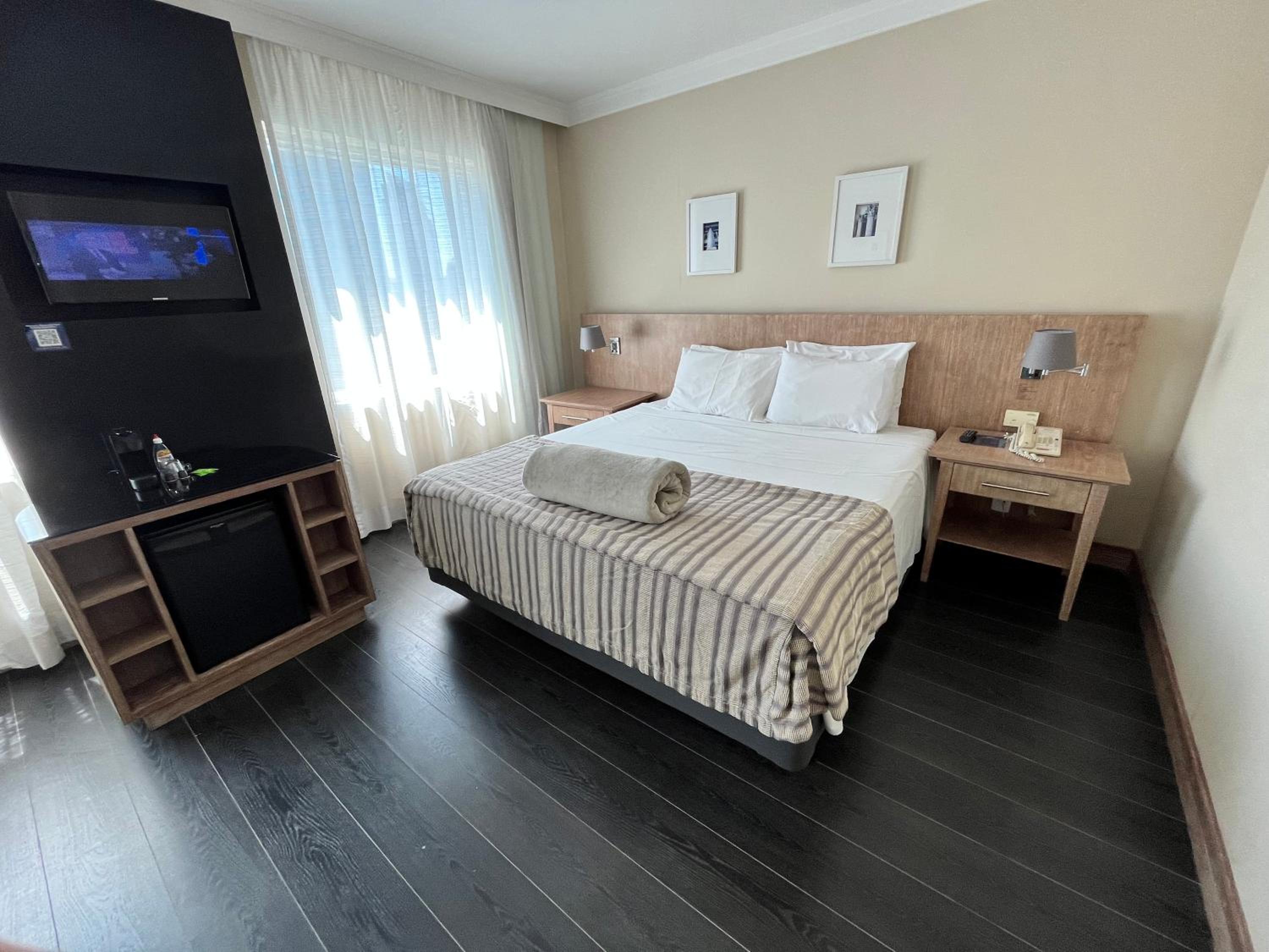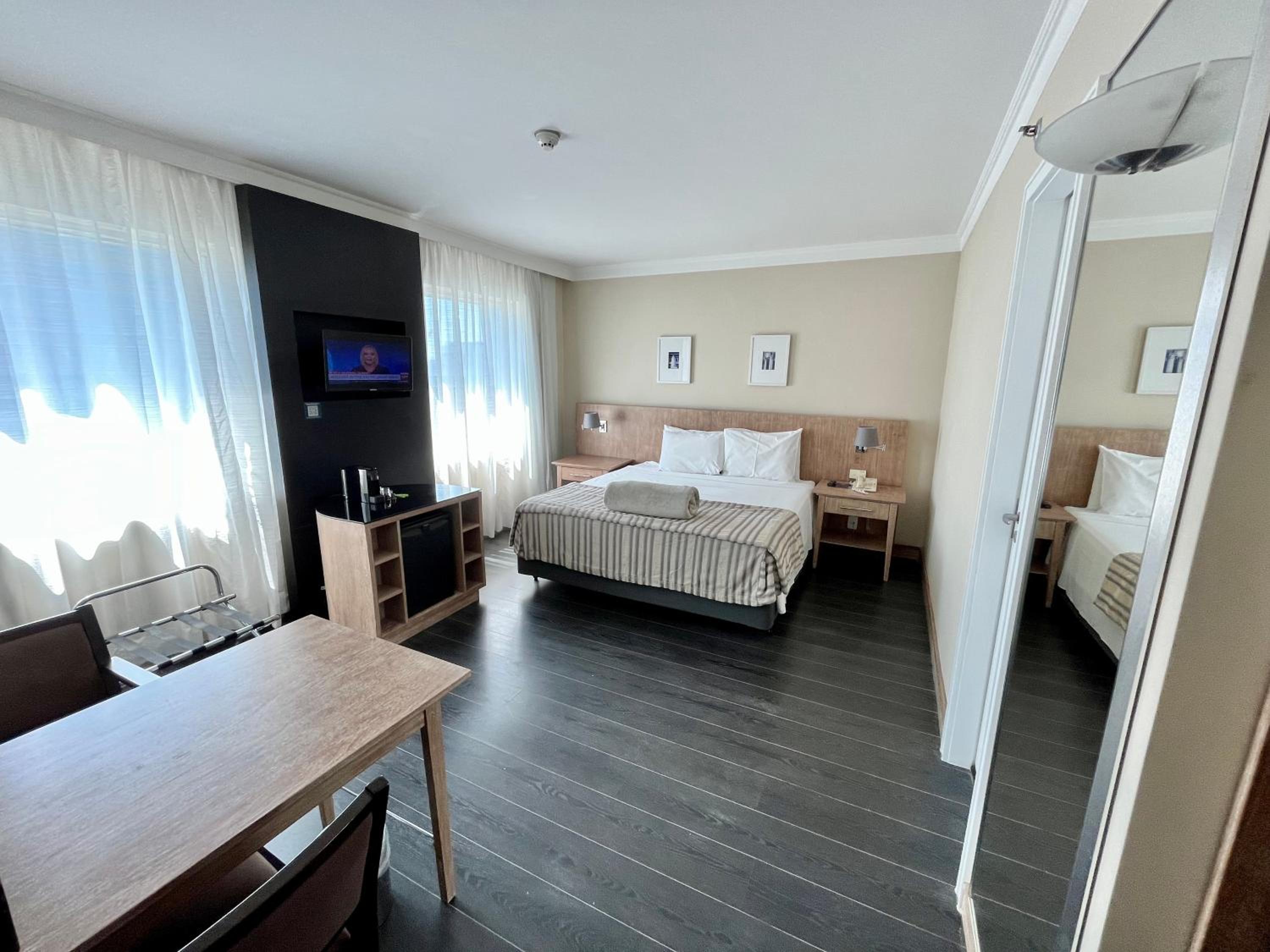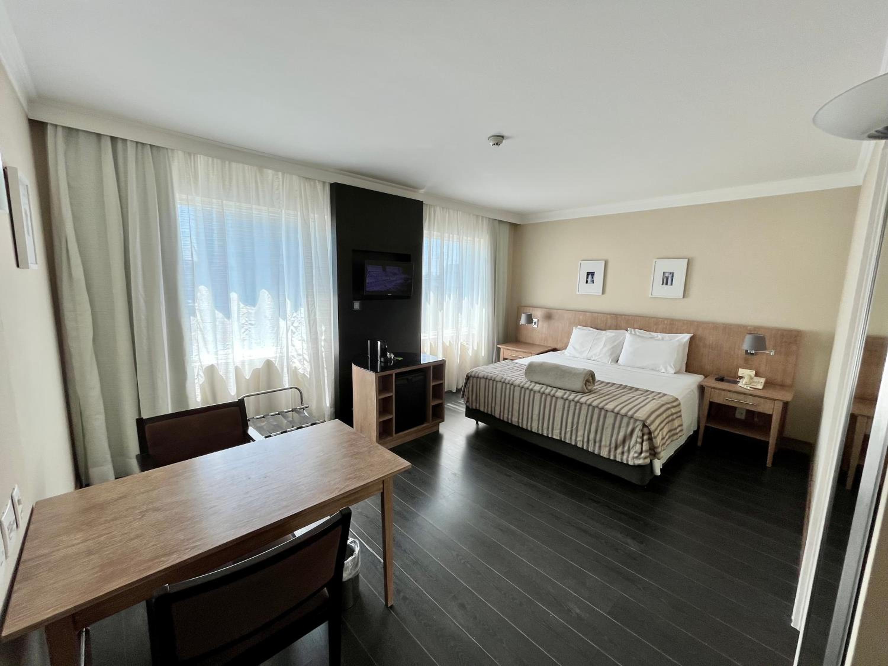 Welcome to Suite executiva reformada dentro do hotel Radisson, where you can enjoy air-conditioned rooms with modern amenities including a mini bar and flat-screen TV.