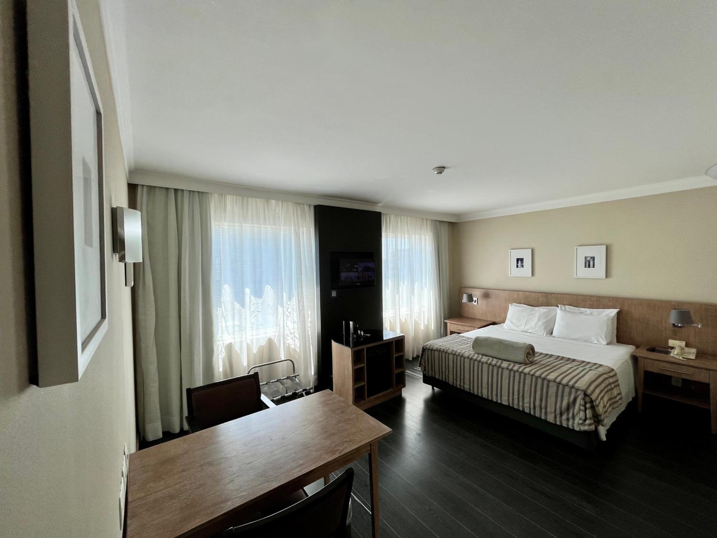 Gostei do tamanho do quarto. Bonitos móveis e cama confortável.