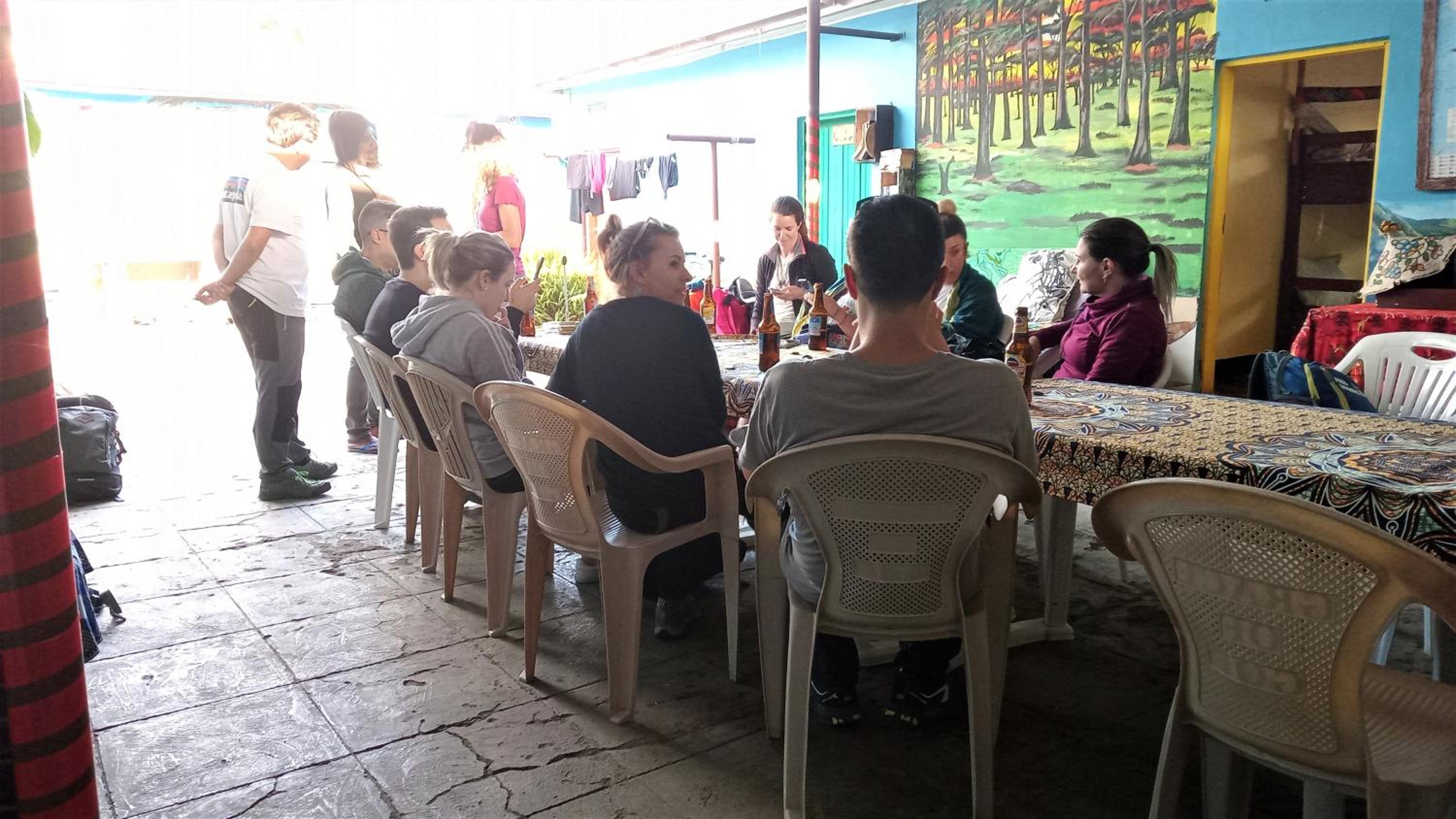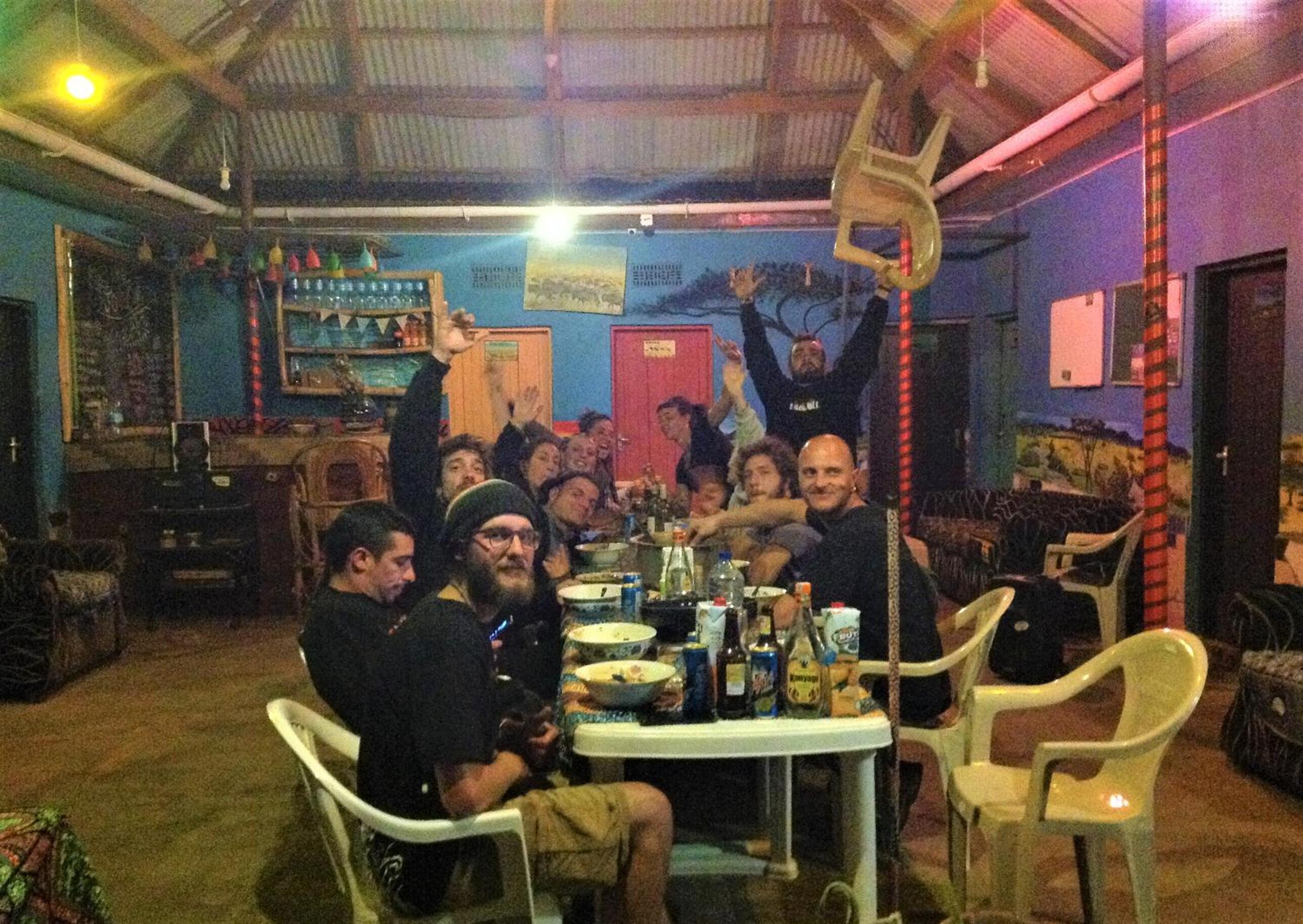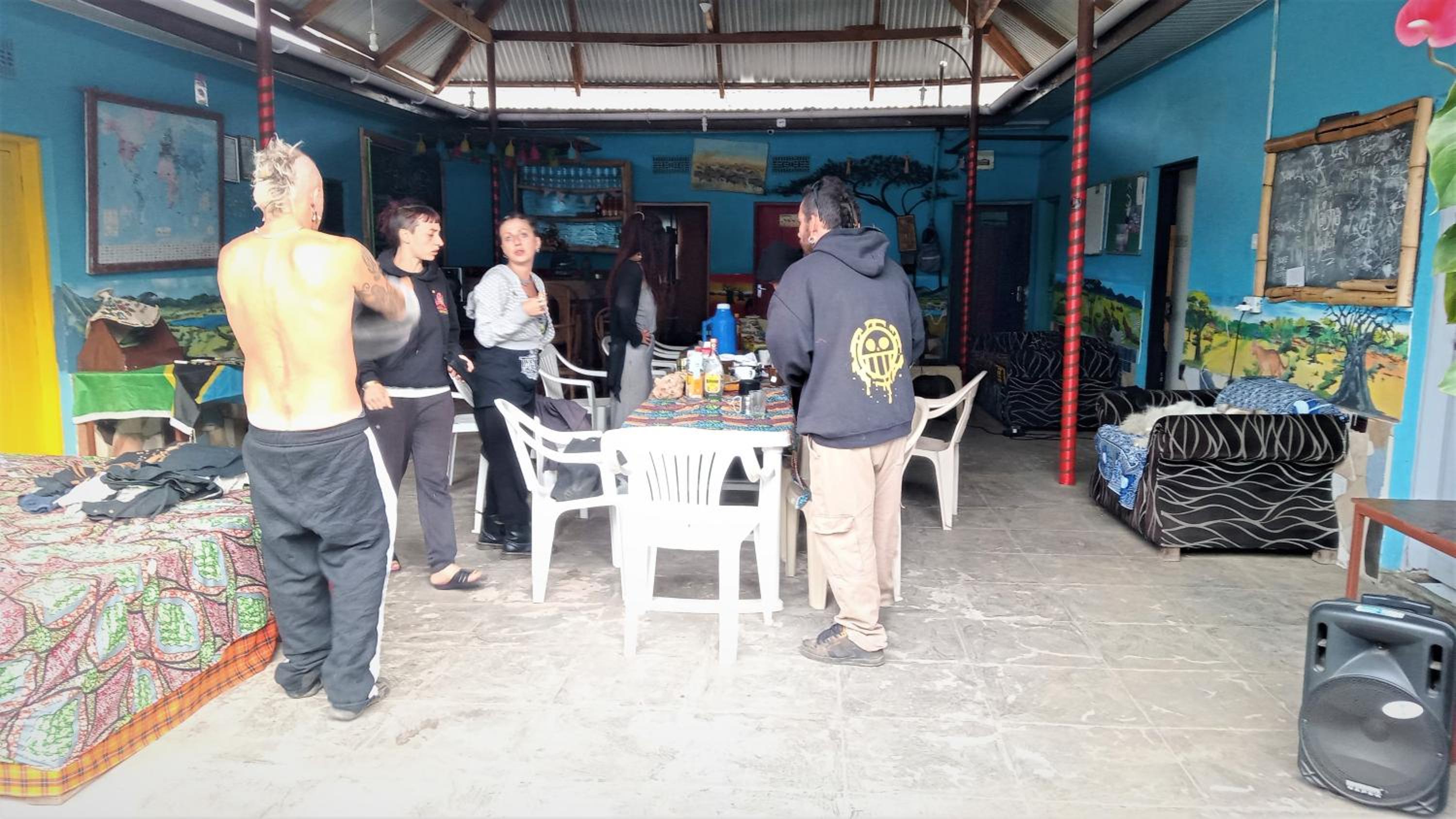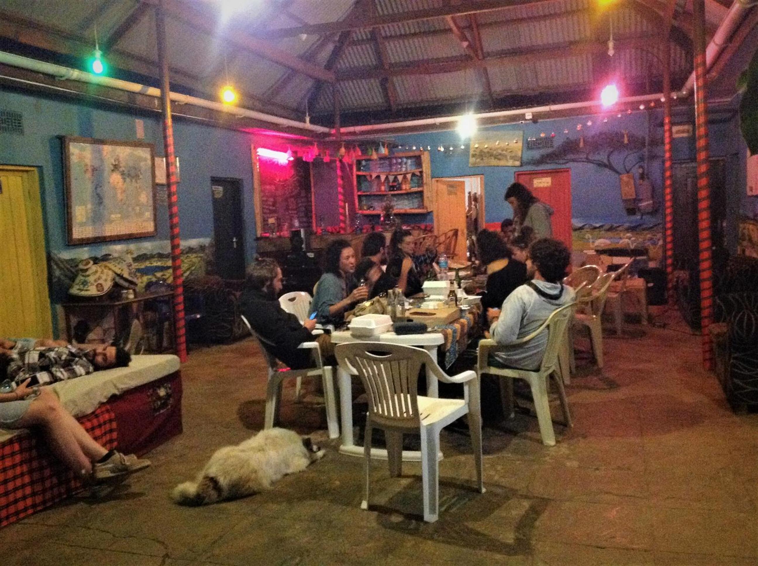 -COMFY place: kitchen and free breakfast, comfy beds, hot shower possible, colourful painted common area with sofas and a big table , perfect to meet and share (beers and music) with friendly people from all over the world