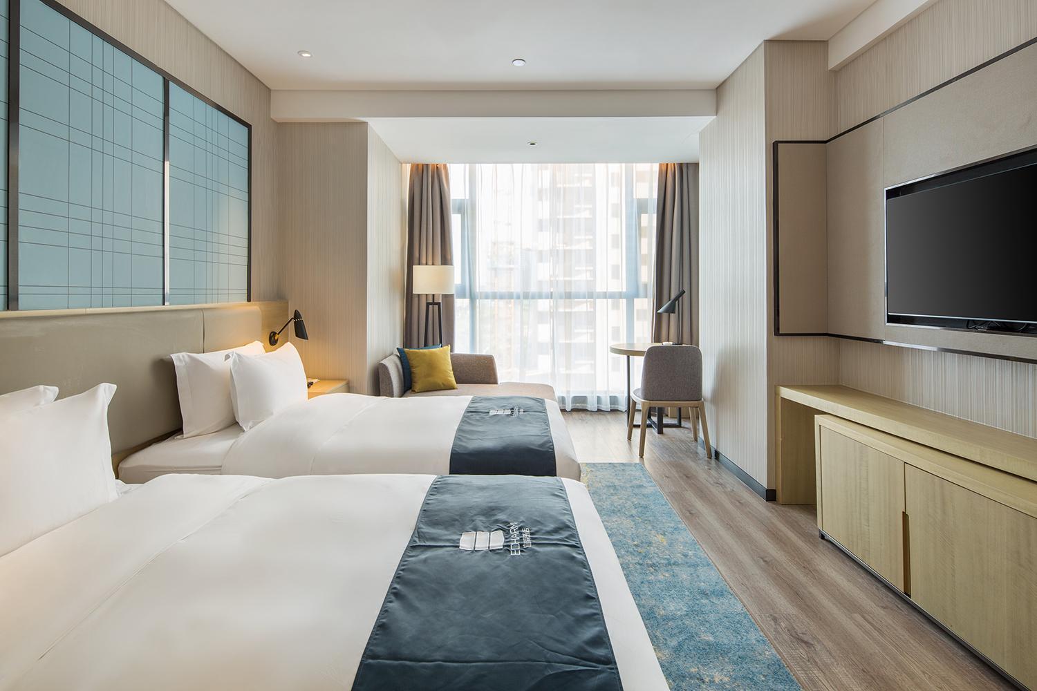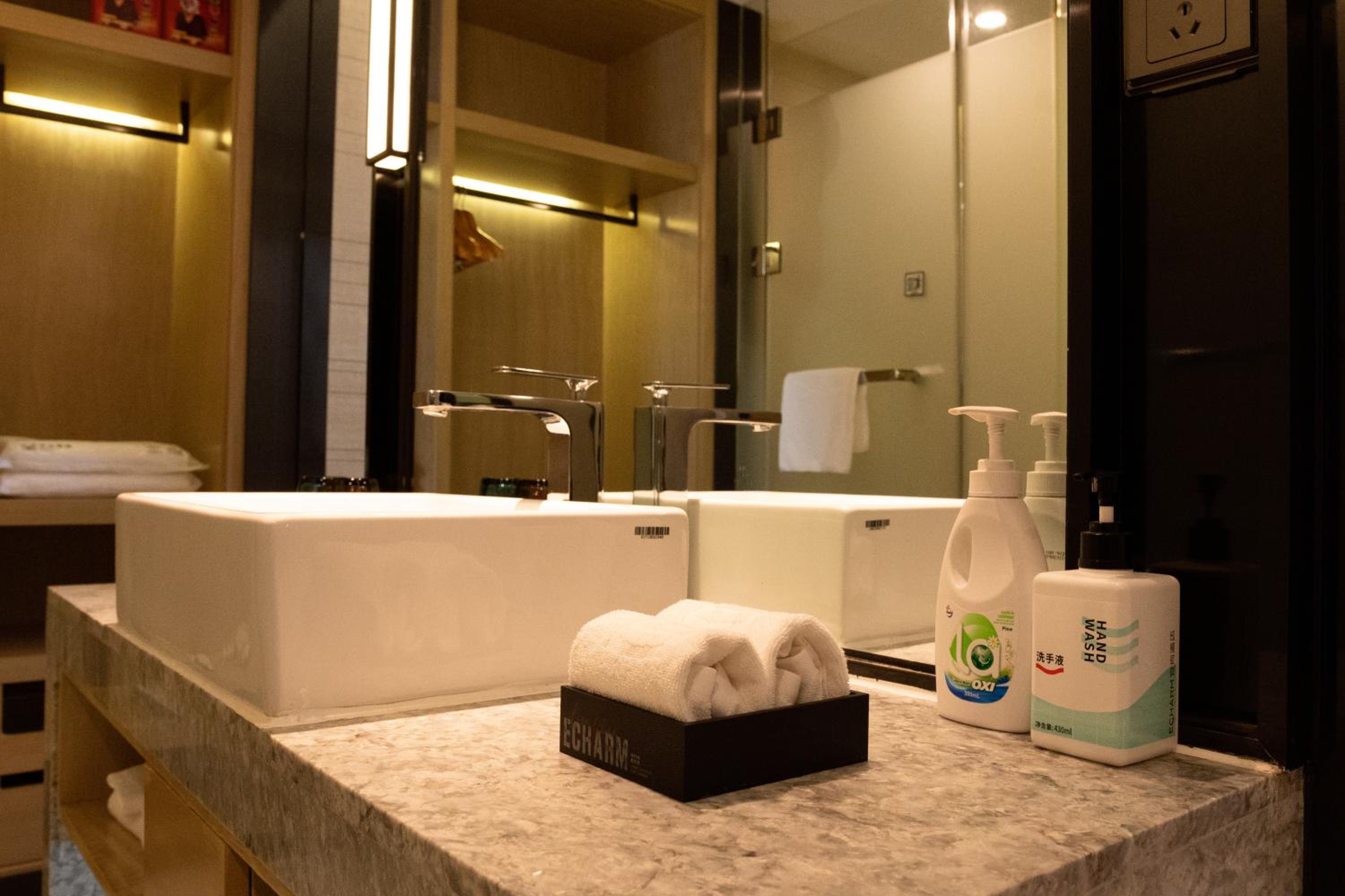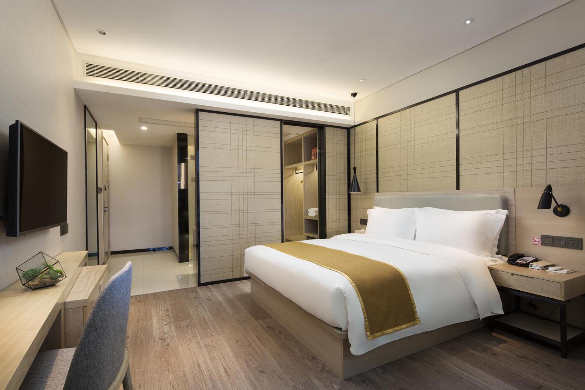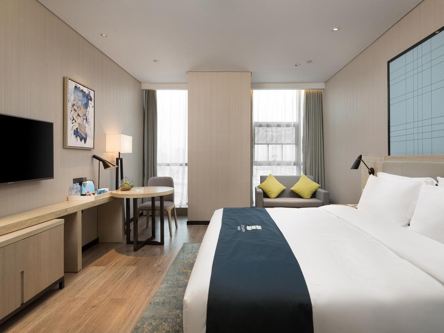 Guests at Eharm Hotel Wanjiali International MALL Gaoqiao North Metro Station enjoy air-conditioned rooms with a flat-screen TV, safety deposit box, and private bathroom.