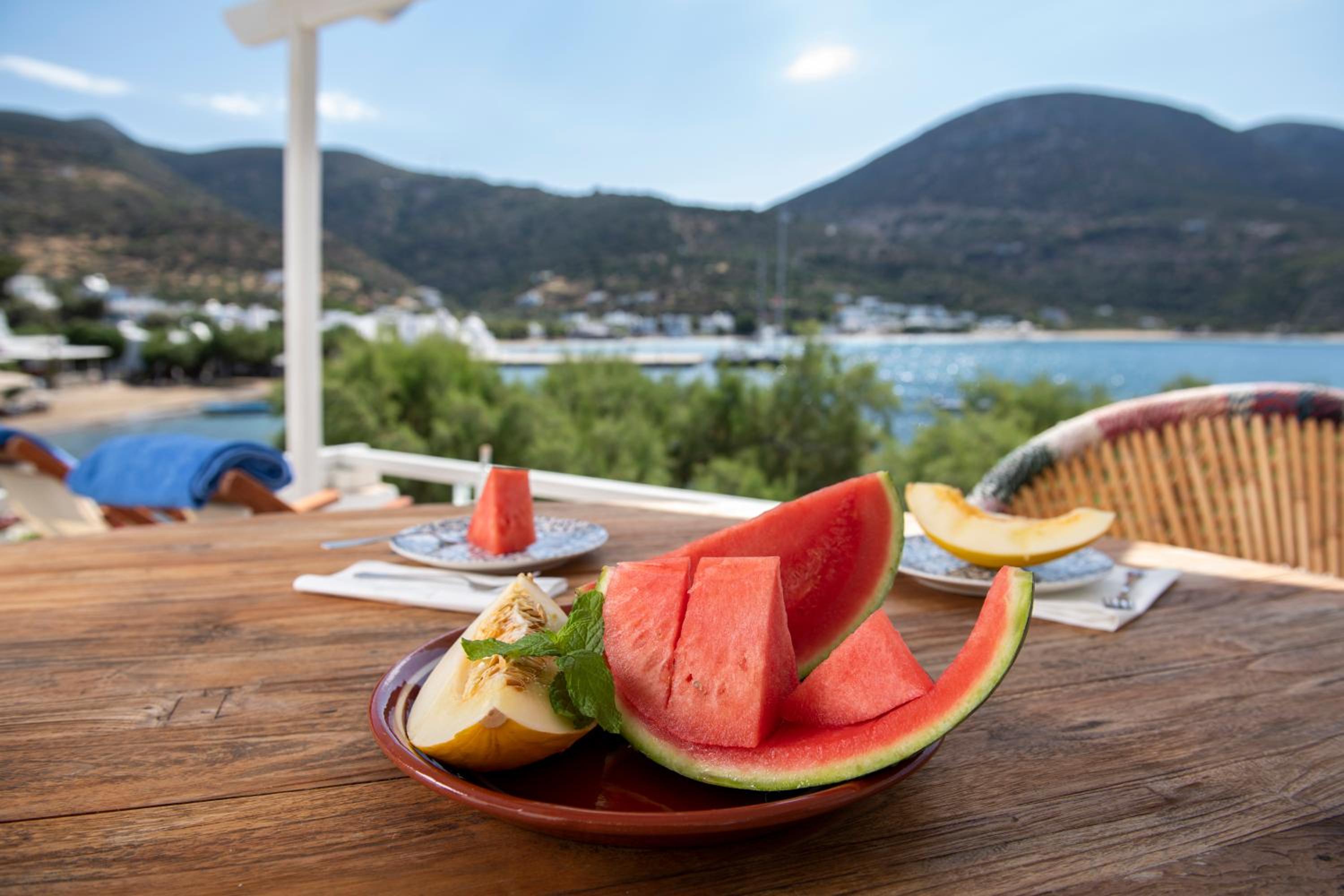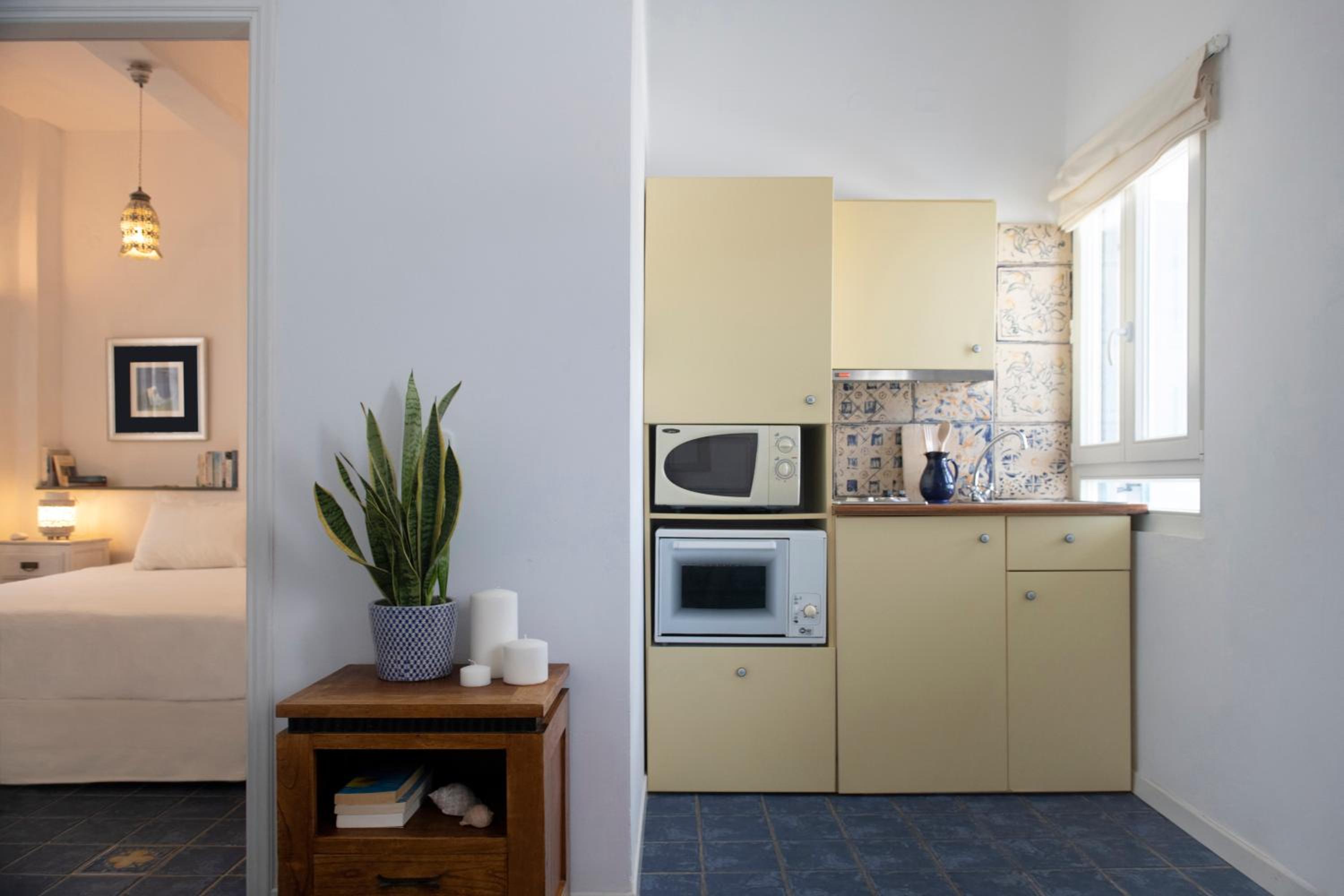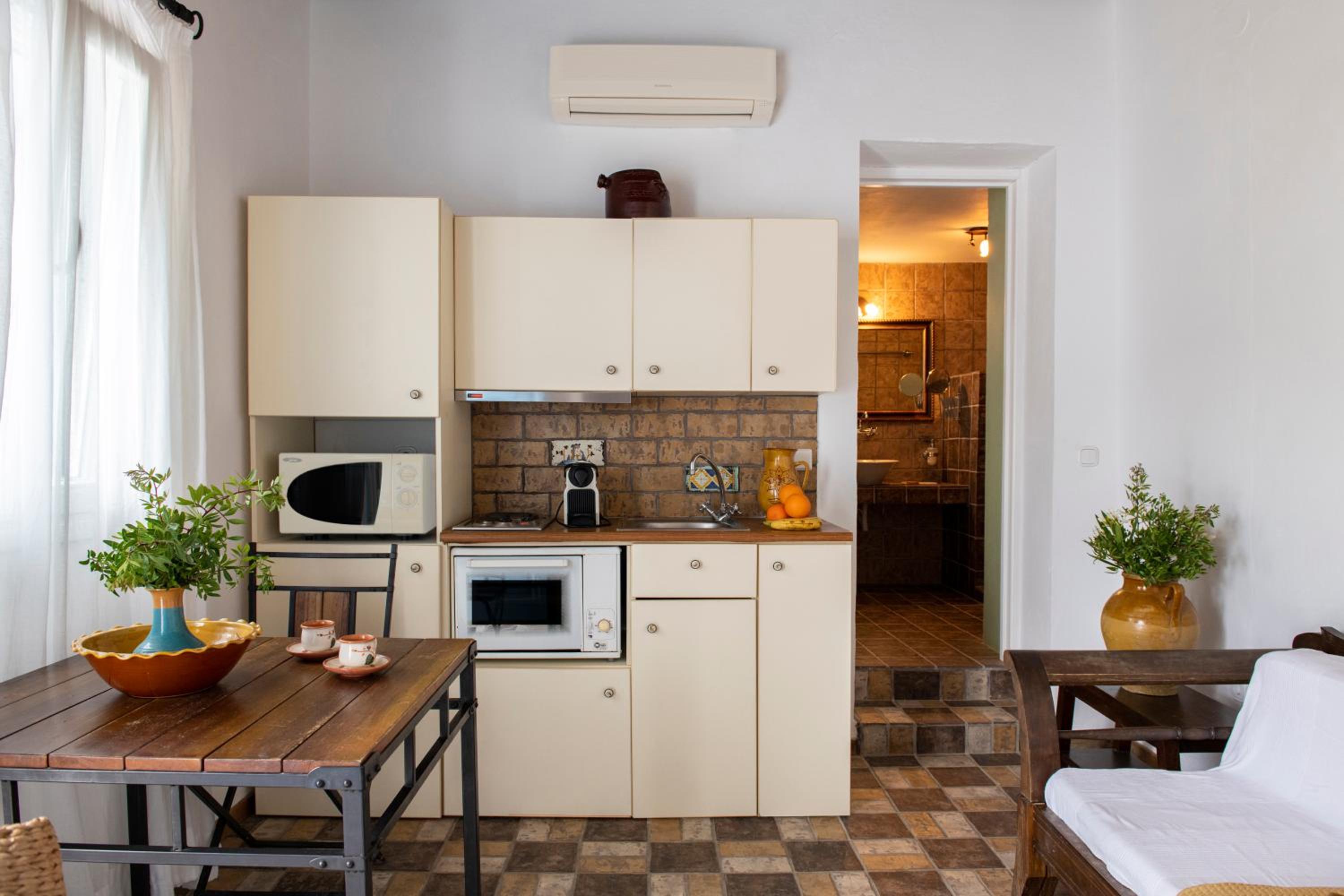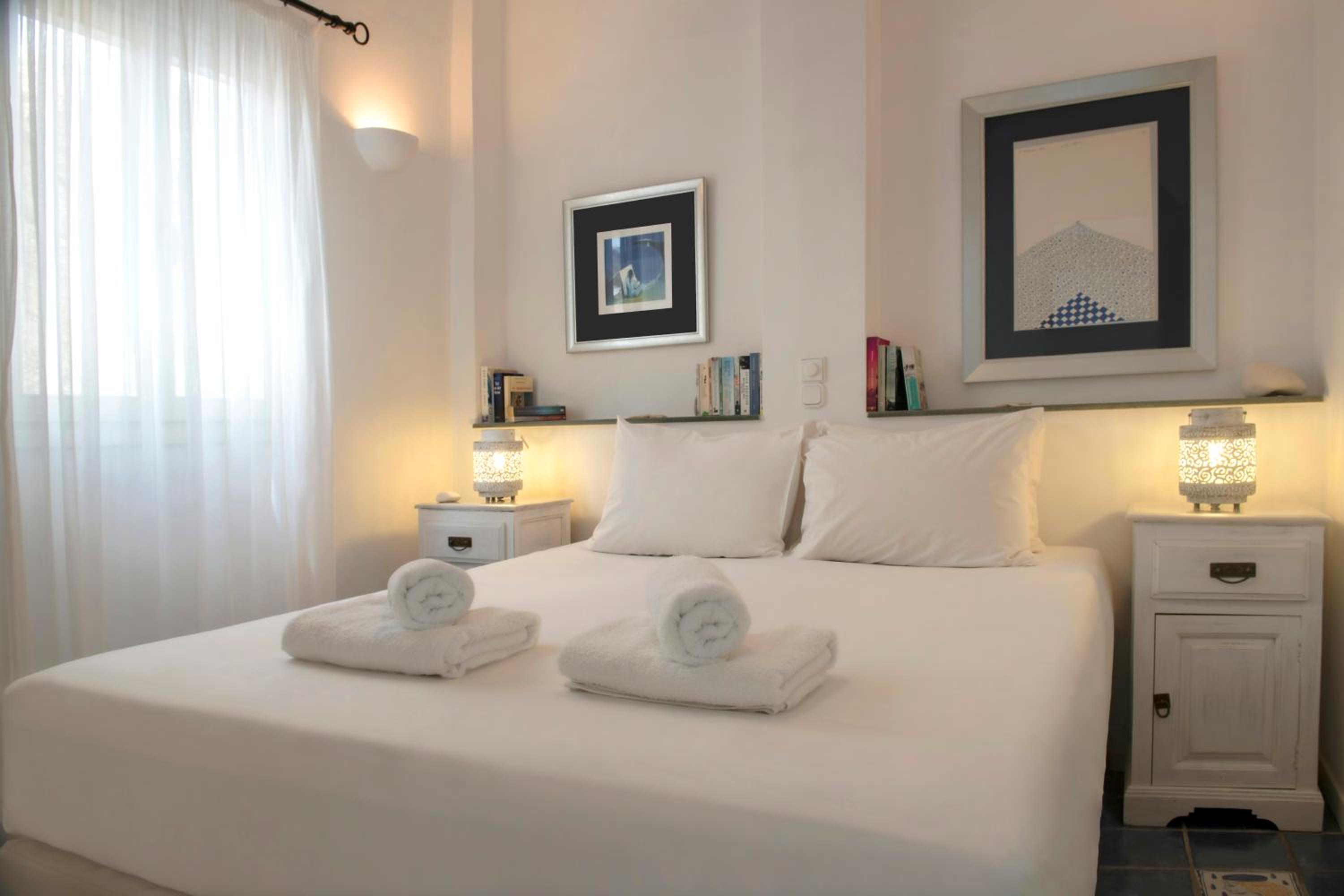 Basic room but very clean, with everything you need and a comfortable bed. The outside area and the view however are incredible!! Spent a wonderful 2 days relaxing in front of the crystal blue water. It's only a two minute walk to a couple of beachside taverns where you can eat delicious home cooked Greek food with your toes in the sand. Vathi feels very traditional and unspoilt.