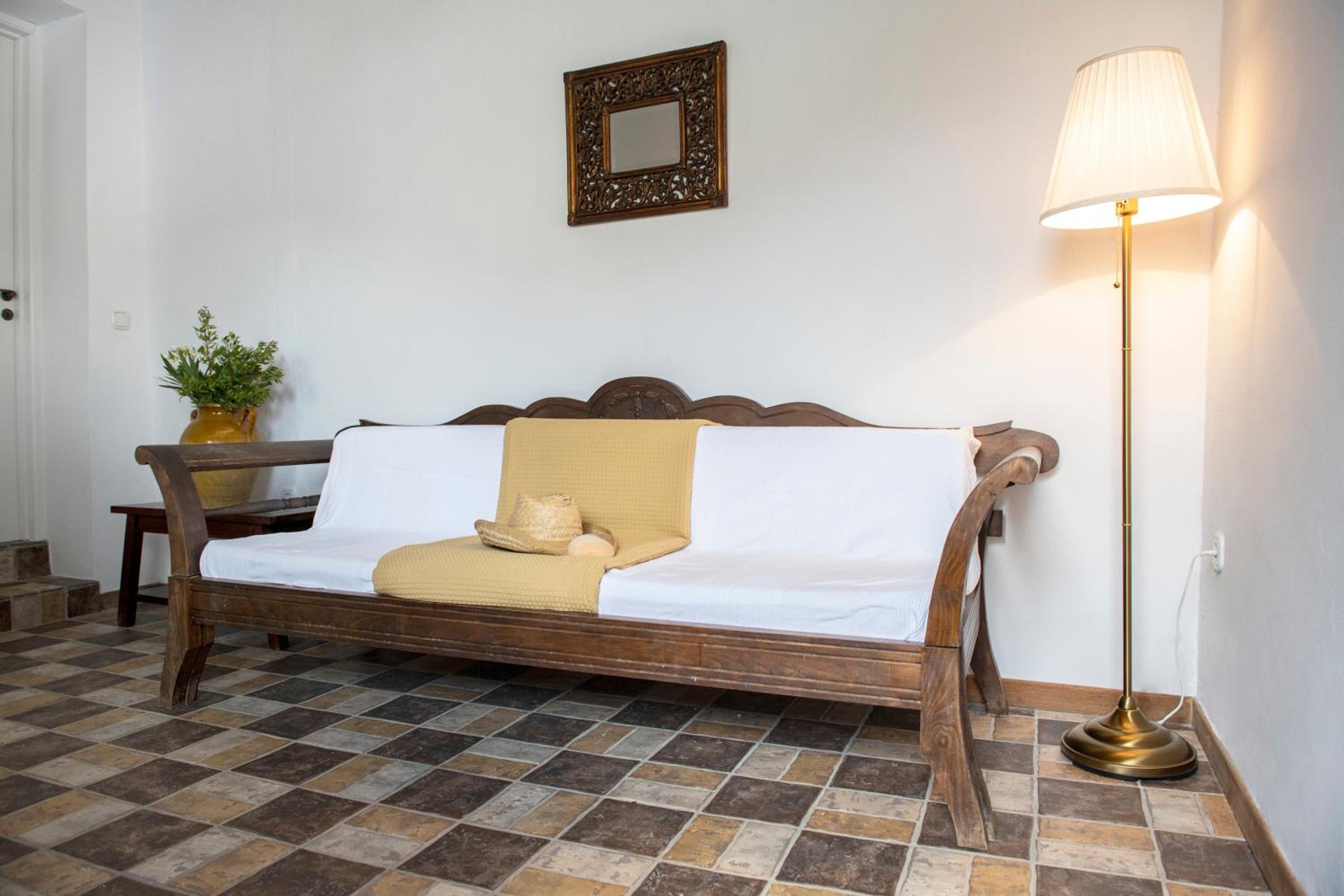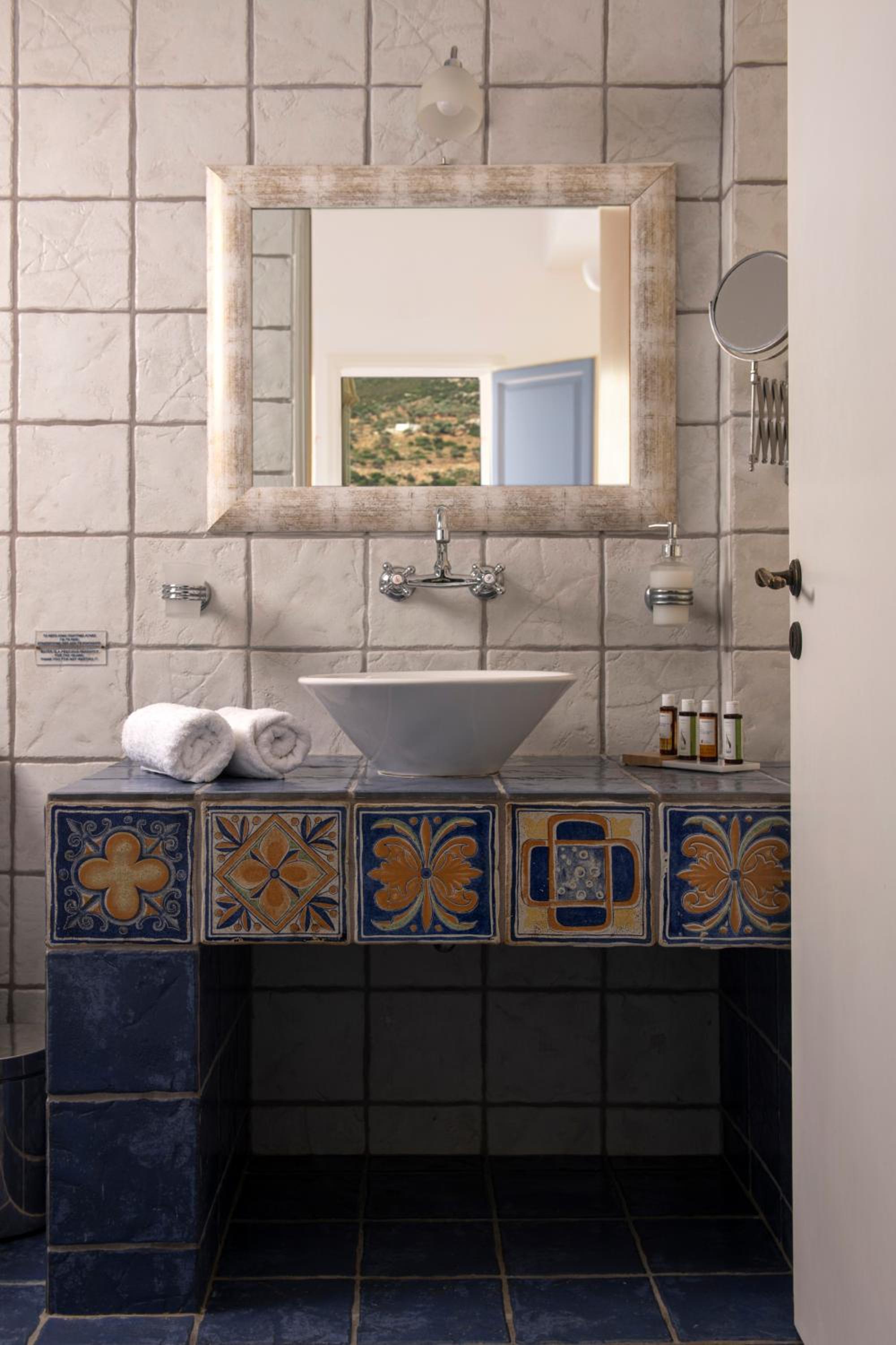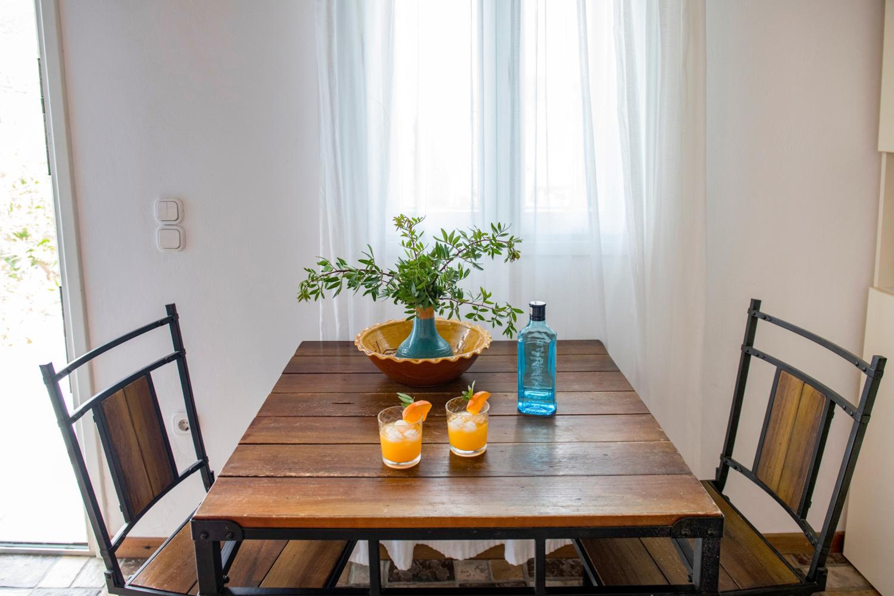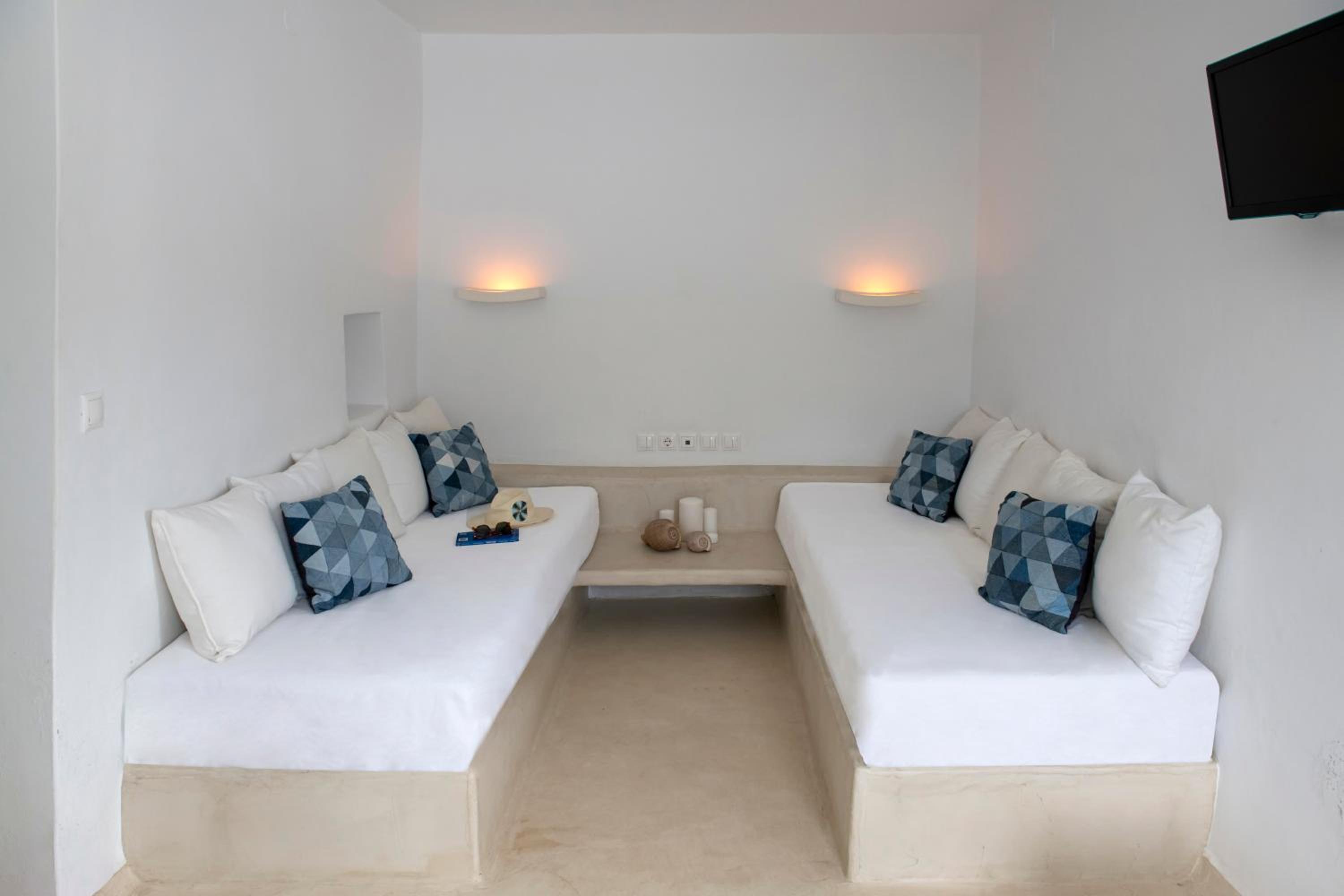 Basic room but very clean, with everything you need and a comfortable bed. The outside area and the view however are incredible!! Spent a wonderful 2 days relaxing in front of the crystal blue water. It's only a two minute walk to a couple of beachside taverns where you can eat delicious home cooked Greek food with your toes in the sand. Vathi feels very traditional and unspoilt.