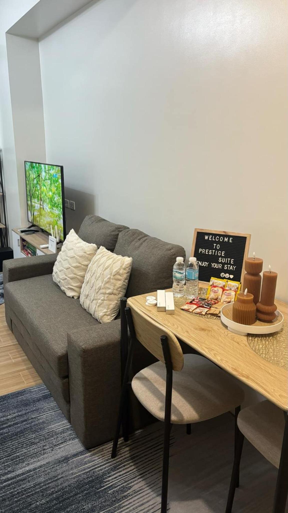 Indulge in modern conveniences, including a fully equipped kitchen, flat-screen TV, and quality linens. Explore nearby attractions like Newport Mall and Glorietta Mall, just a short distance away. Book your stay now and elevate your travel experience!