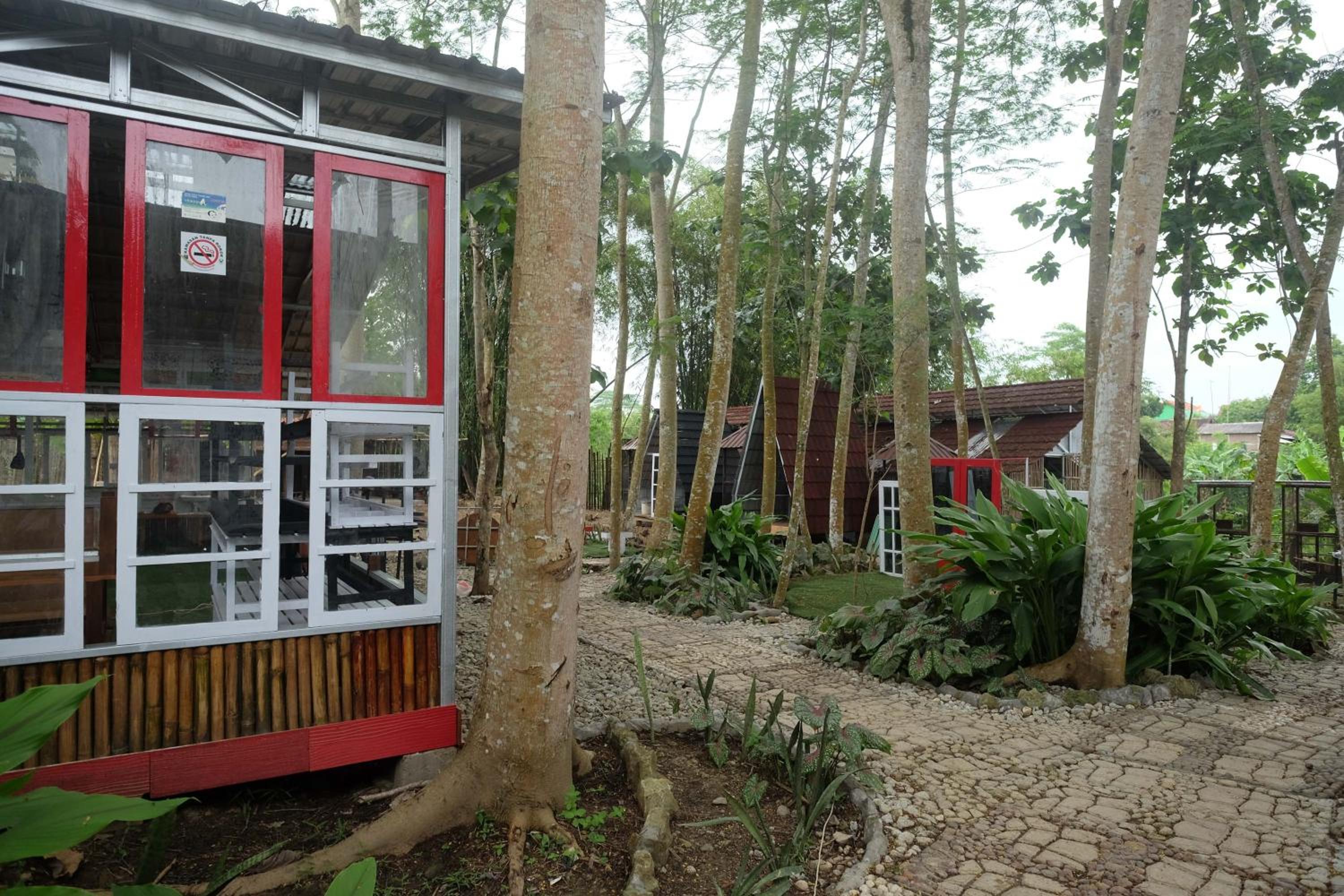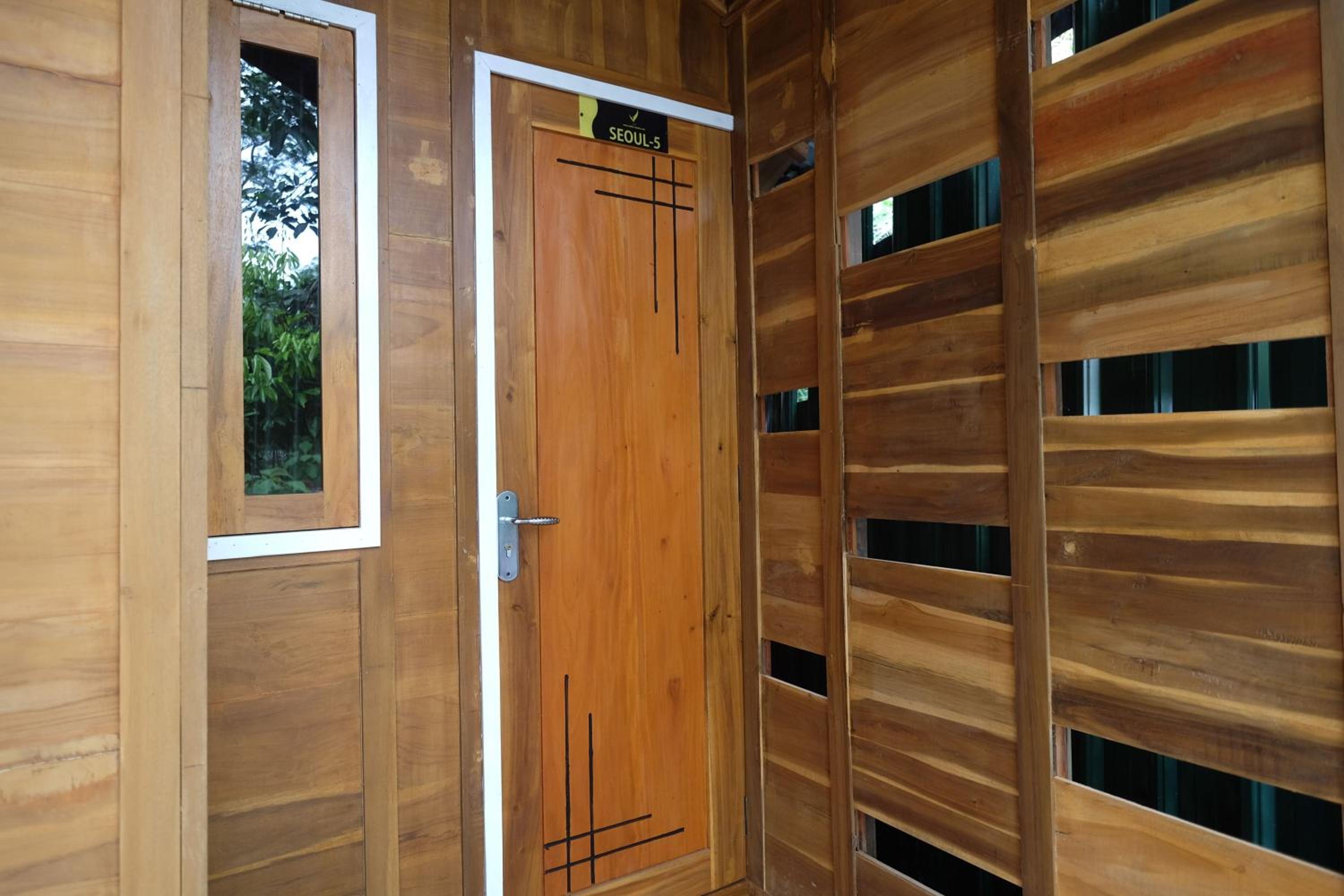 The wooden cabins have unique shapes. I and my wife got a cabin with a spacious room with a comfy double bed, a good AC, good free WiFi, a flat screen TV, a private bathroom, room amenities and free access to a park. Simple foods and drinks can be ordered from 08:00 a.m. to 06:00 p.m. and delivered to the room by its restaurant (funny, it's called Korean Food Shop but there's no Korean dishes). We had breakfast with a hot coffee, a hot tea, rice with fried chicken, a boiled noodle with egg plus vegetable chops, ... perfect. A vast parking yard for motorbikes and cars. A concierge was available around the clock.