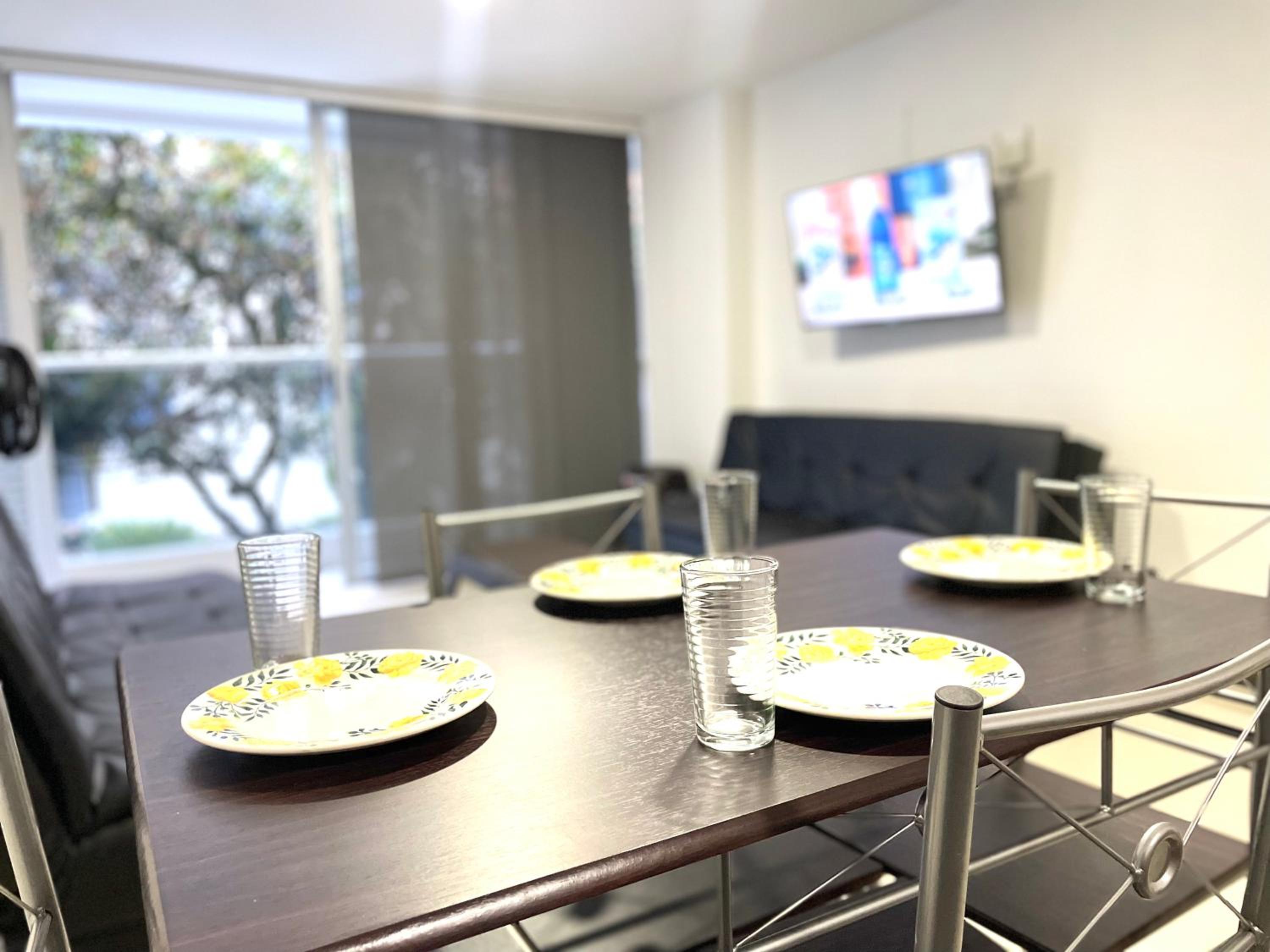 La ubicación del apto es perfecta para quienes vienen a participar del Maratón. Cerca al centro de convecciones y también al punto de salida. La llegada y salida son sencillas. El barrio es tranquilo.
