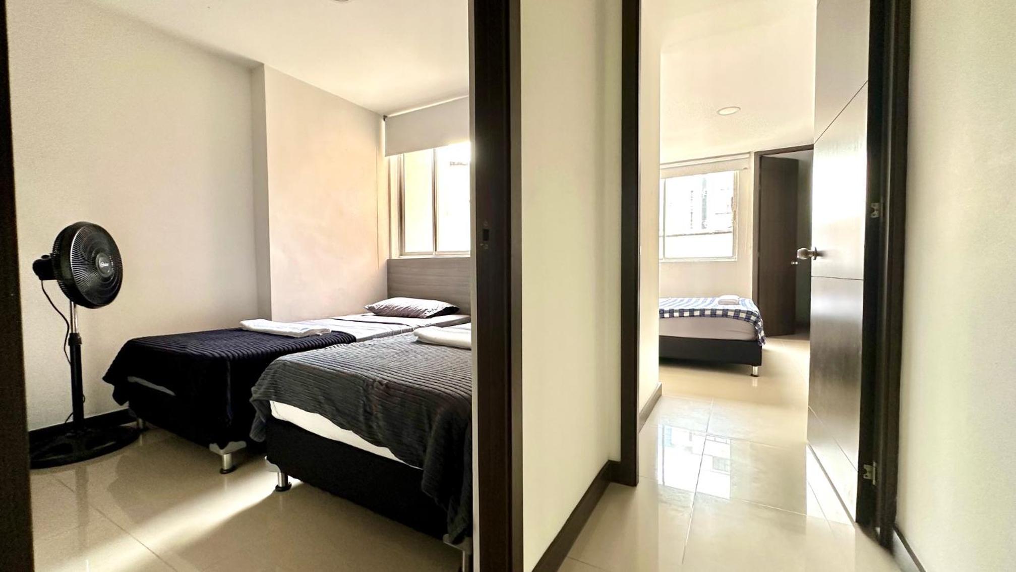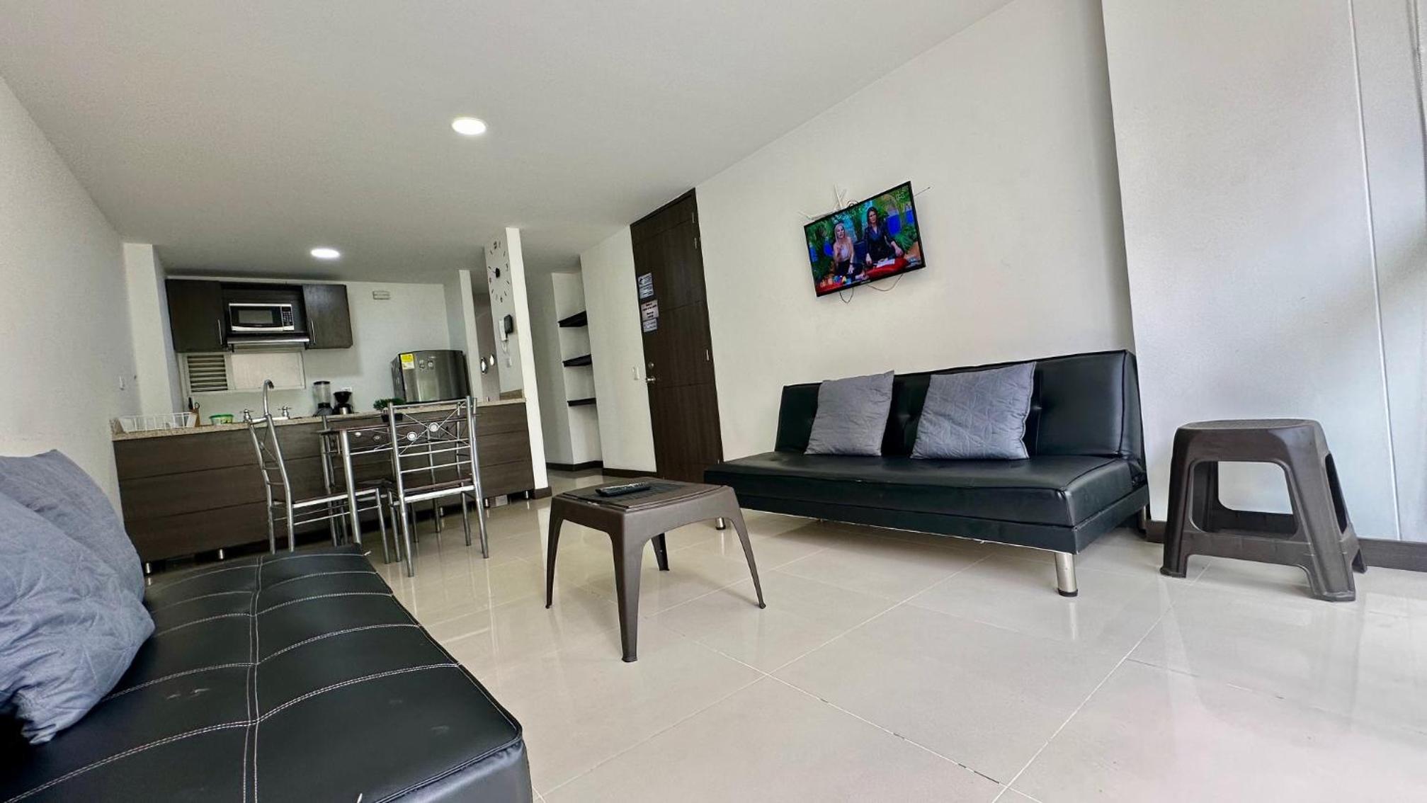 La dotación de las ollas y loza es muy limitada y están en mal estado. Es necesario fumigar contra insectos. Es necesario podar el árbol que está al frente del edificio, ya que no se puede abrir la puerta del balcón en las noches puesto que anidan allí muchos murciélagos. No respetan el parqueadero asignado los otros huéspedes. Ventiladores con función limitada. Baños percudidos. Cambio de tendidos y bolsas para las canecas muy deficiente, ya que la señora encargada nunca los recogió y no trajo las bolsas. Paredes y puertas sucias. El calentador ya presentaba fallas cuando llegamos y finalmente faltando 3 dias para salir se daño y por ello nos toco con agua fría el baño, algo que se pudo prever. No funciona el citofono por ello los domiciliarios no entregan los pedidos.