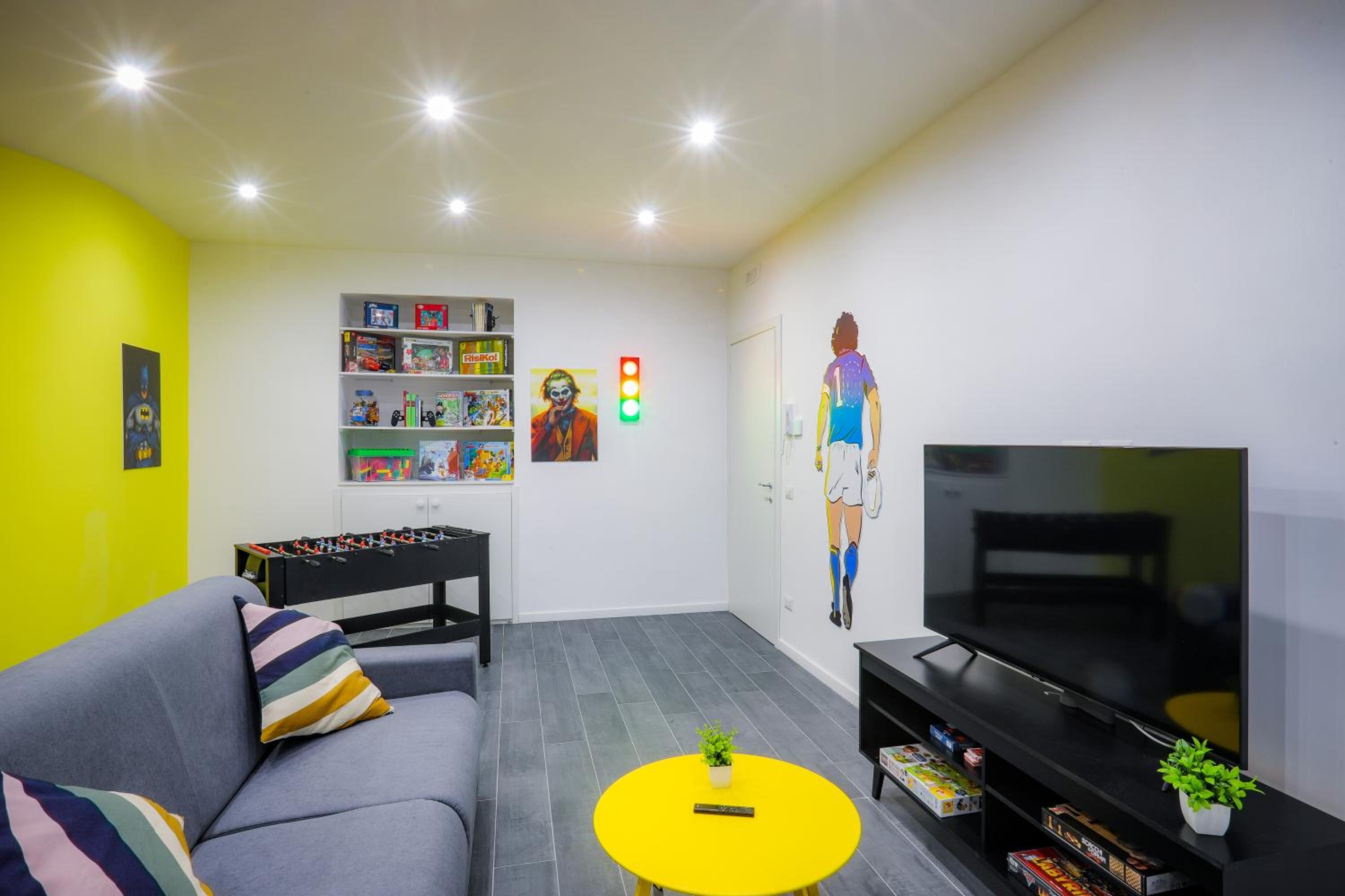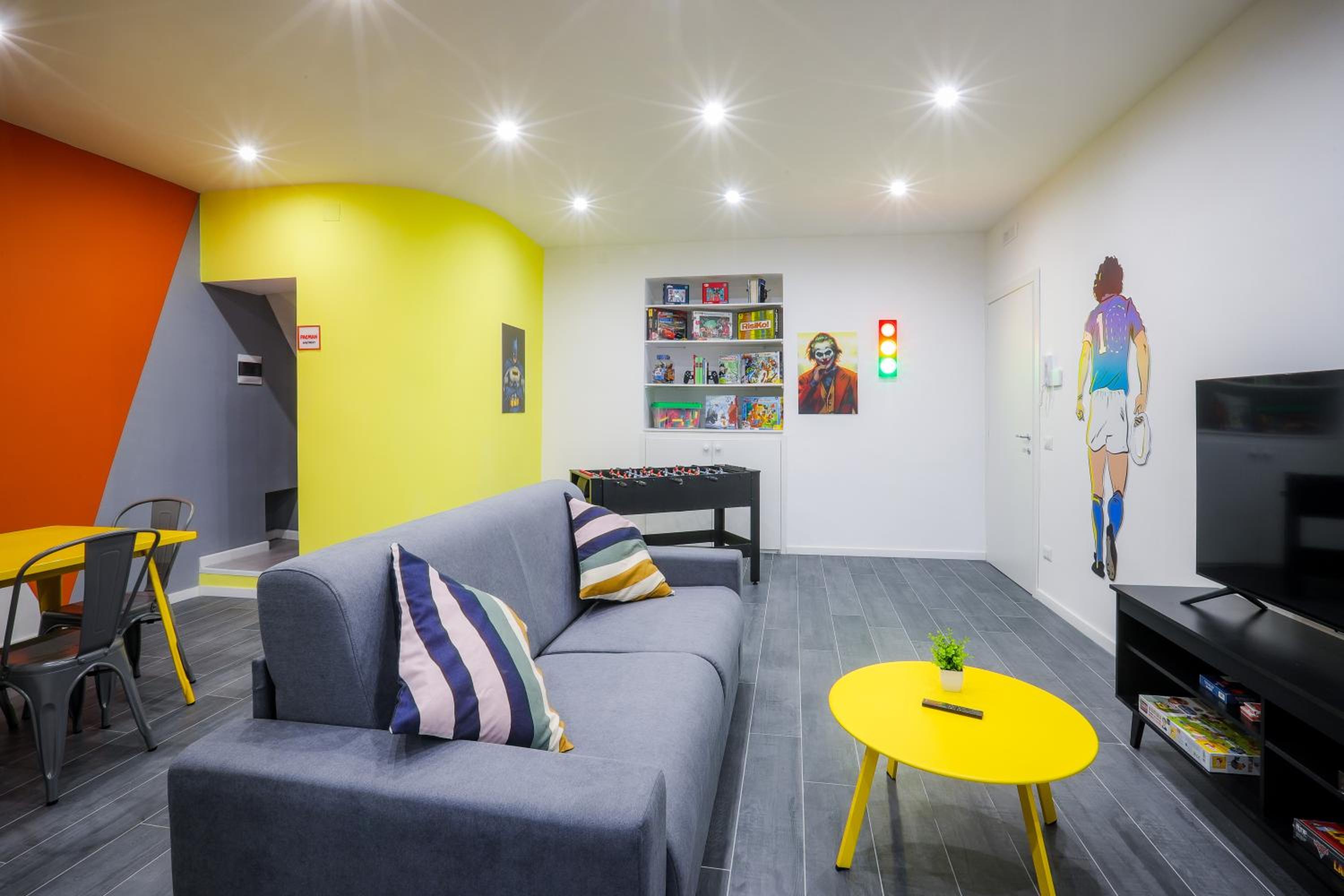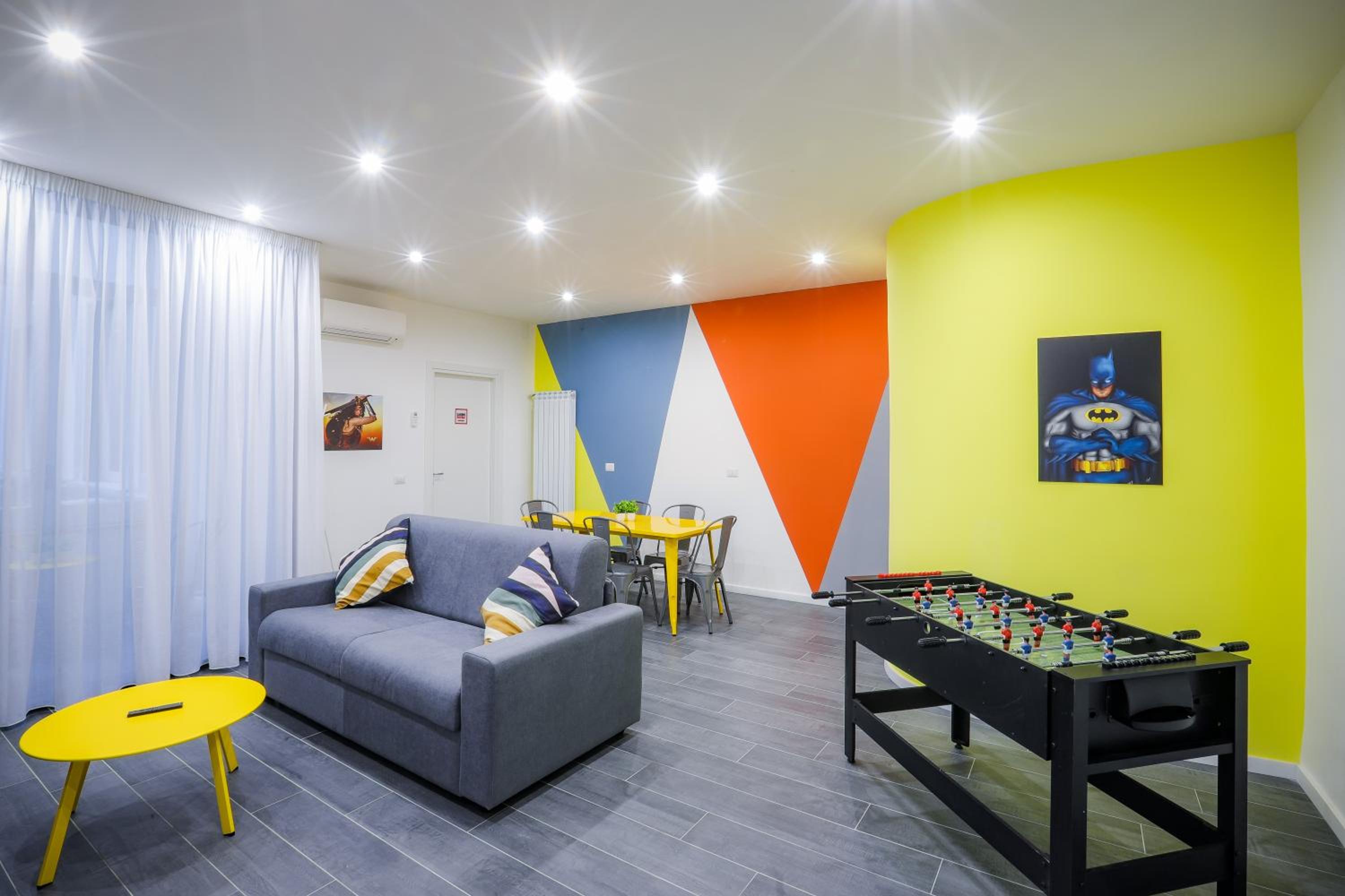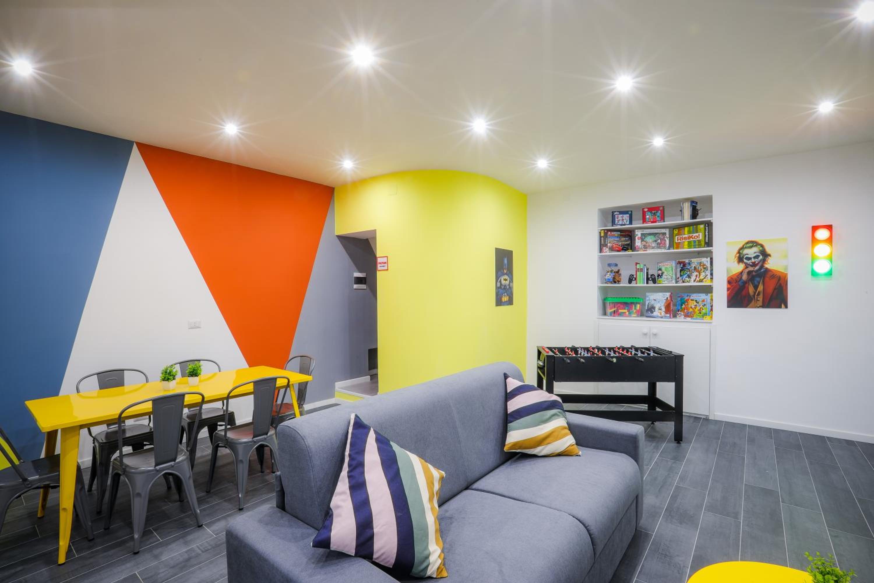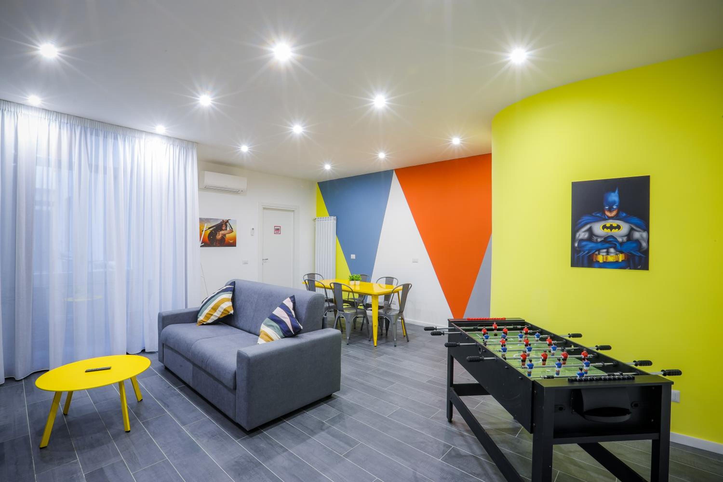 Good place for group of friends.location, posters, rooms, living room, futball table, contact less entrance.