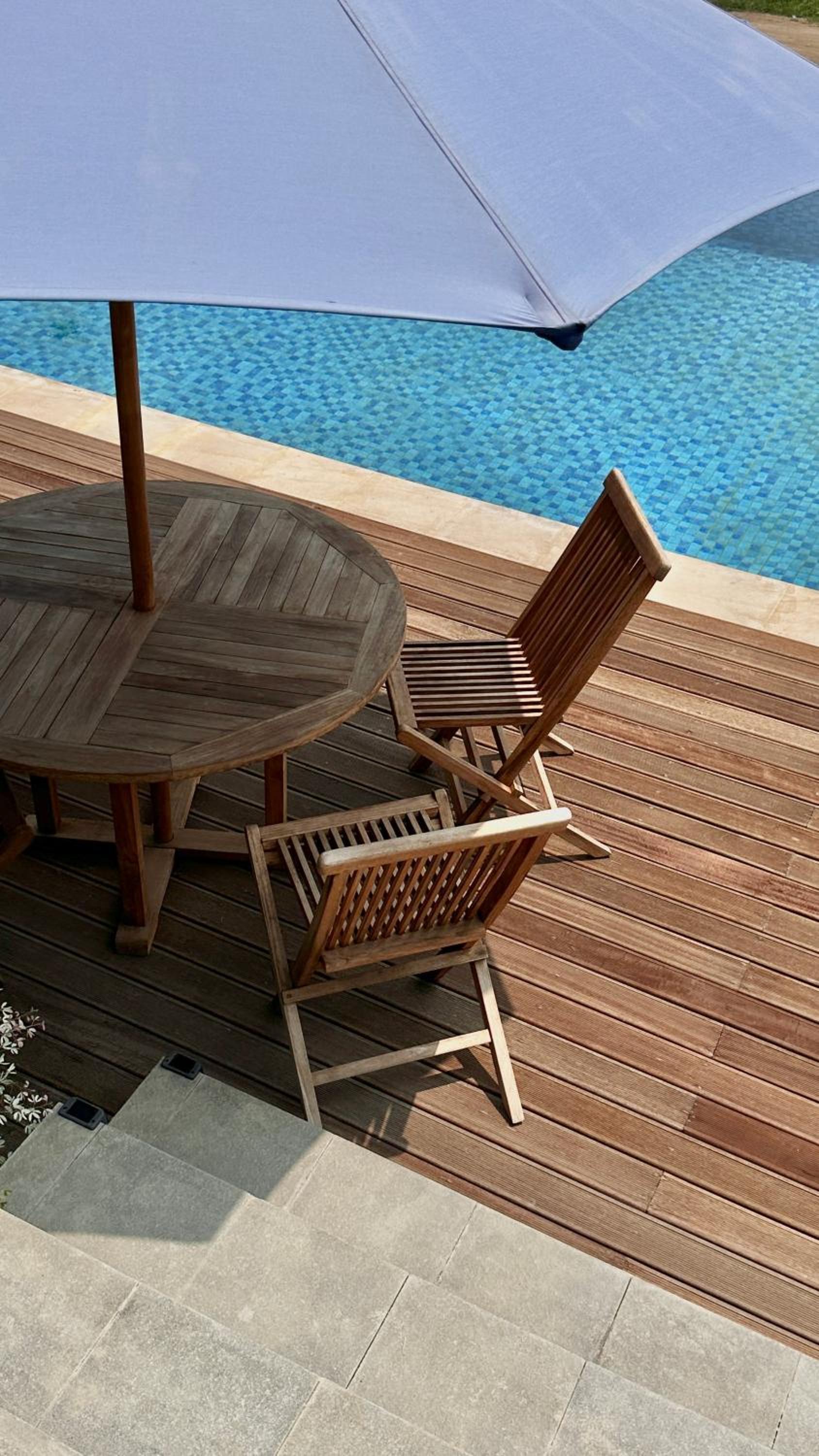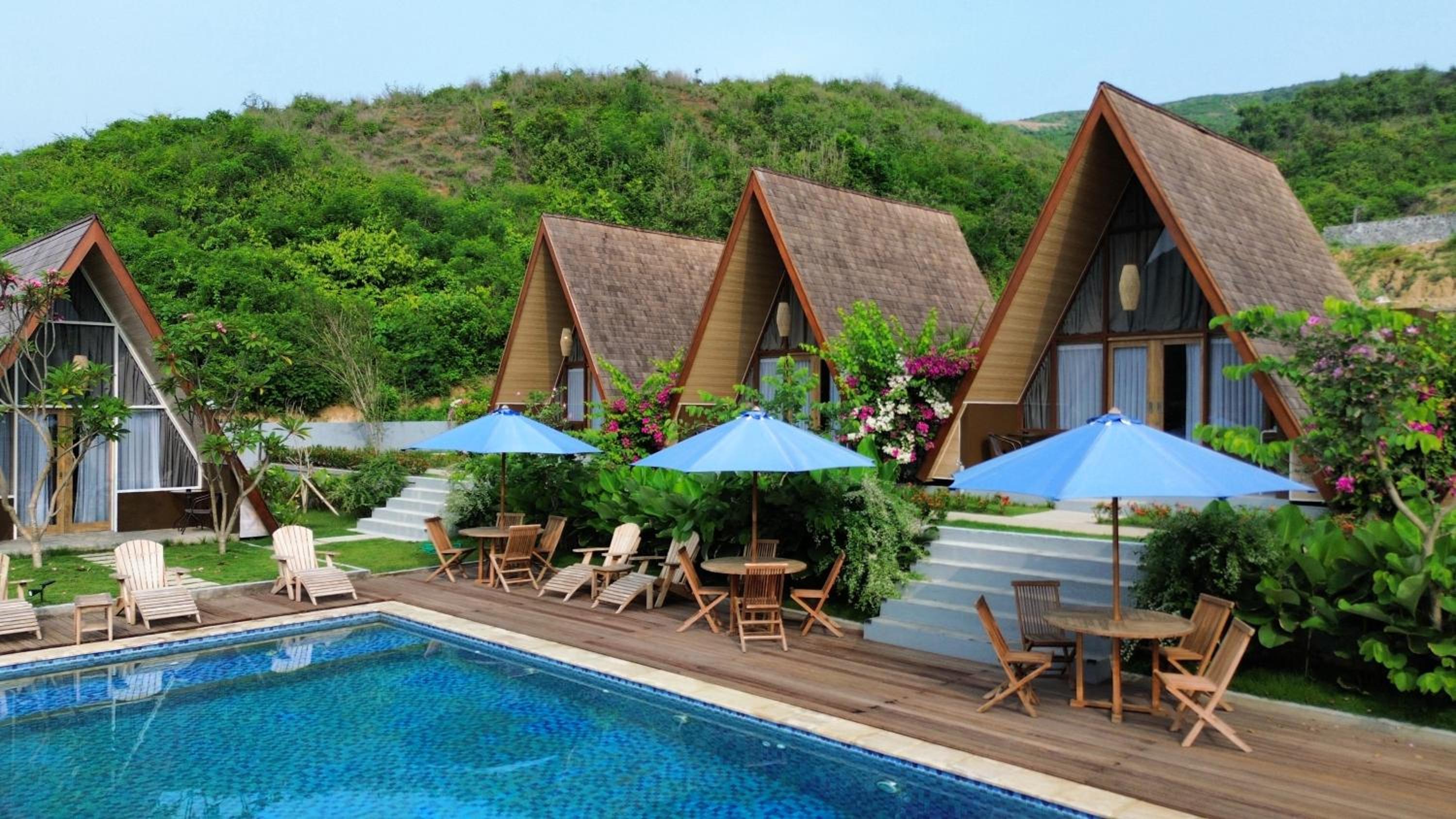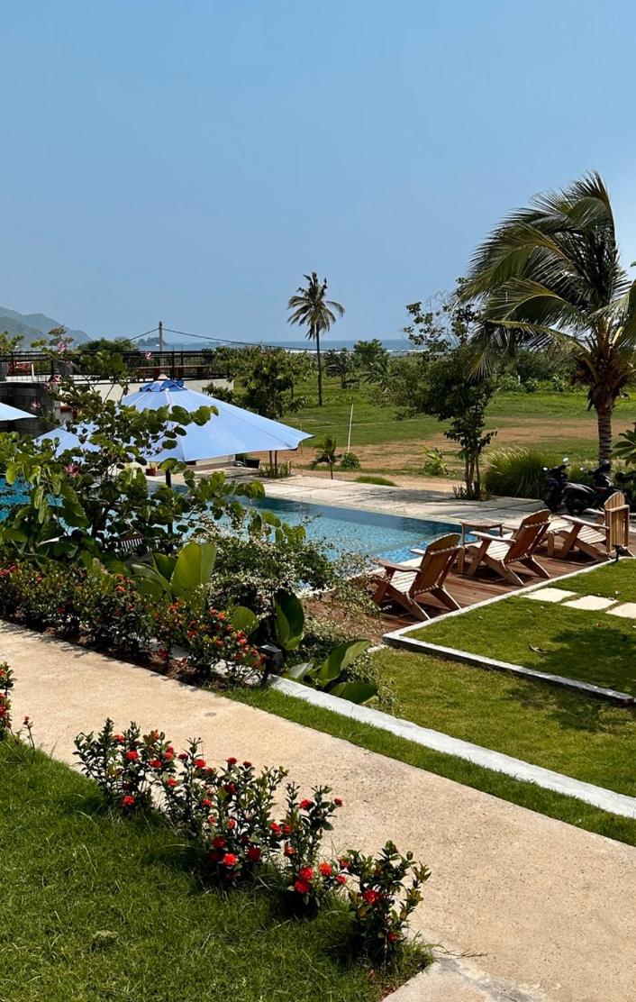 The view is very pleasing, on the foreground is the green agriculture and the background is the hill and the ocean, wonderful to wake up to this view. the pool shares the similar view and it's a rectangle shape that I can actually swim (very short) laps. Short walk to the surf spots. The beach and area is quiet which is nice.
