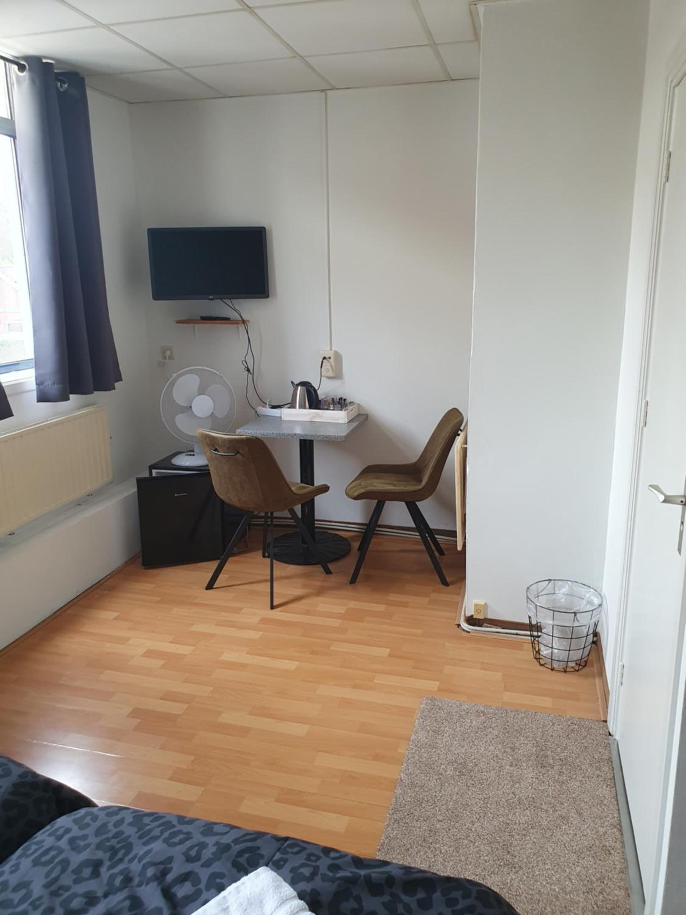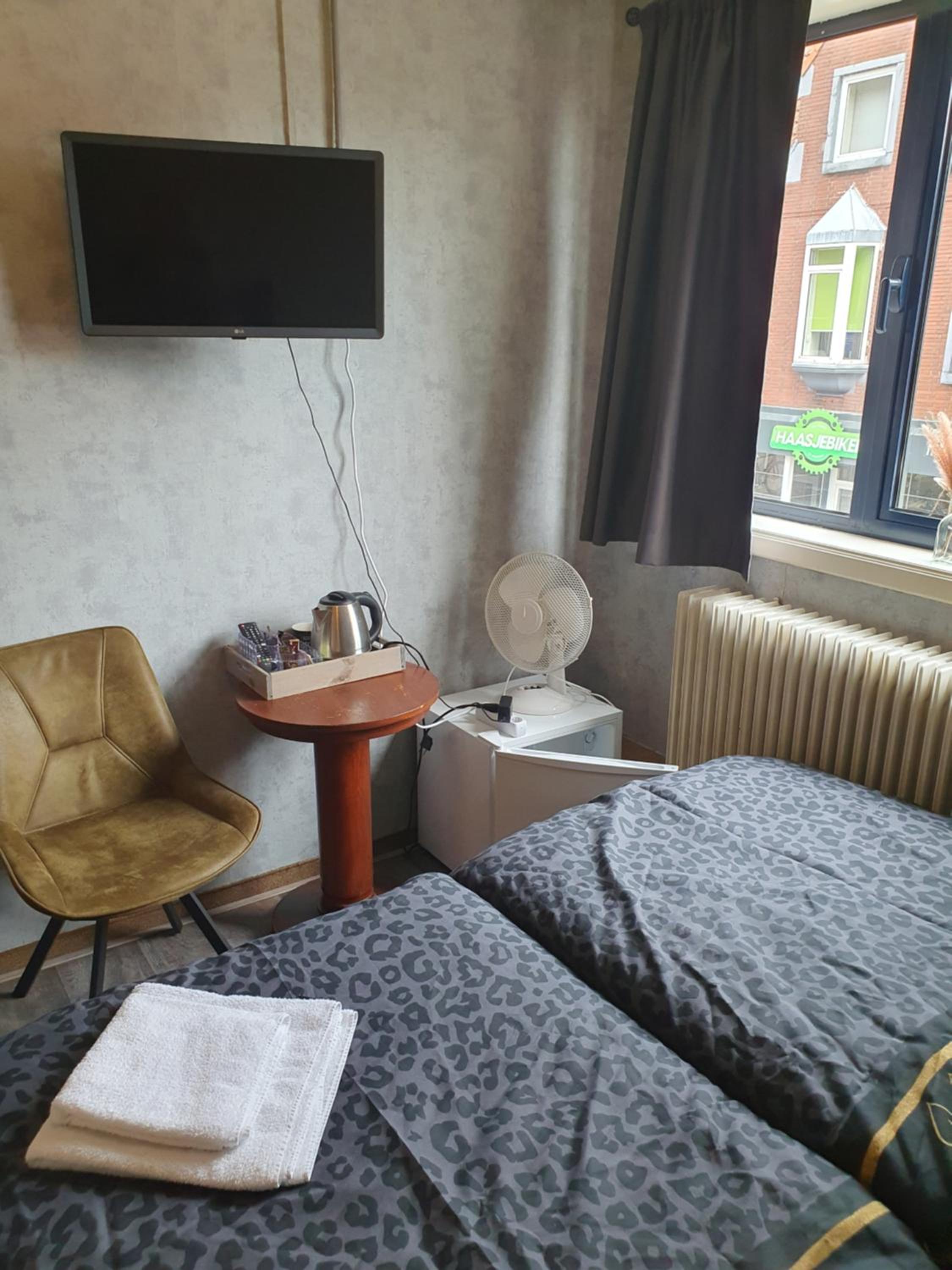 However, the room I stayed in was extremely small, and was unbearably hot (35-40 degrees C!) with no airflow -- unless you opened up the small, screen-less window, which let in all sorts of flying insects, including voracious mosquitoes. Houseflies seemed to be everywhere on the property in general. The reason why I stayed there was so that I could be restful and enjoy the local beer festival, but the two sleepless nights due to the above ruined it for me; in retrospect, I was better off just taking the 2-hour-each-way bus back and forth each day, just so that I would have my airco home environment. The shower was the only bright spot of the en suite bathroom; the light when turned on activated the fan, which loudly ran for an extra 10 minutes or so once turned off. The only two surfaces to place things on, were the chair and a tiny, low-to-the-ground, rickety, metal night stand. A small fridge oddly accompanied the room, but it kept nothing cold inside (even on "max" setting), and its rear vents only added to the heat of the room. The walls are thin enough to hear other guests snoring; the sounds from their rooms also validated for me how miserable the conditions were for them, too. The bed itself was small, and the mattress drooped over to one side. Breakfast was OK; I feel like the food items were sourced from the local Albert Heijn just down the street, and thus I overpaid dearly for it. The room wasn't cheap, either, so the entire stay felt like a horrible expenditure.
