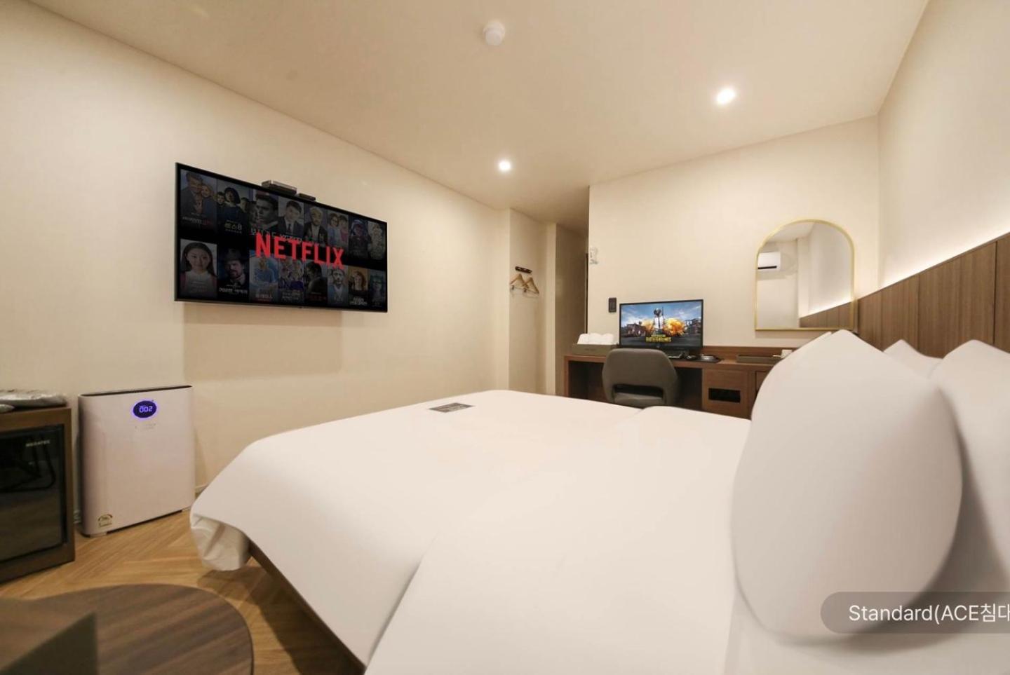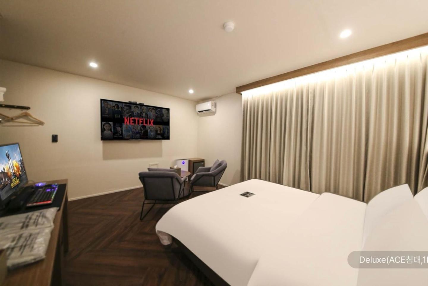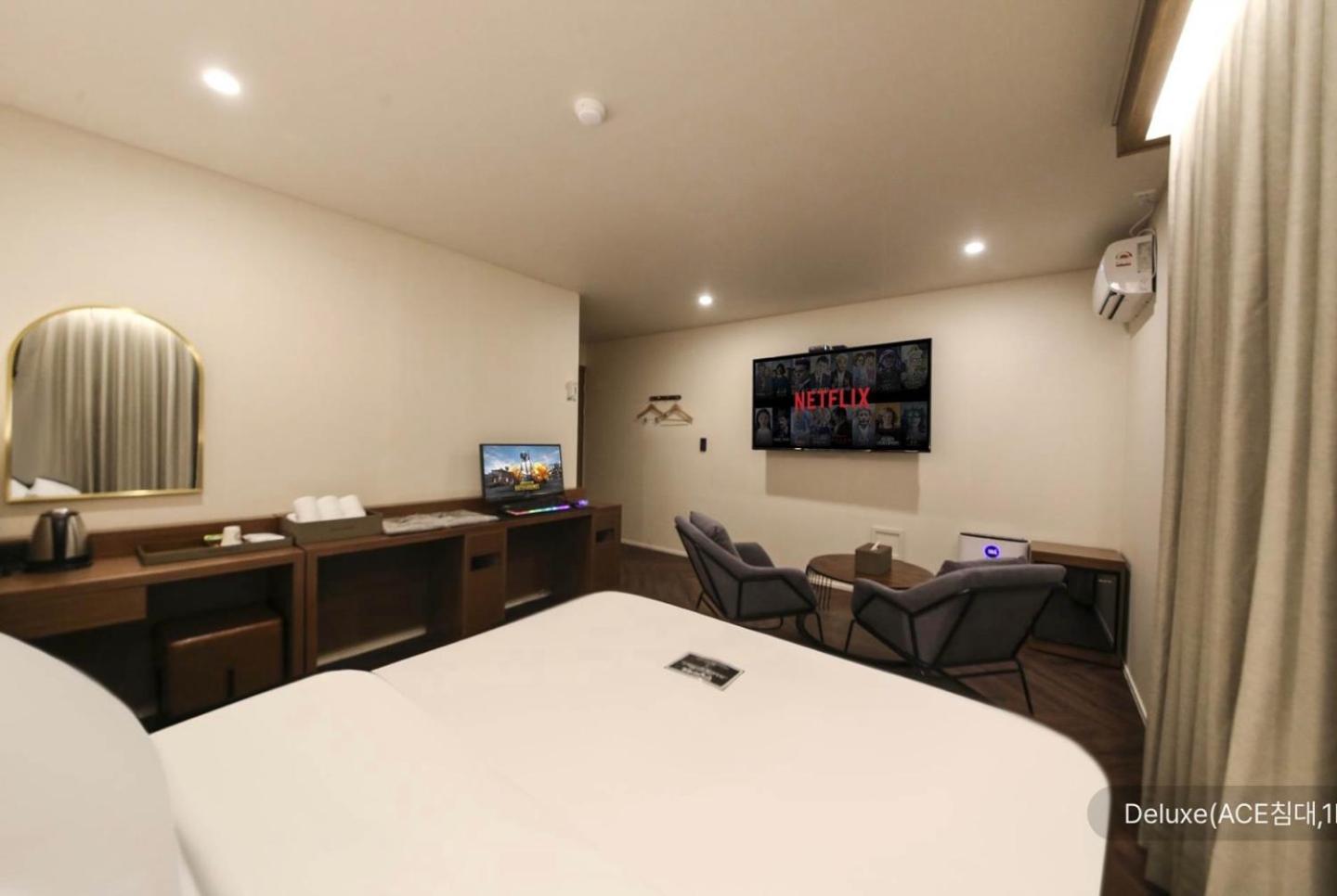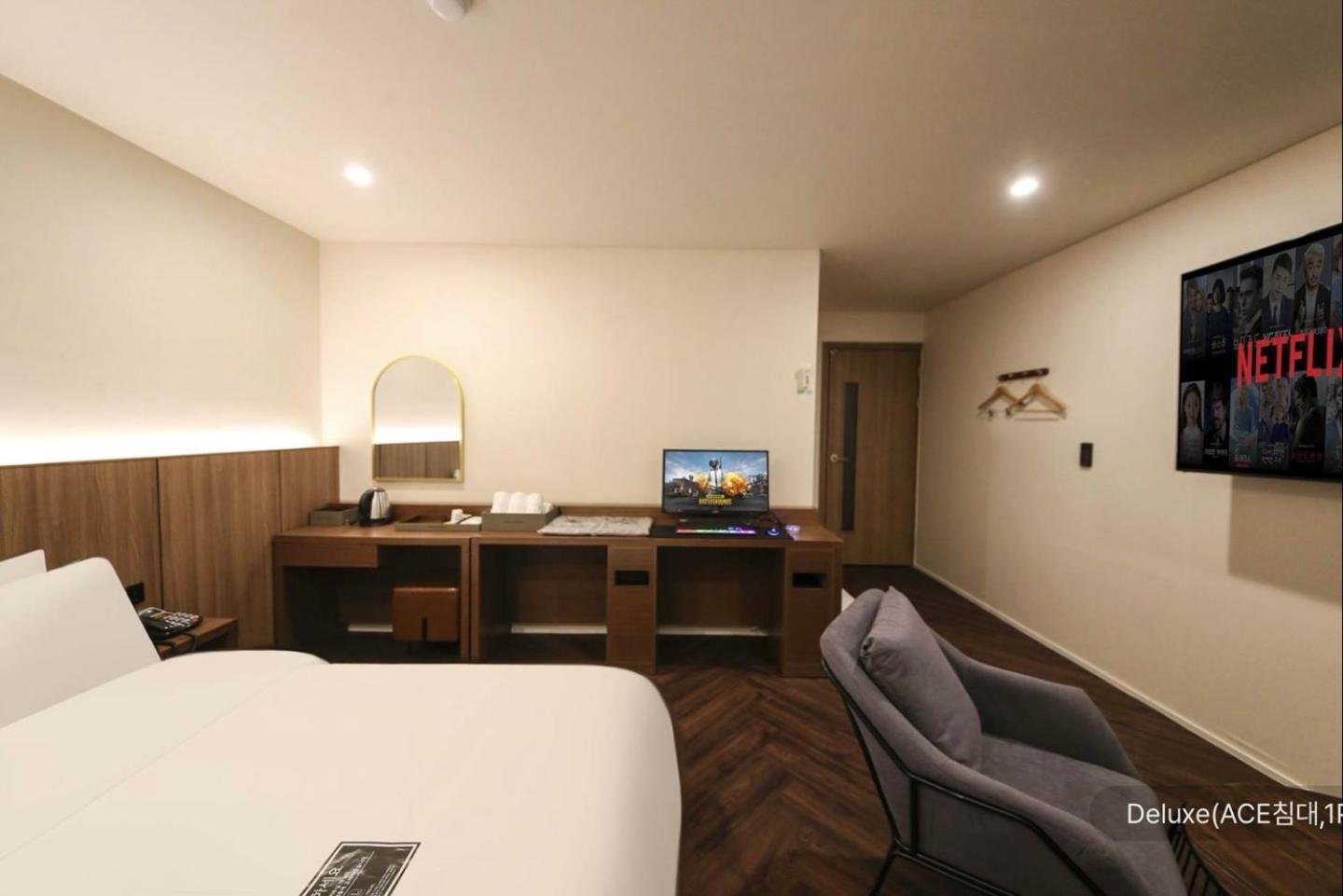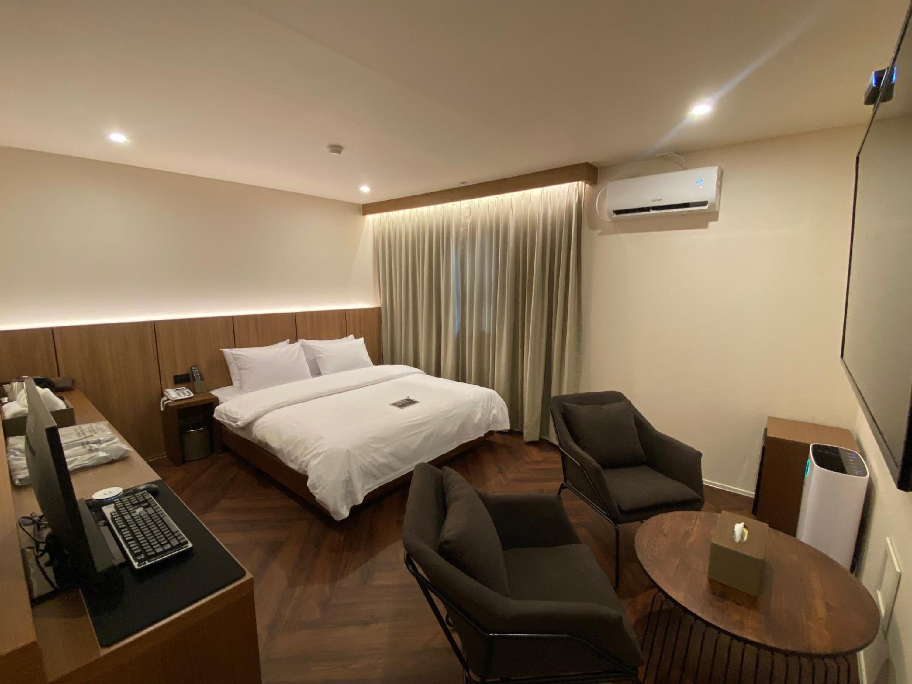 The staff was very friendly, kind and accommodating. The room was spacious, clean quiet.It's a 5 mins easy walk to the Onyang springs train station. Plenty of convenient stores near by and the food shopping market all within a short walk from the hotel.