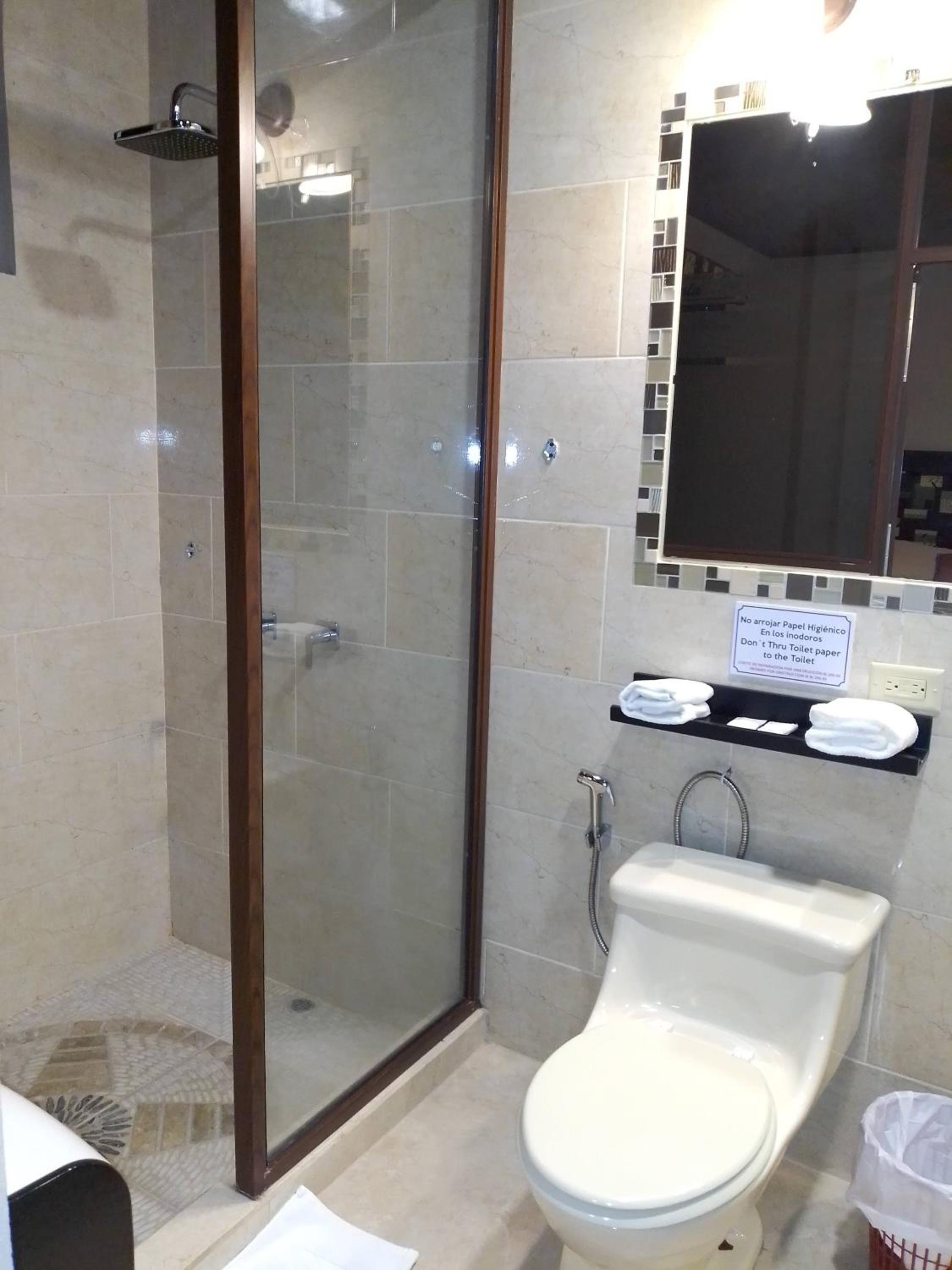 No hay estacionamiento suficientes, las distribuciones del cuarto no son buenas por ejemplo la prendas de vestir hay que ubicarlas dentro del cuarto de baño lo cual es insalubre, no hay donde poner las pertenencias y maletas, sólo tienen una mesita o sea no hay muebles vitales para la comodidad, tuve problemas con el agua caliente, los horarios de atención no son los que dicen ejemplo me dijeron que la recepción cierra a las diez lo cual no fue cumplido y me obligaron a cancelar un compromiso ya que la recepcionista me dijo que se retiraría a las 9.00 pm y no a las 10.00 para recibirme y me dice que me recibiría el seguridad lo cual no es correcto ya que su horario de salida es a las 10.00 pm como lo anuncian y como me dijeron y por último me dicen al retirarme que una toallita estaba manchada lo cual me pareció ridículo ya que fui a comprobar y solo estaba sucia como debe ser, esto me pareció miserable ya que esto es un consumible barato. El precio no está de acuerdo con lo que ofrecen ya que me tome la molestia de ver otros lugares que ofrecen más por menos costo