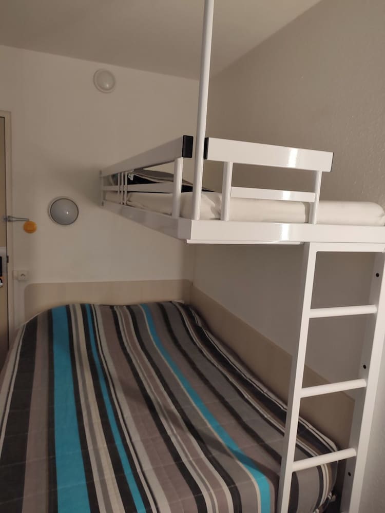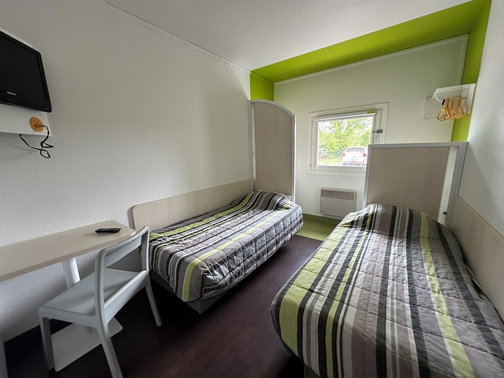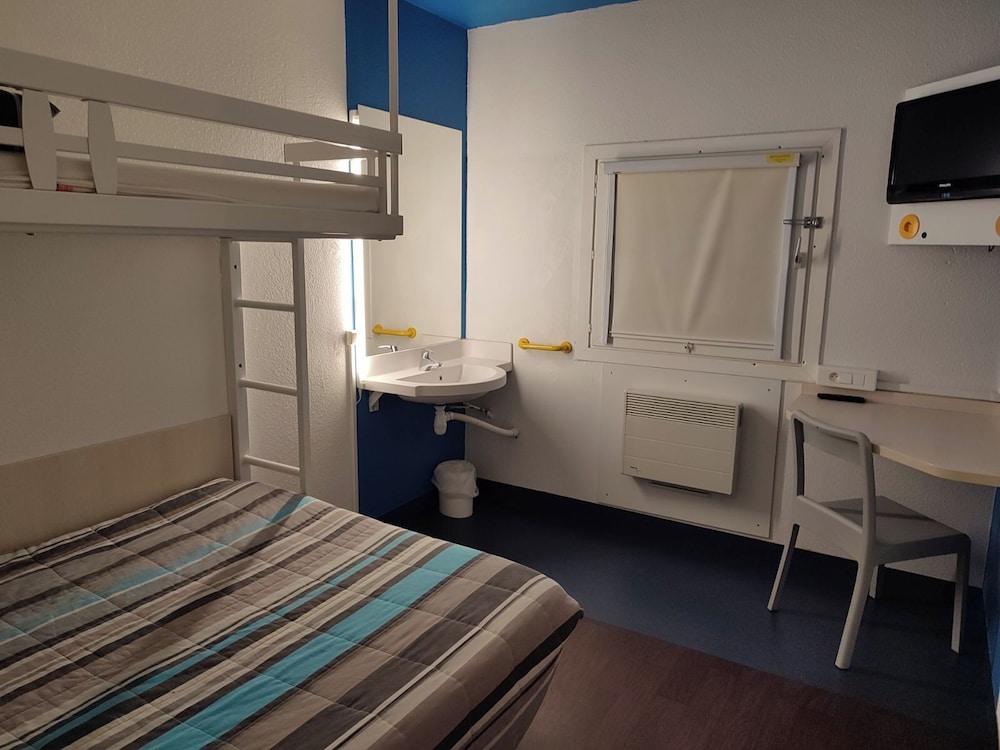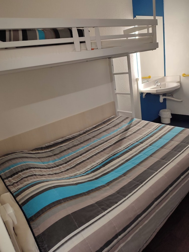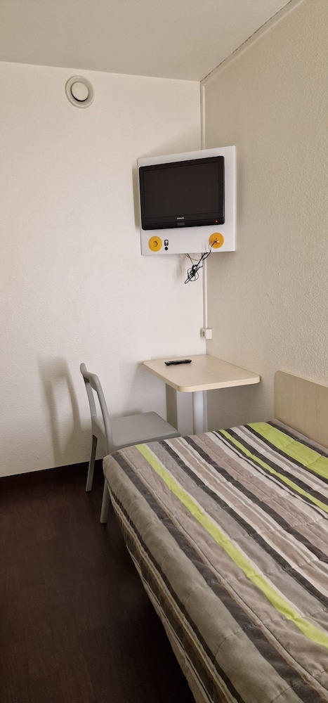 Pas de serviettes et si vous en voulez une il faut payer 3€, chambre vétuste et sale, extérieur sale et pas entretenue, peu rassurant, voiture a l abandon sur le parking, petit déjeuner a aller chercher a l autre hôtel d en face dans un sac en papier