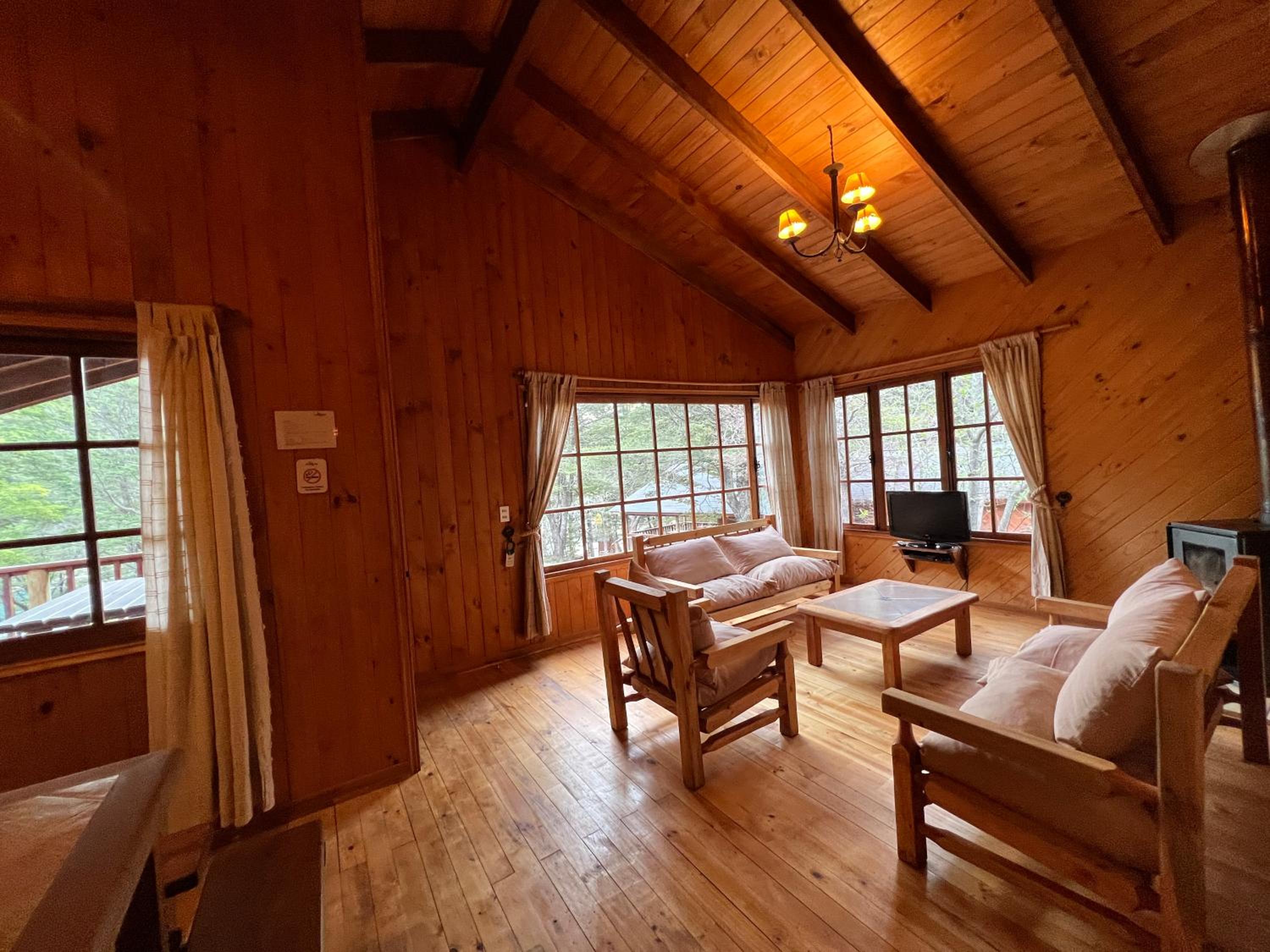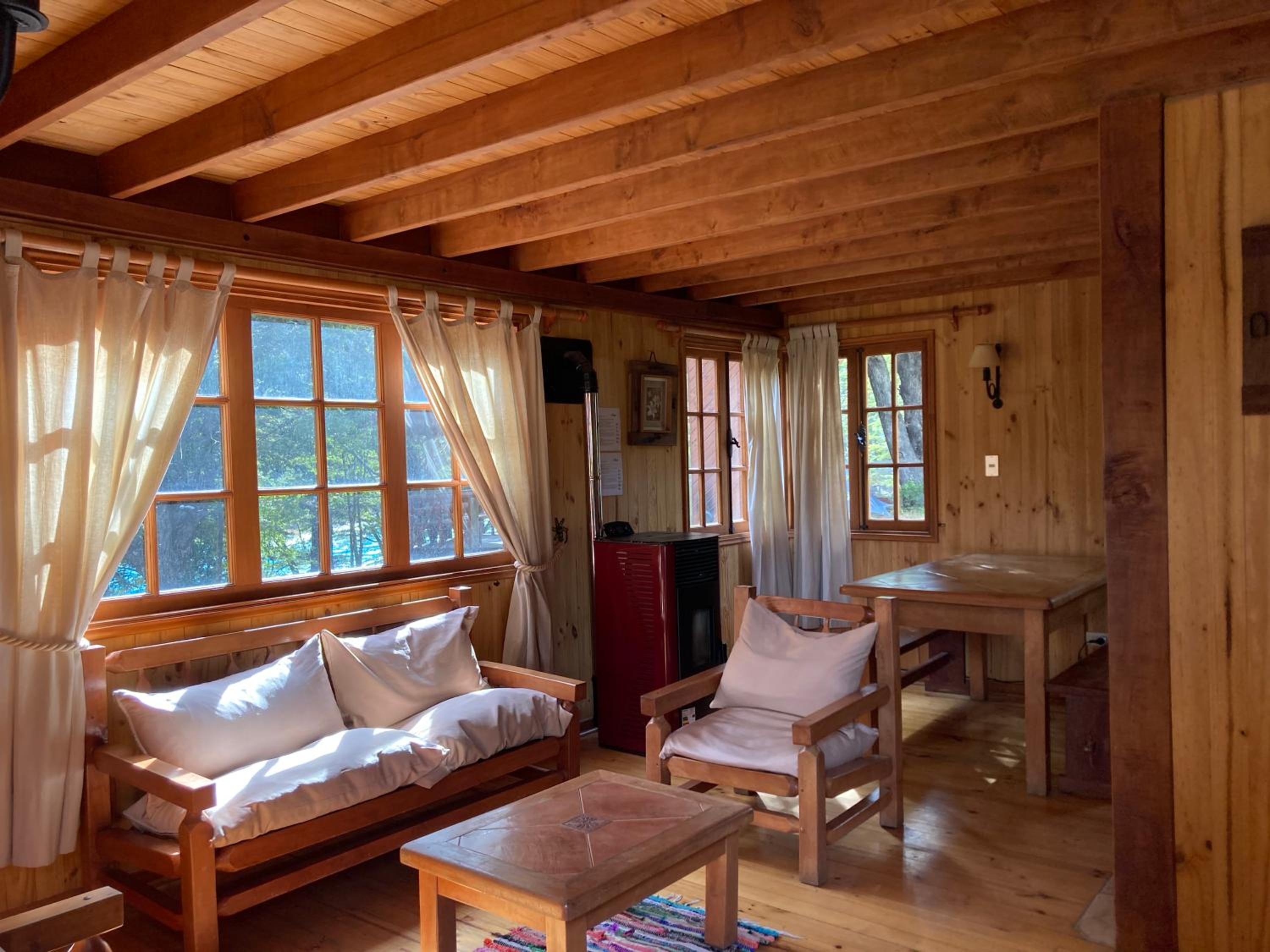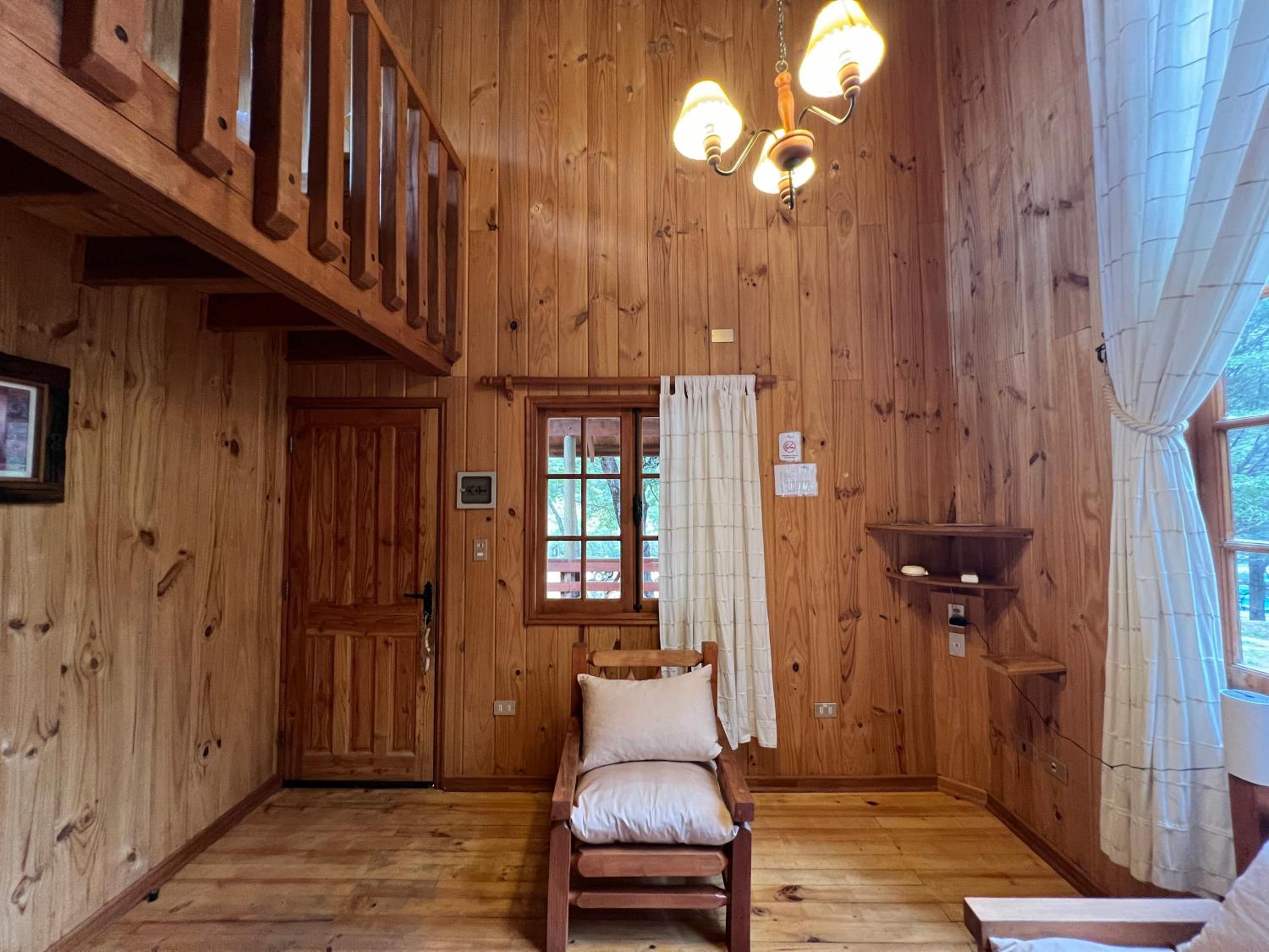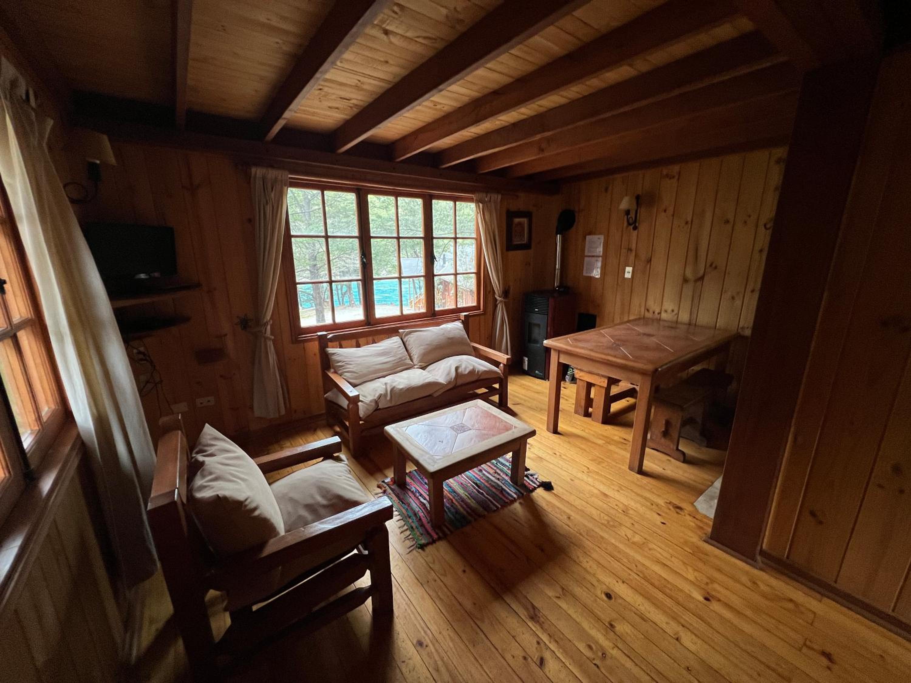 La cabaña es estrecha para 4 personas. Es justita. La cocina apenas da para cocinar. Todas las camas en una misma habitación, con el baño en el piso inferior. Se nota que todo el complejo tuvo tiempos mejores, tienen muchas instalaciones, pero no las promueven o aprovechan. Caro para lo que es. La ubicación la salva.