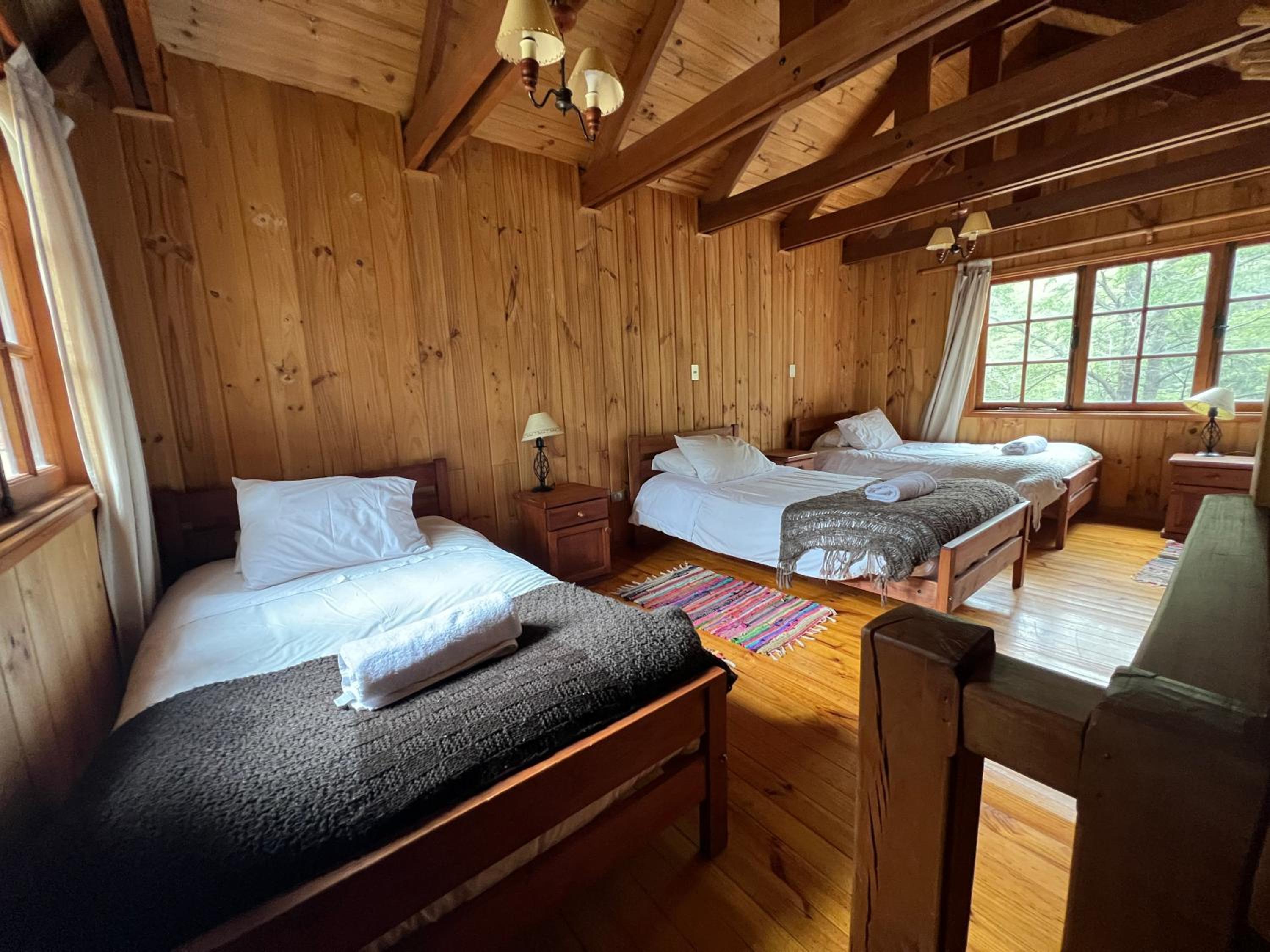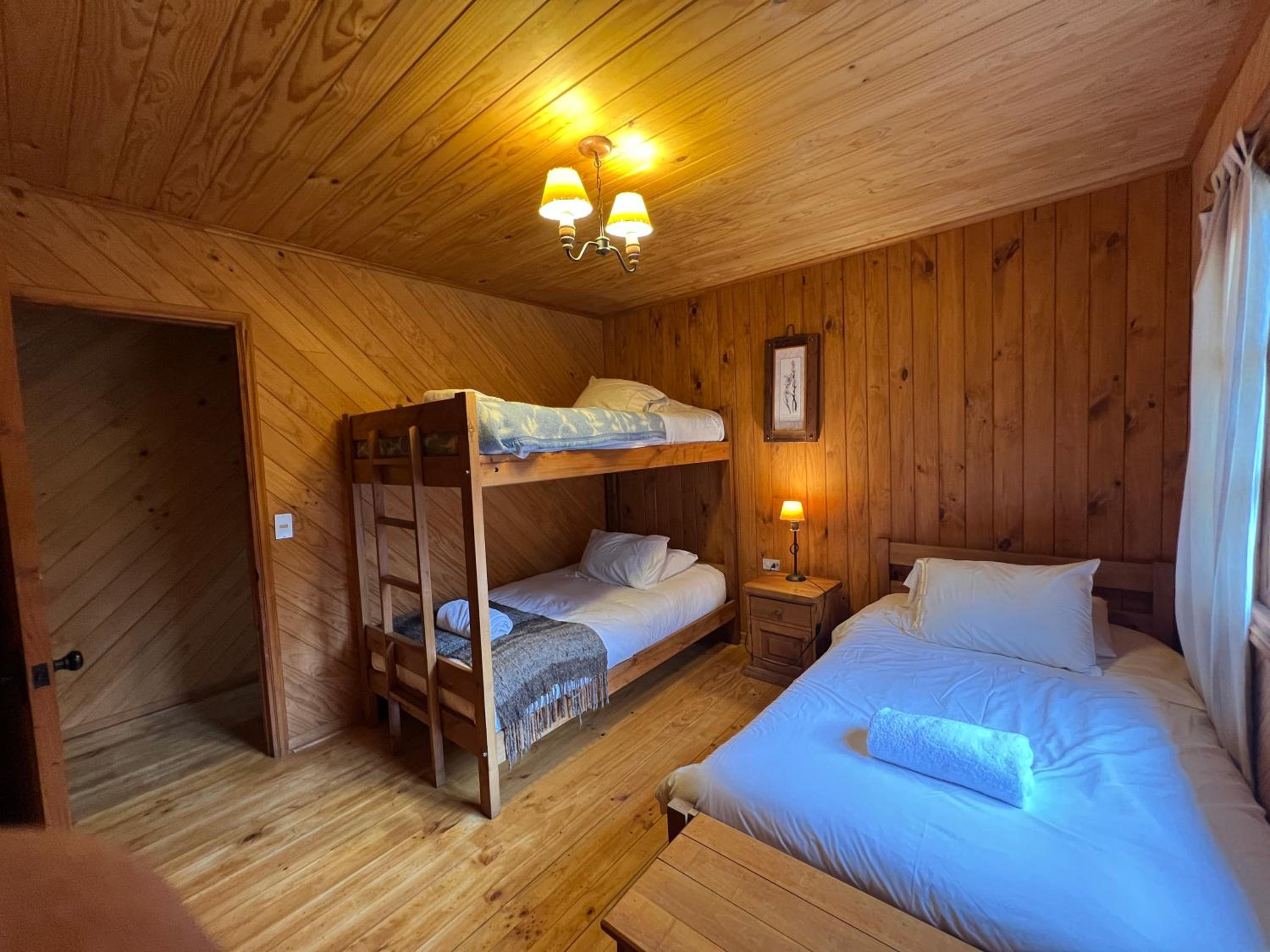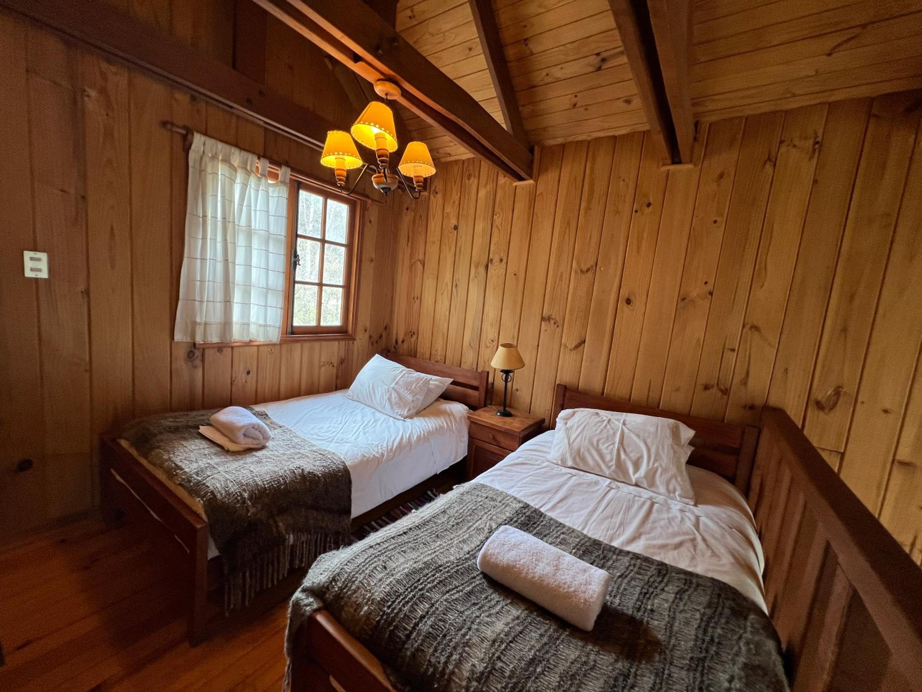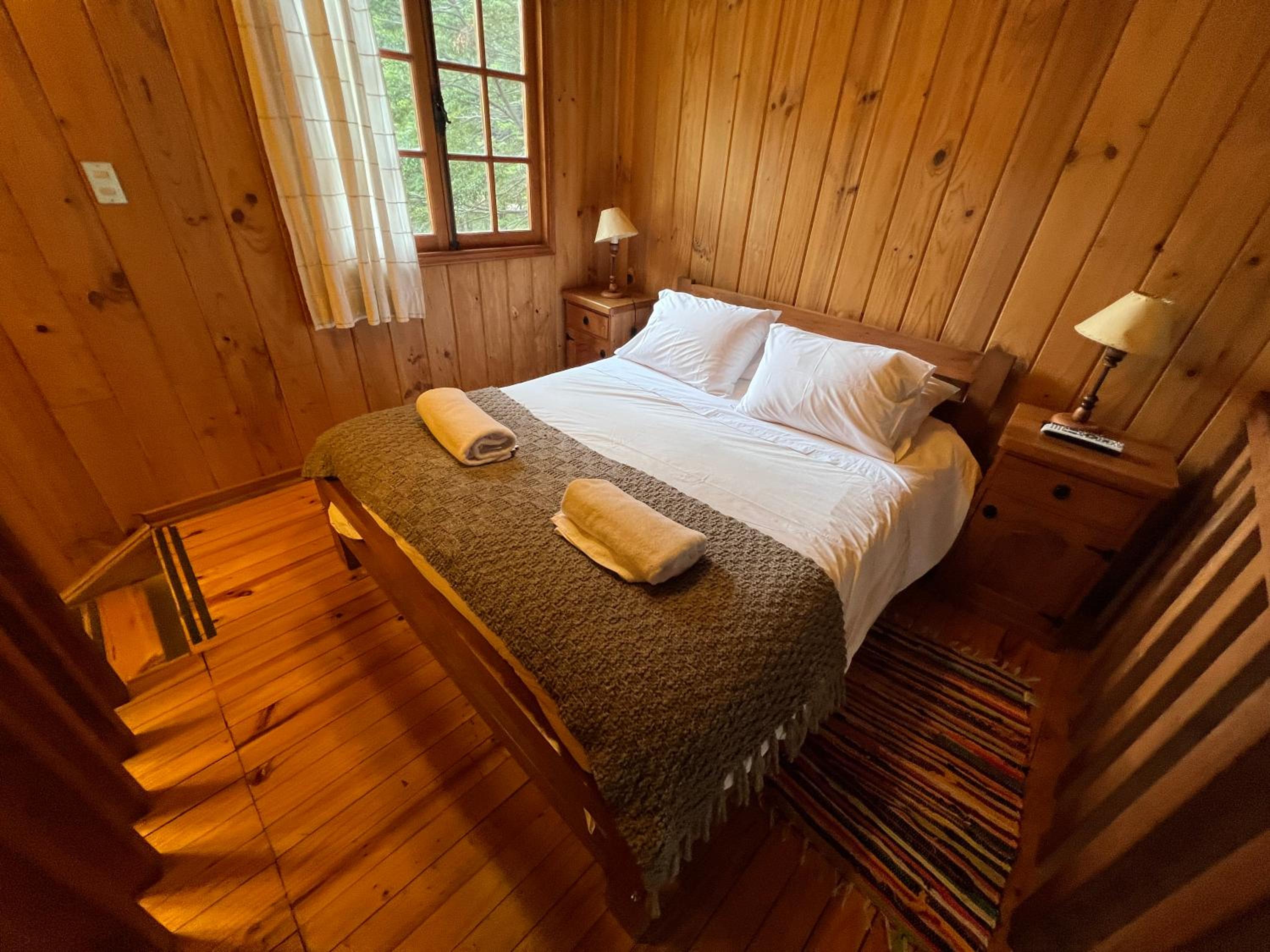 La cabaña es estrecha para 4 personas. Es justita. La cocina apenas da para cocinar. Todas las camas en una misma habitación, con el baño en el piso inferior. Se nota que todo el complejo tuvo tiempos mejores, tienen muchas instalaciones, pero no las promueven o aprovechan. Caro para lo que es. La ubicación la salva.