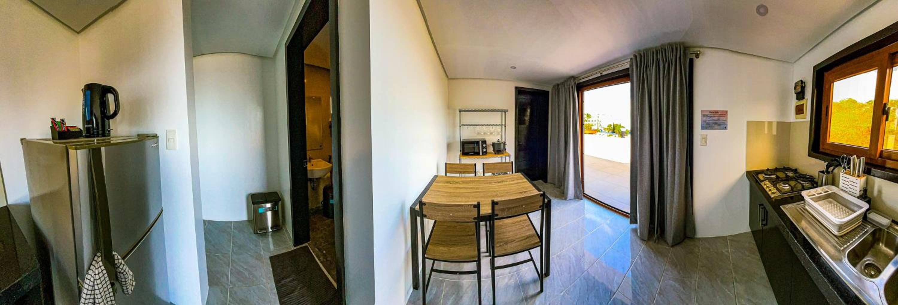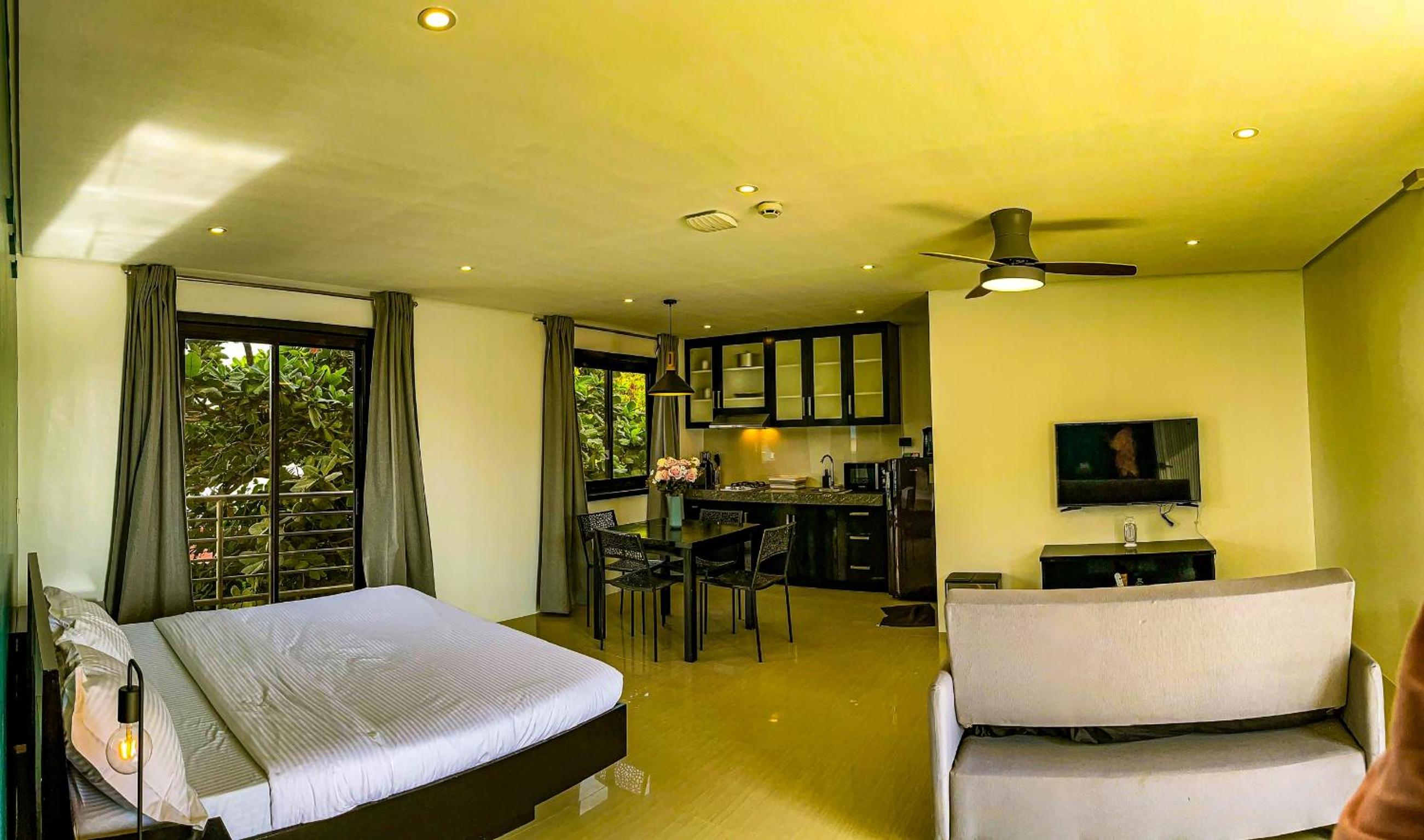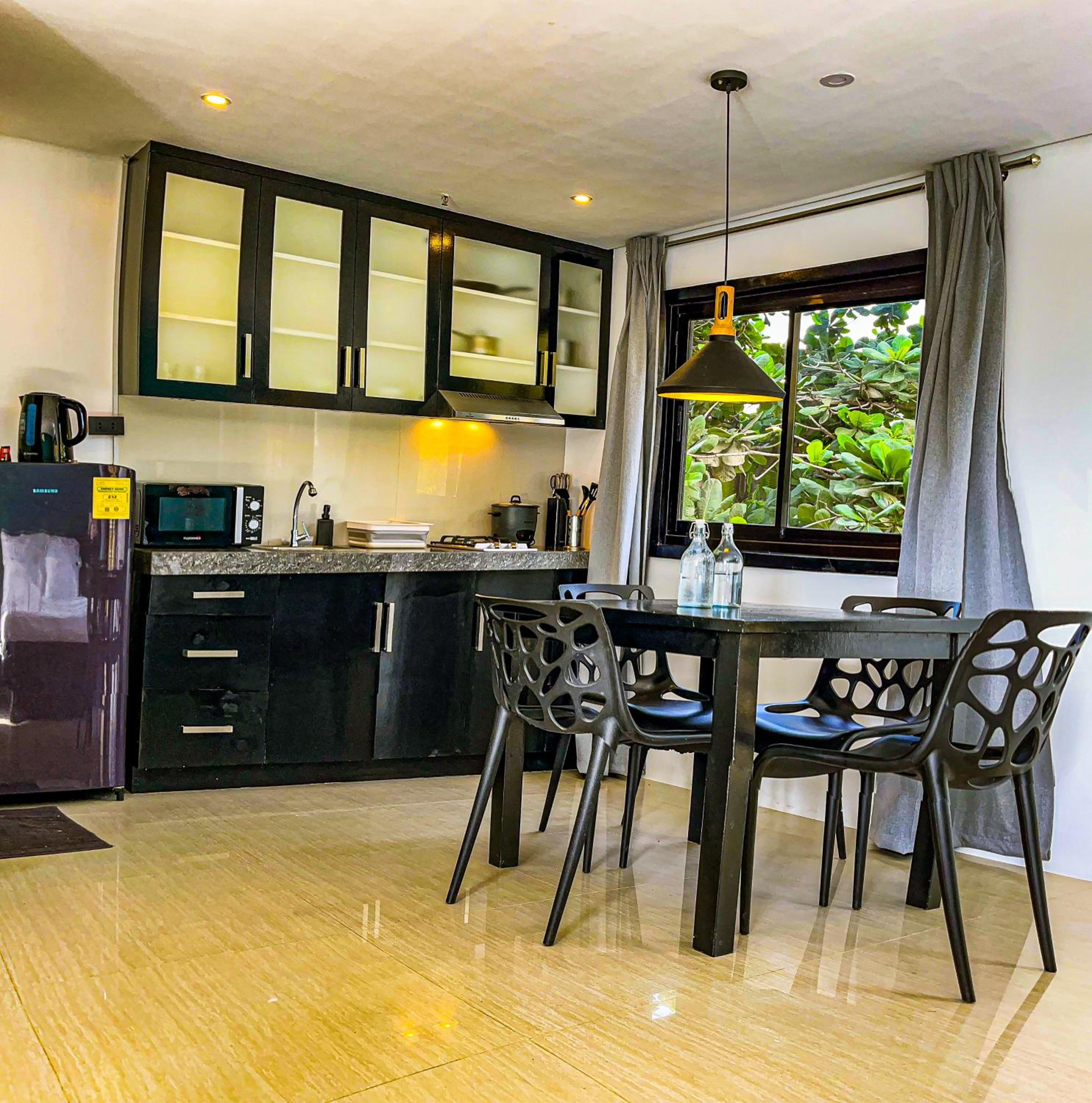Indulge your culinary skills with our kitchens featuring modern amenities like microwaves, fridges, and stovetops.