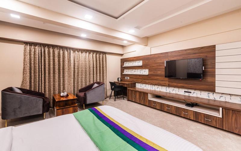Start your day with a scrumptious à la carte or vegetarian breakfast at our hotel. Explore Pune's iconic landmarks such as Pataleshwar Cave Temple and Srimant Dagadusheth Halwai Ganapati Temple, located just a short distance away.