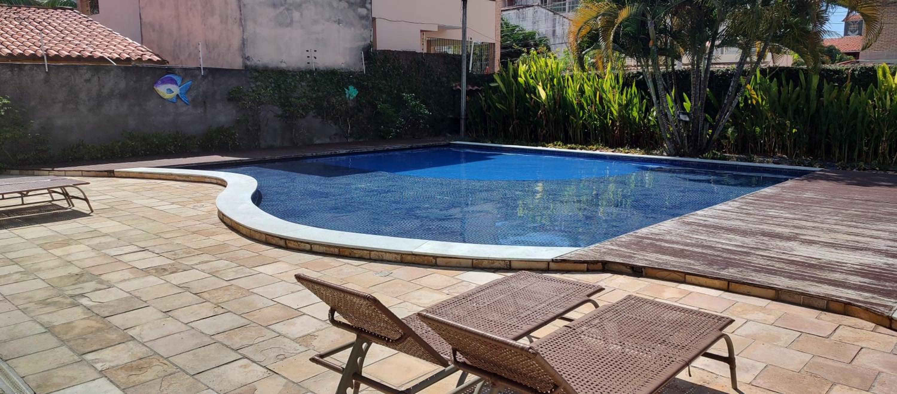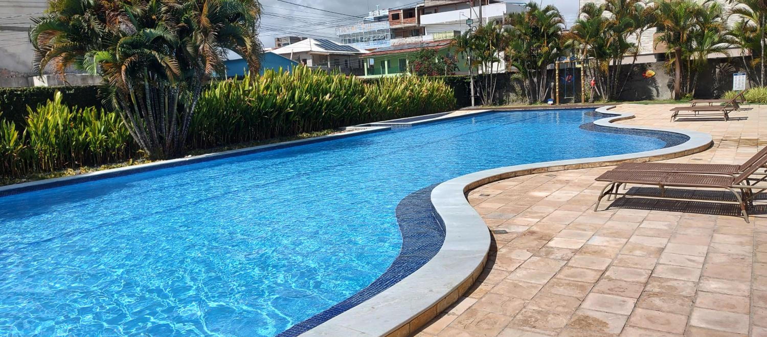 Longe da praia, piscina com água salobra, ruas muito esburacadas,