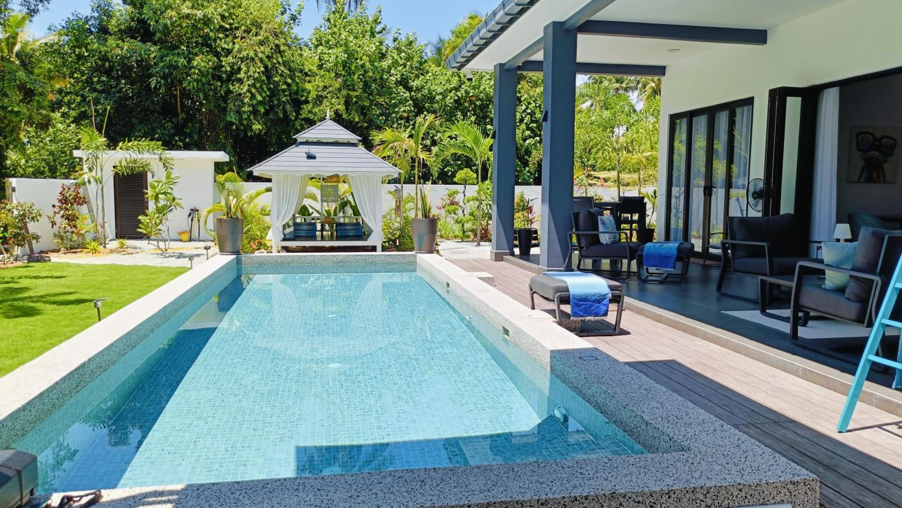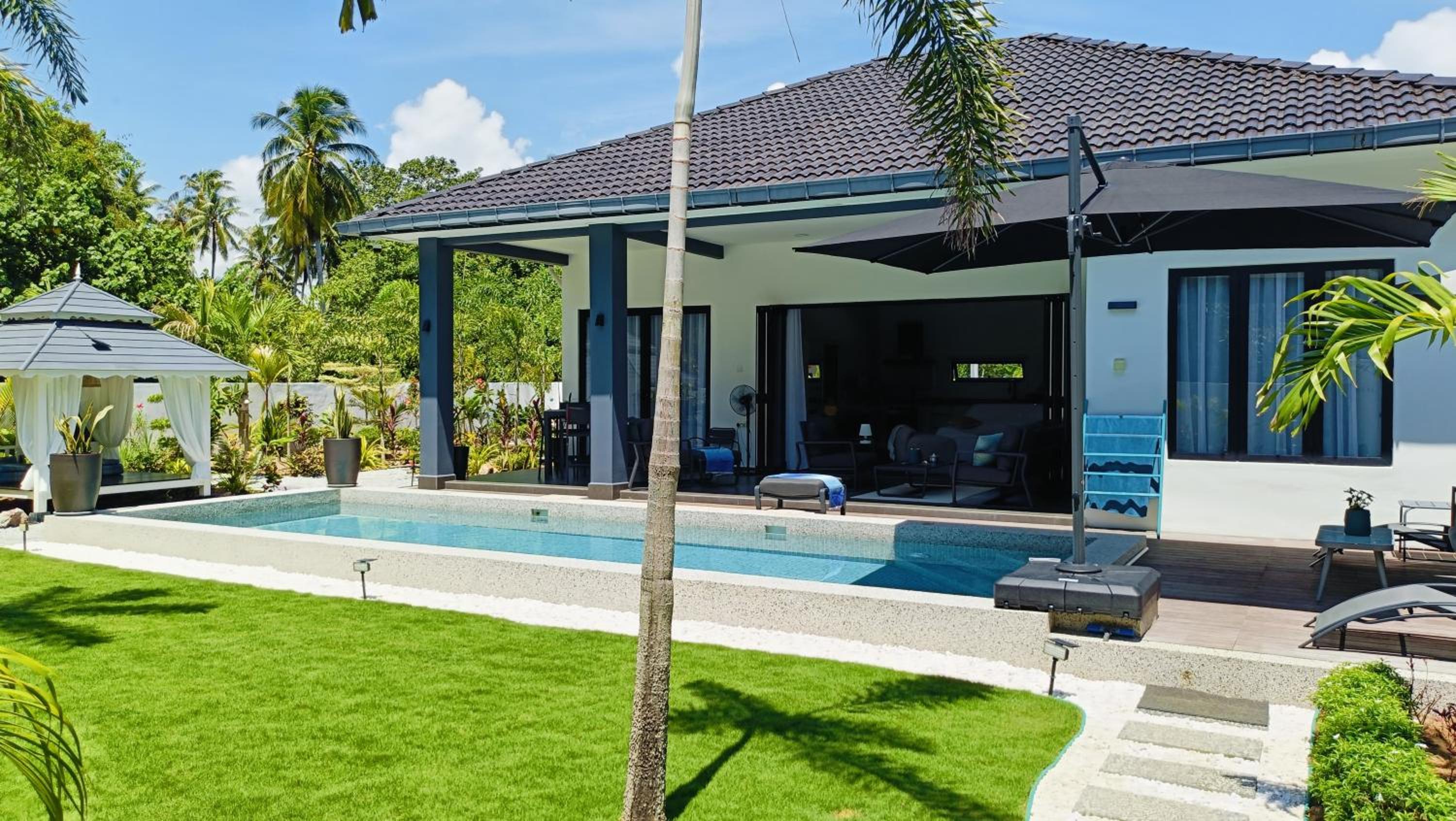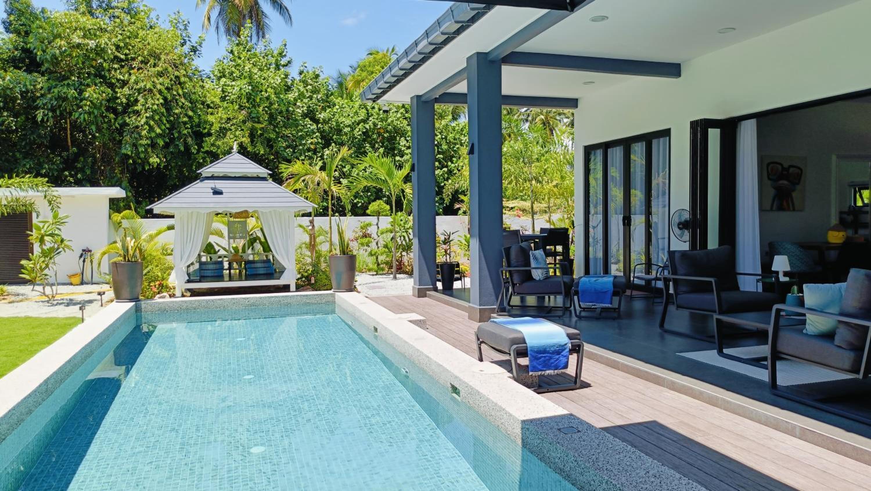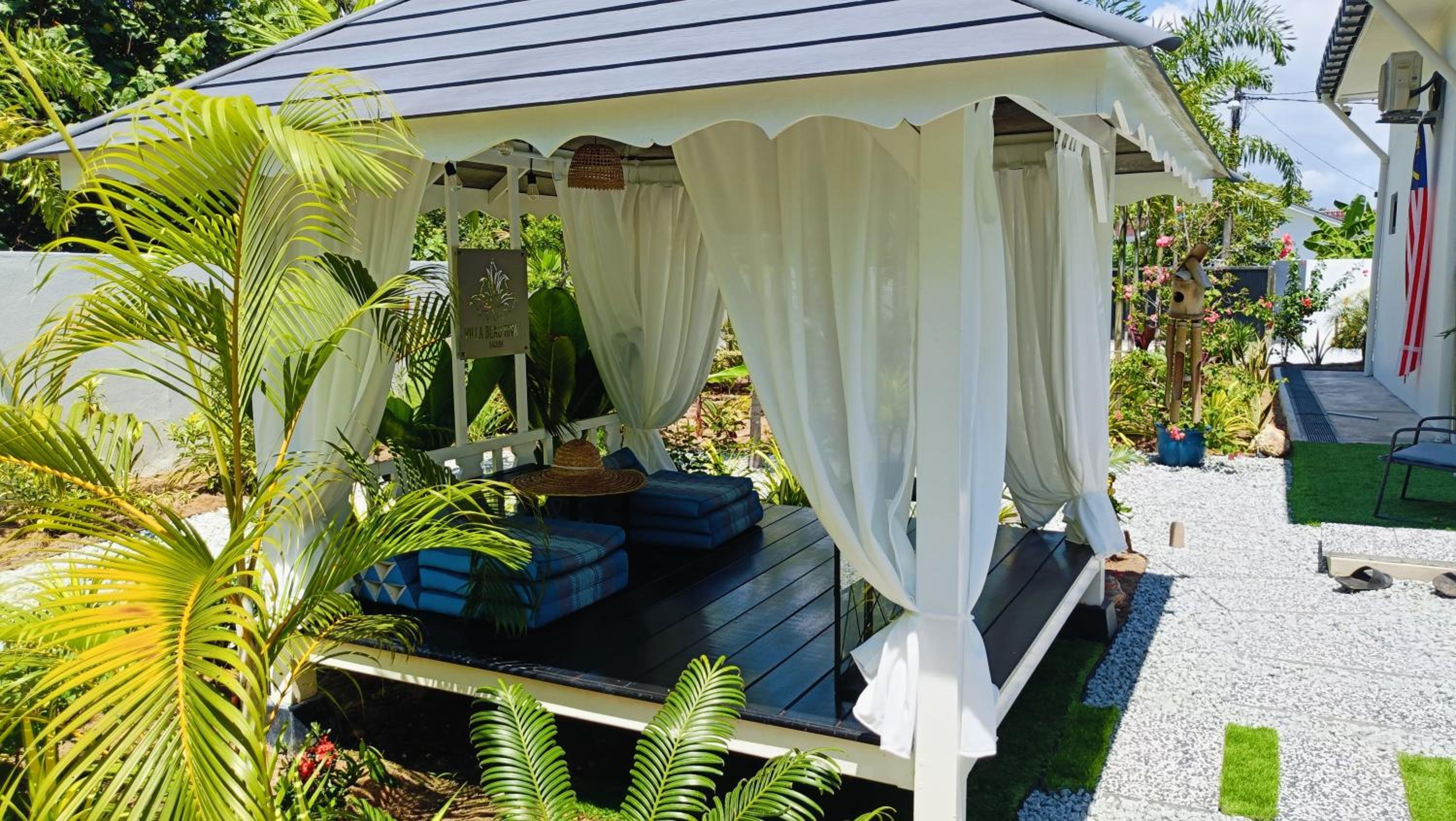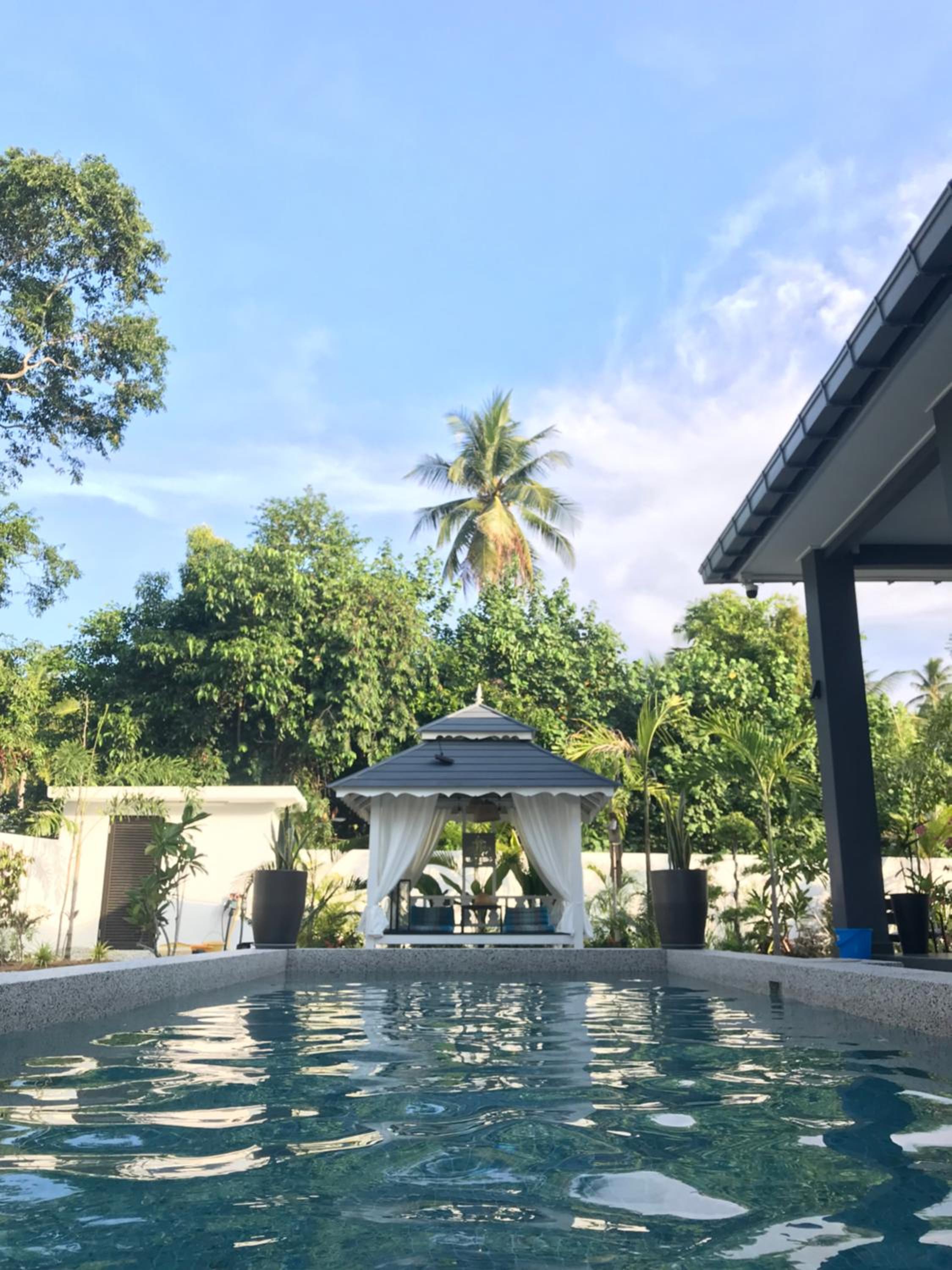 The place for you to find peace and relaxing your mind. You can enjoy the place with family as it offer a privacy. It was so peaceful and you can hear the sound of waves from the beach behind the villa.