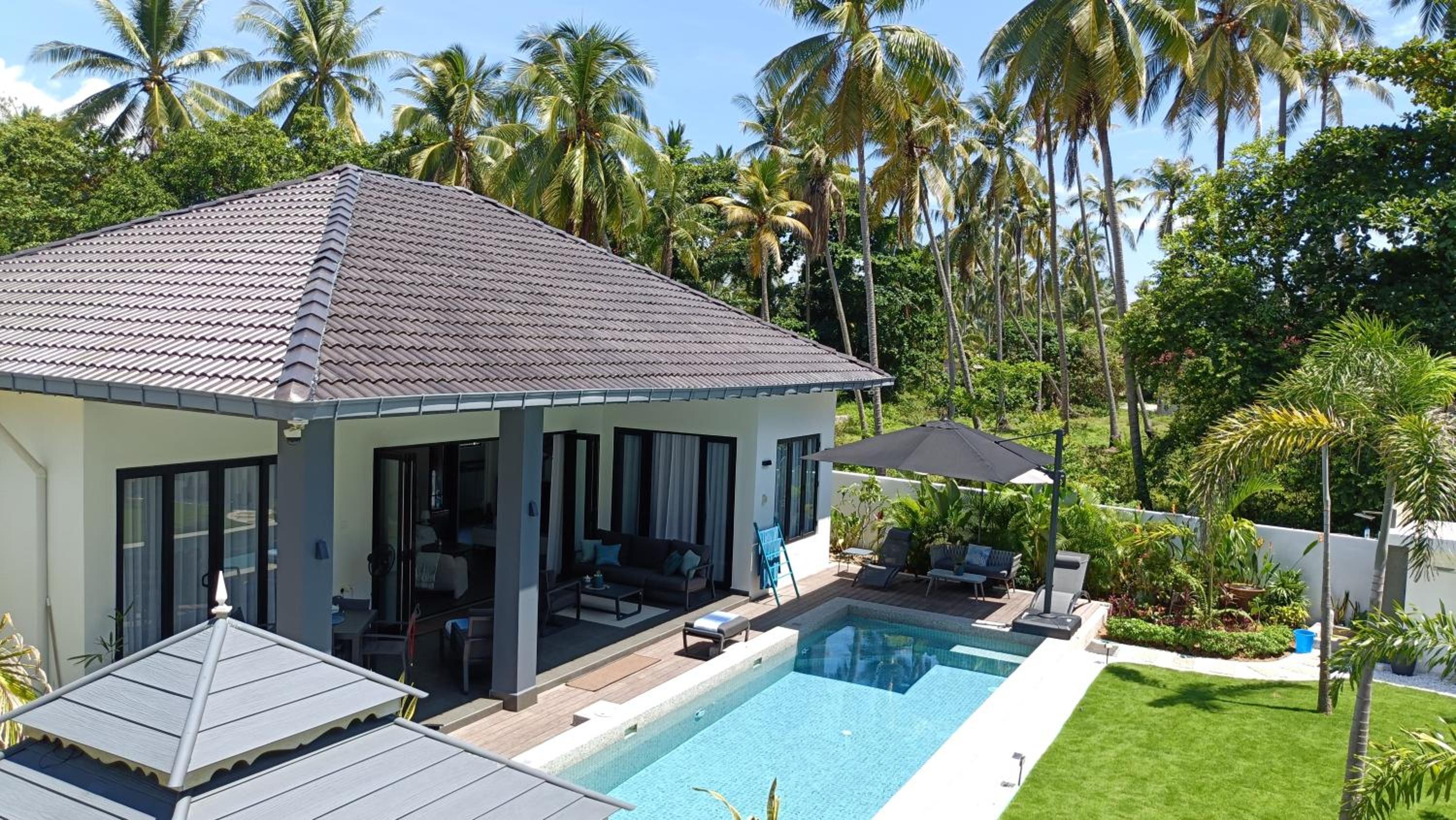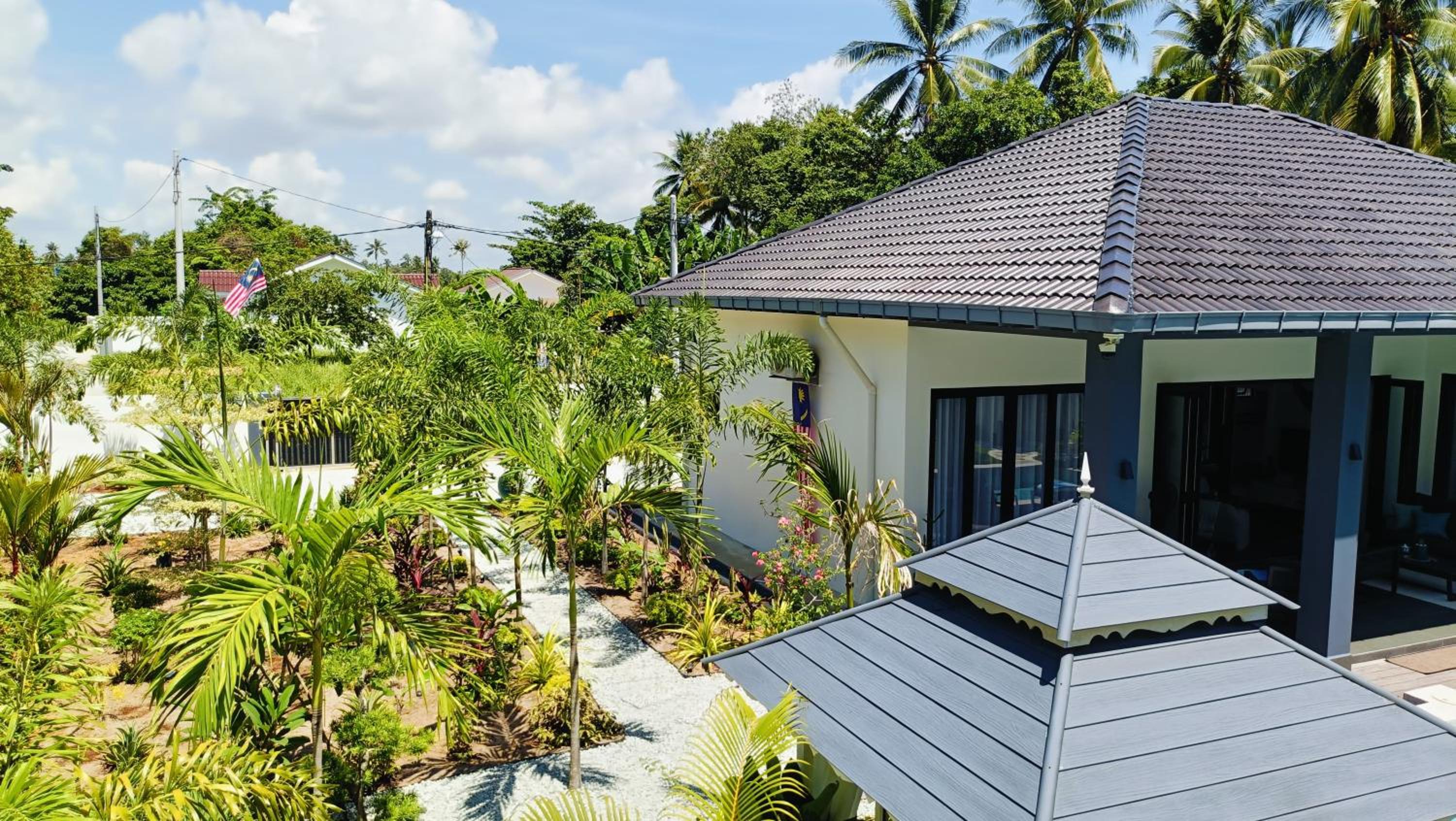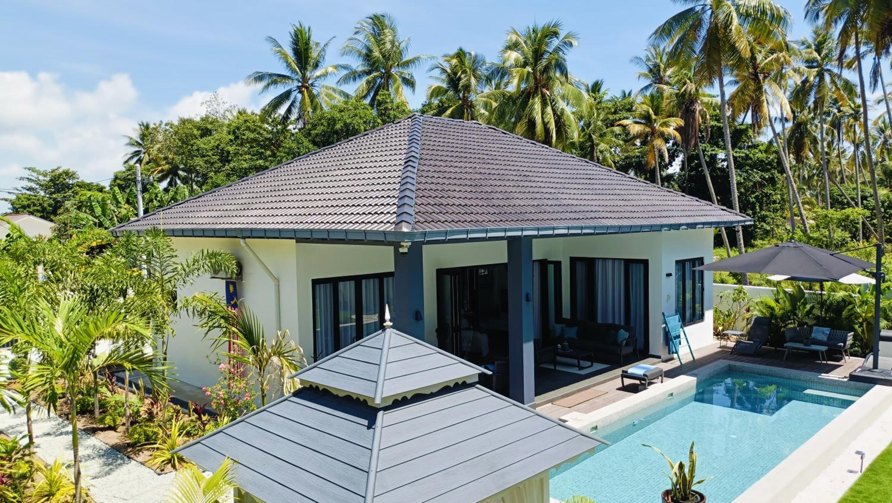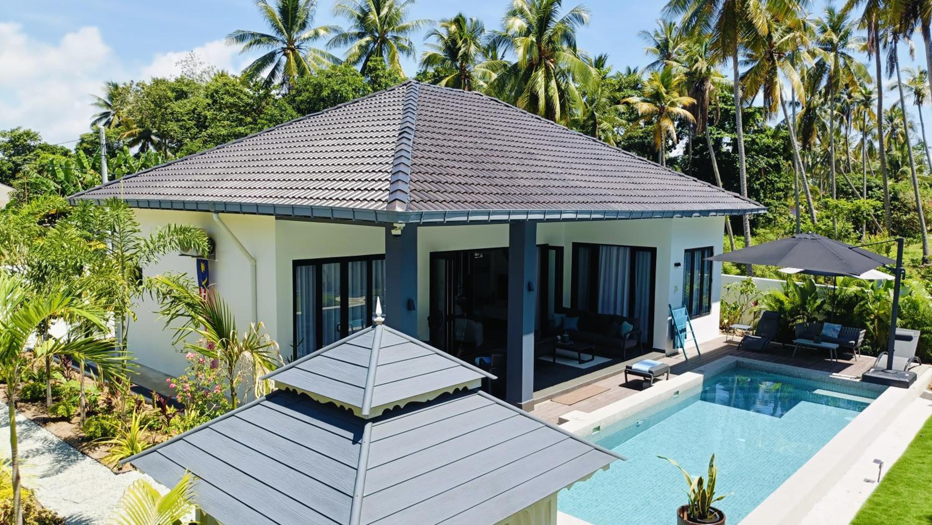 The place for you to find peace and relaxing your mind. You can enjoy the place with family as it offer a privacy. It was so peaceful and you can hear the sound of waves from the beach behind the villa.