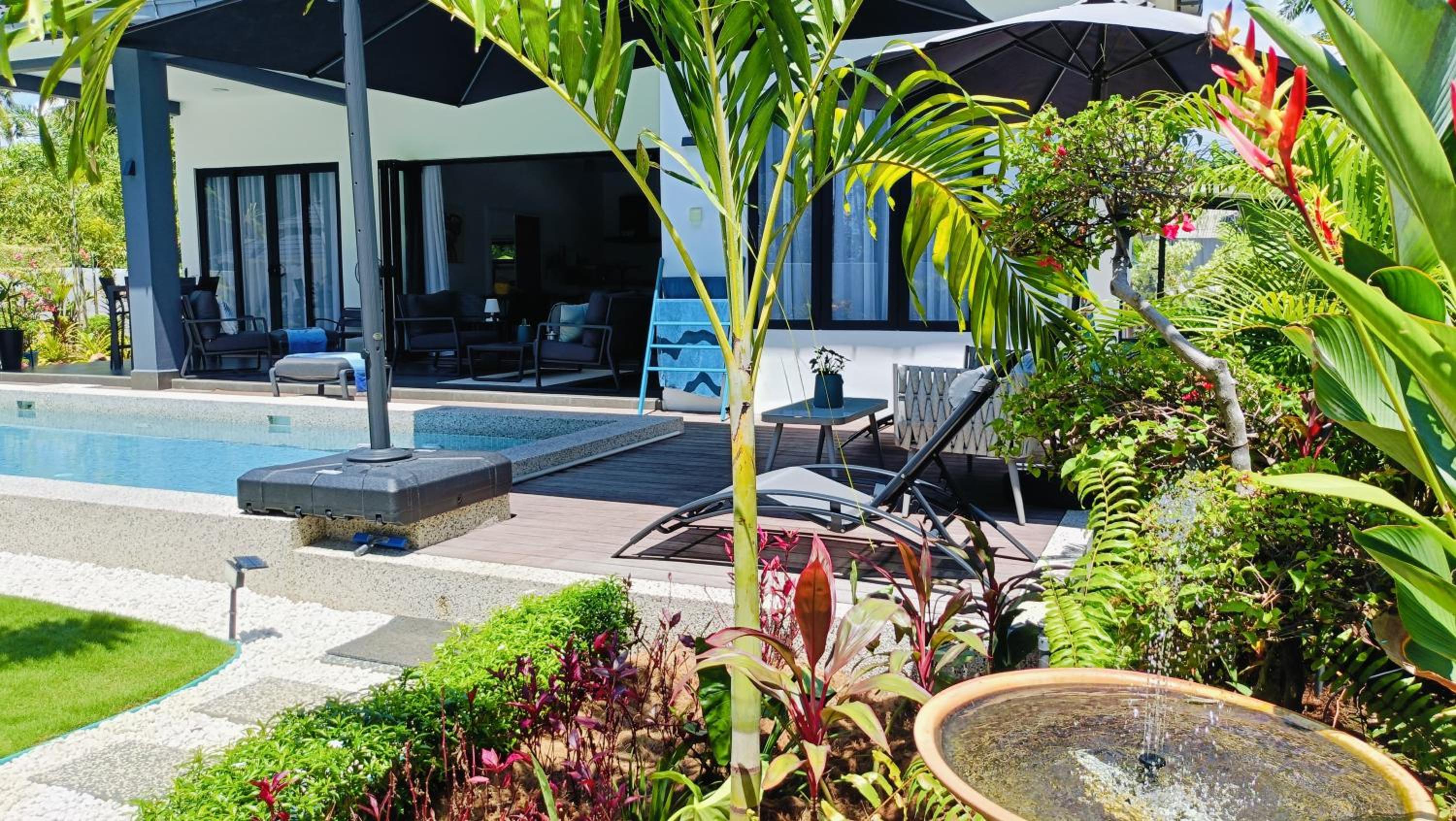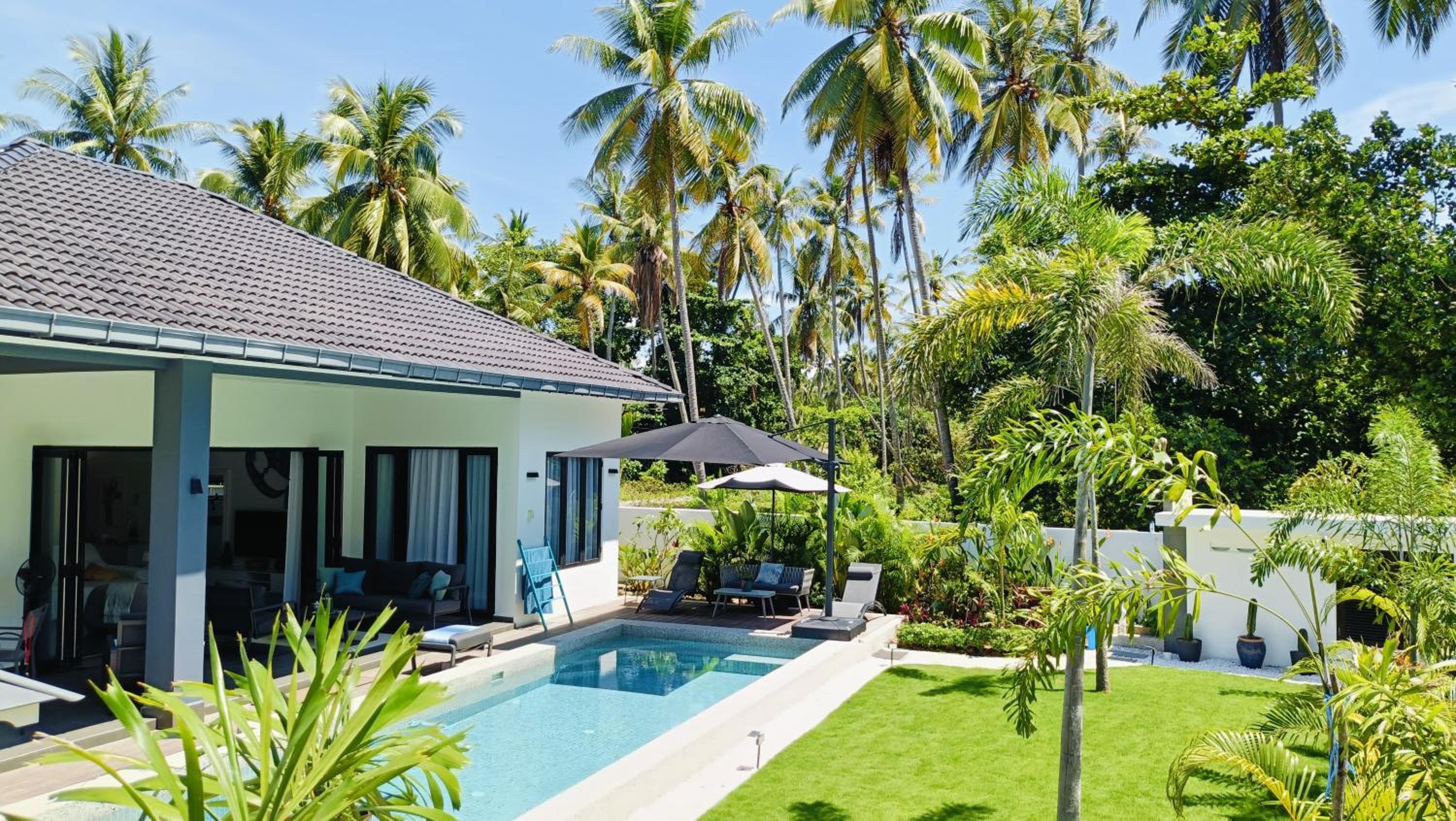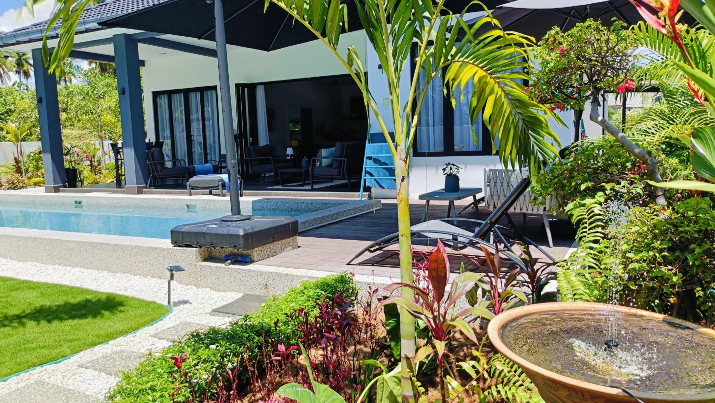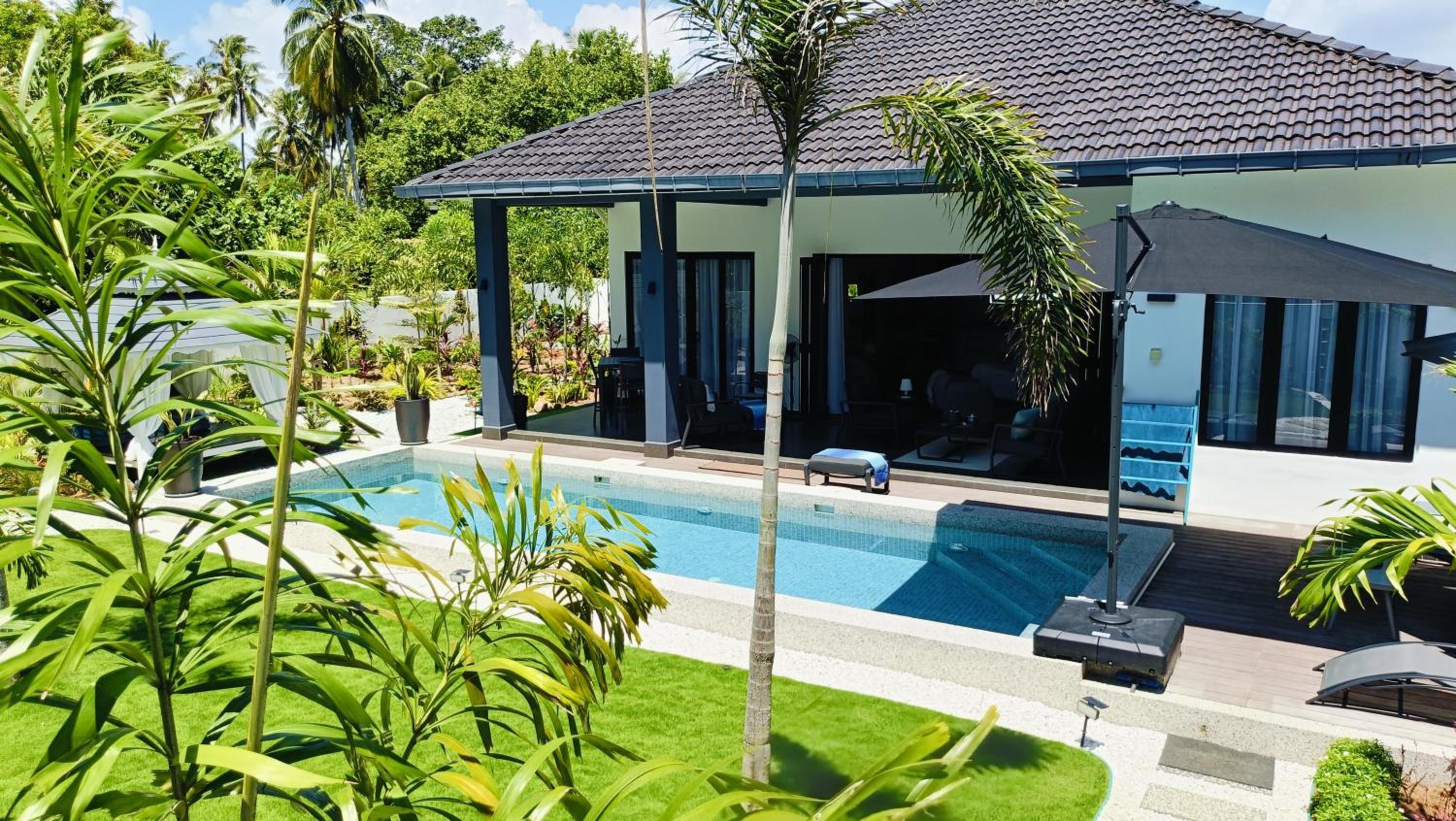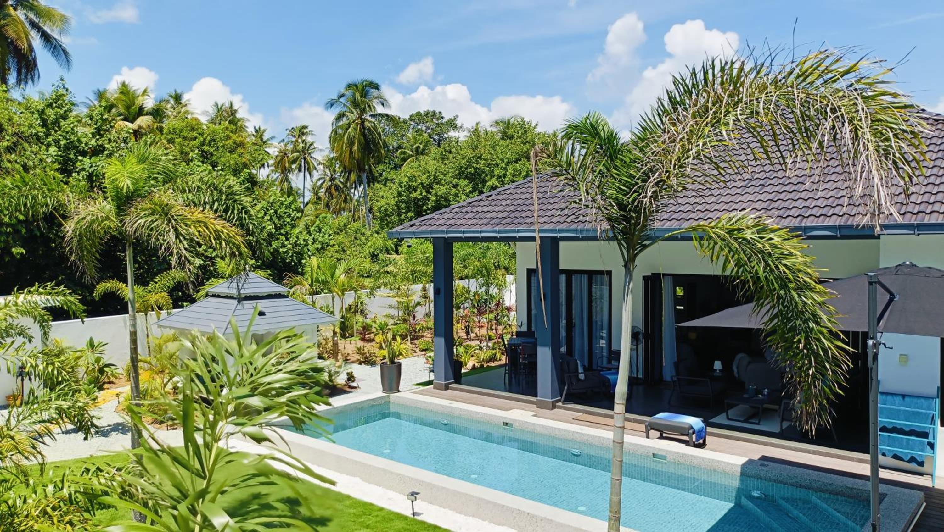 The place for you to find peace and relaxing your mind. You can enjoy the place with family as it offer a privacy. It was so peaceful and you can hear the sound of waves from the beach behind the villa.