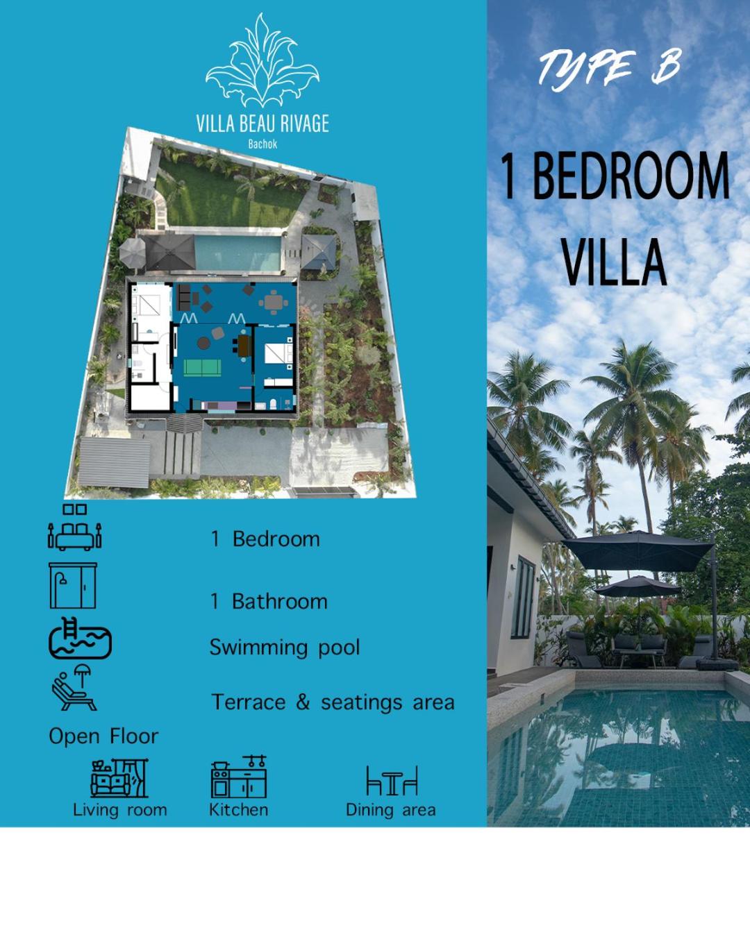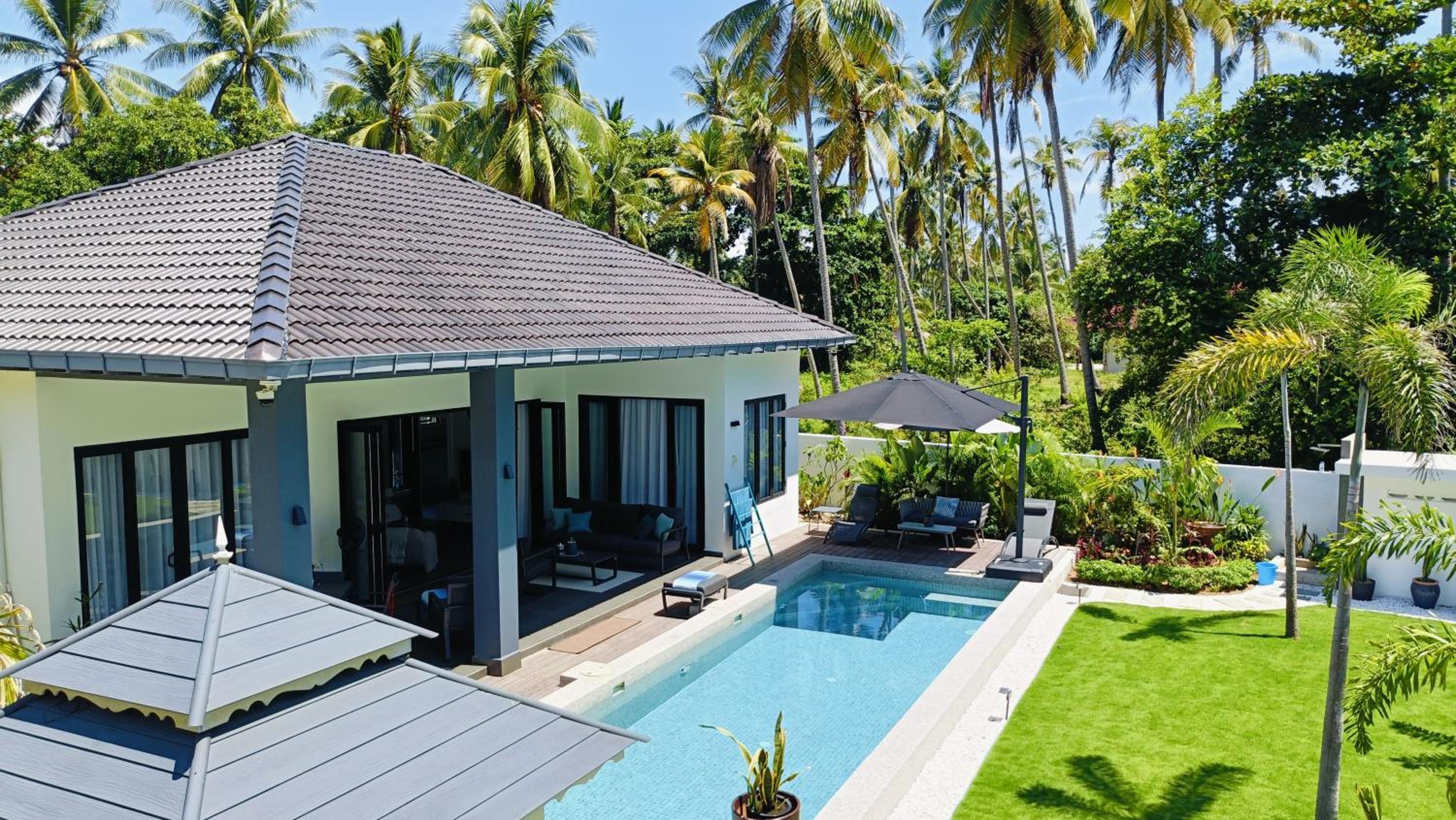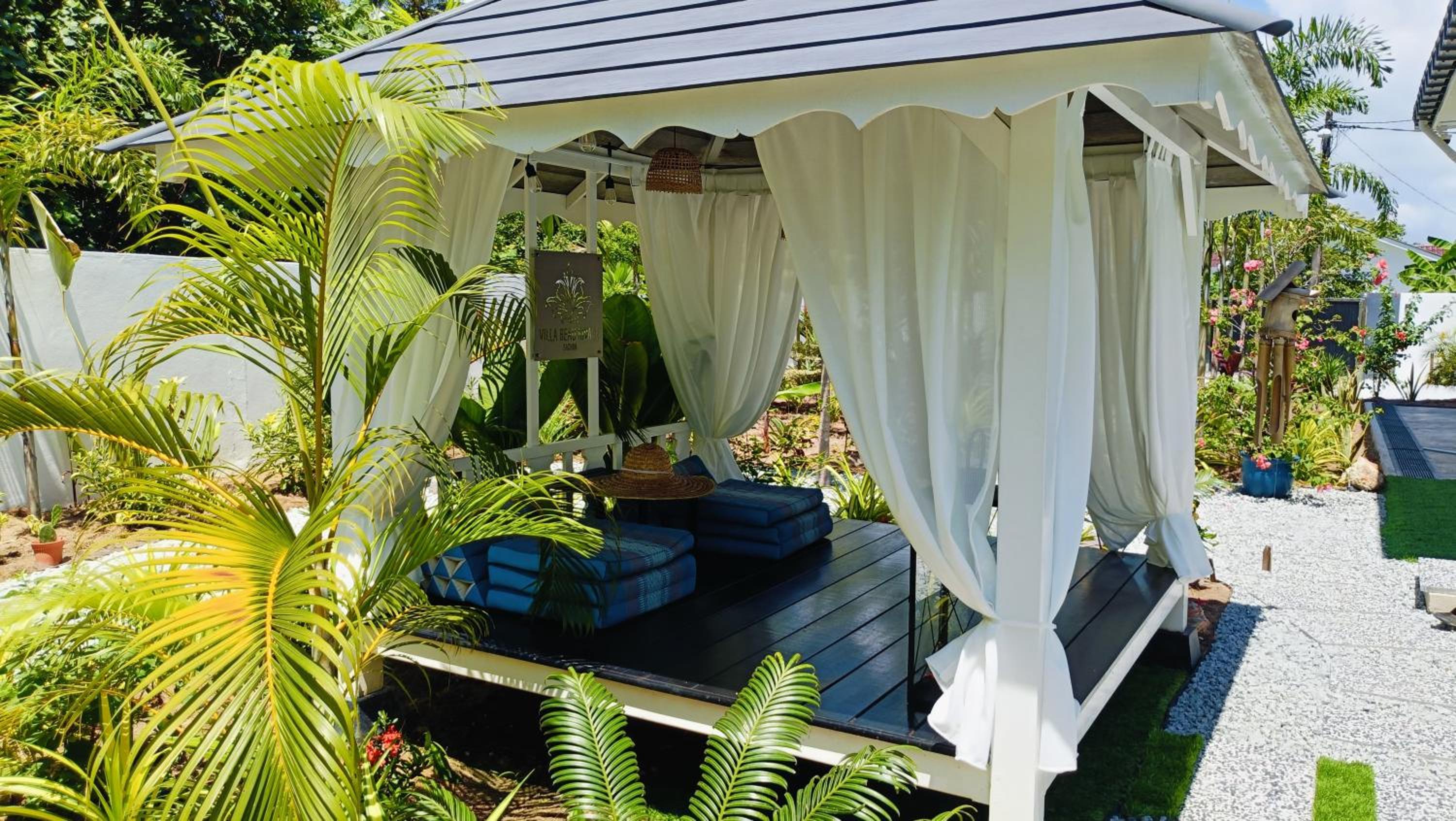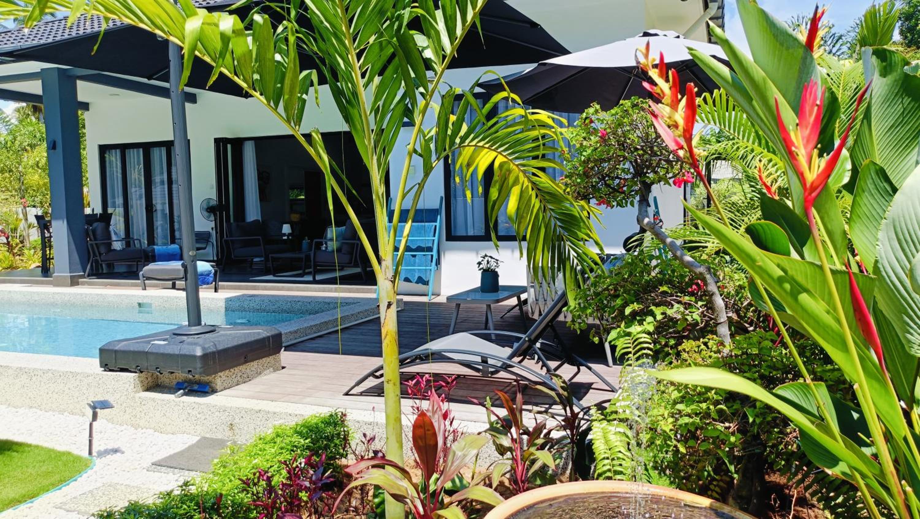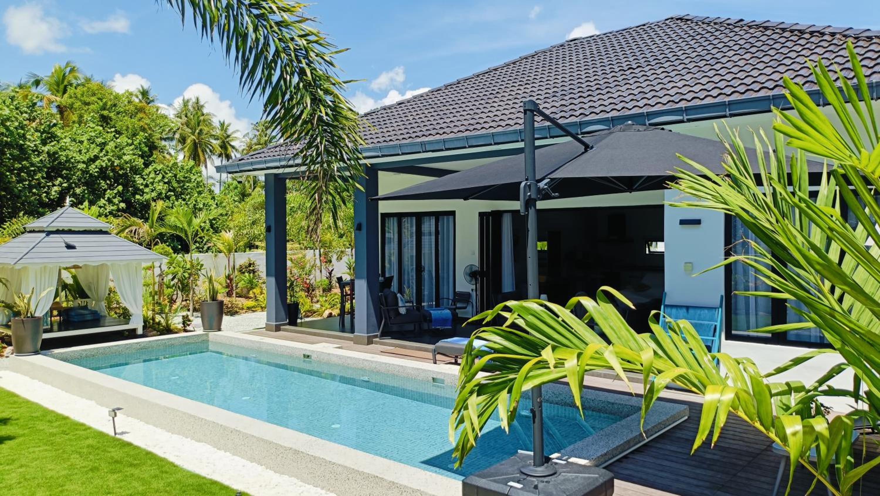 The place for you to find peace and relaxing your mind. You can enjoy the place with family as it offer a privacy. It was so peaceful and you can hear the sound of waves from the beach behind the villa.