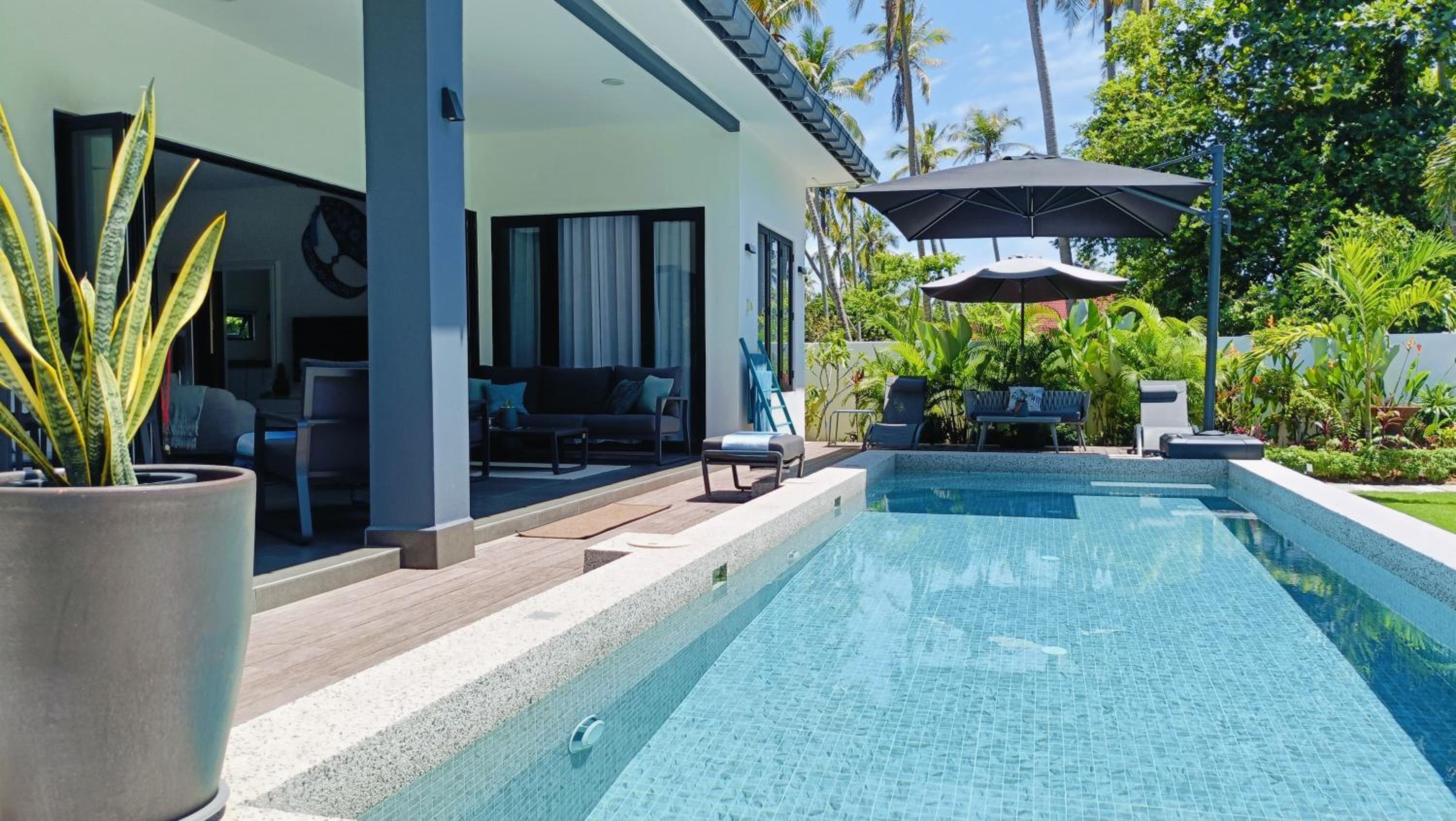 La villa est tout simplement magnifique et aménagée avec soin dans les moindres détails. Nous avons profité de deux chambres doubles confortables, d’une cuisine parfaitement équipée avec tous les ustensiles nécessaires, ainsi que d’une grande terrasse avec plusieurs coins détente, idéale pour se relaxer. La piscine est spacieuse et l’accès direct à une plage déserte permet de se baigner en toute tranquillité.