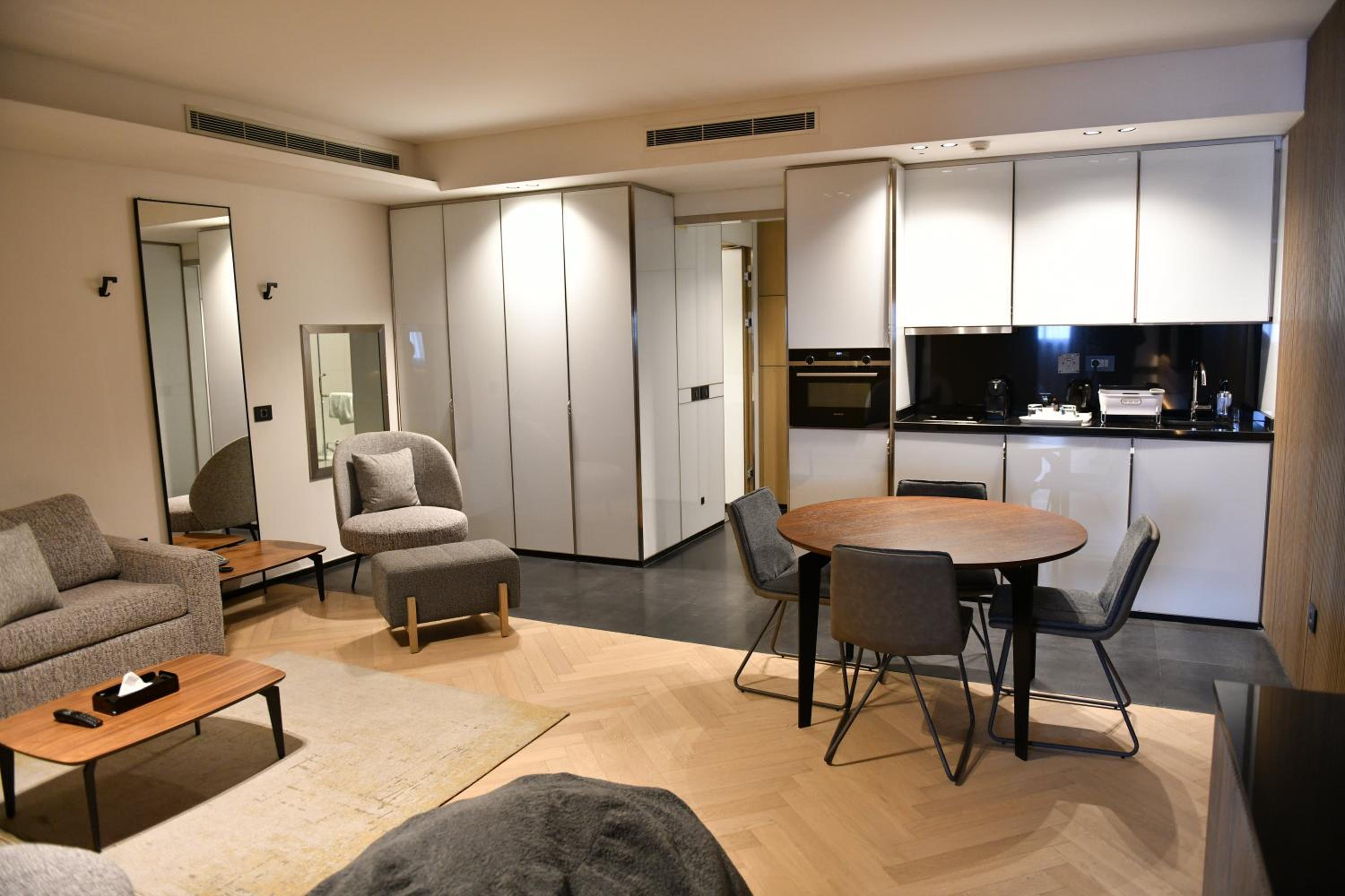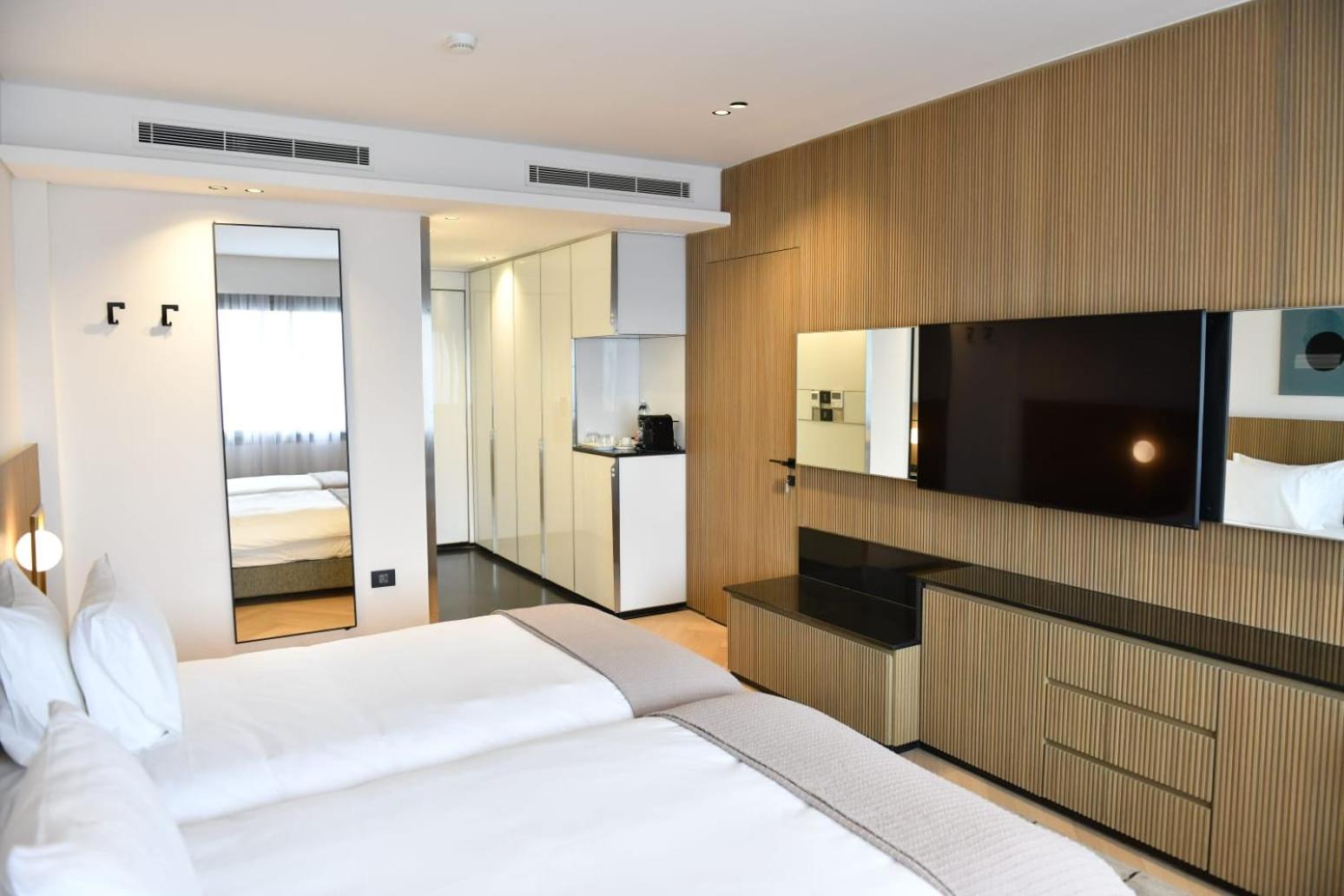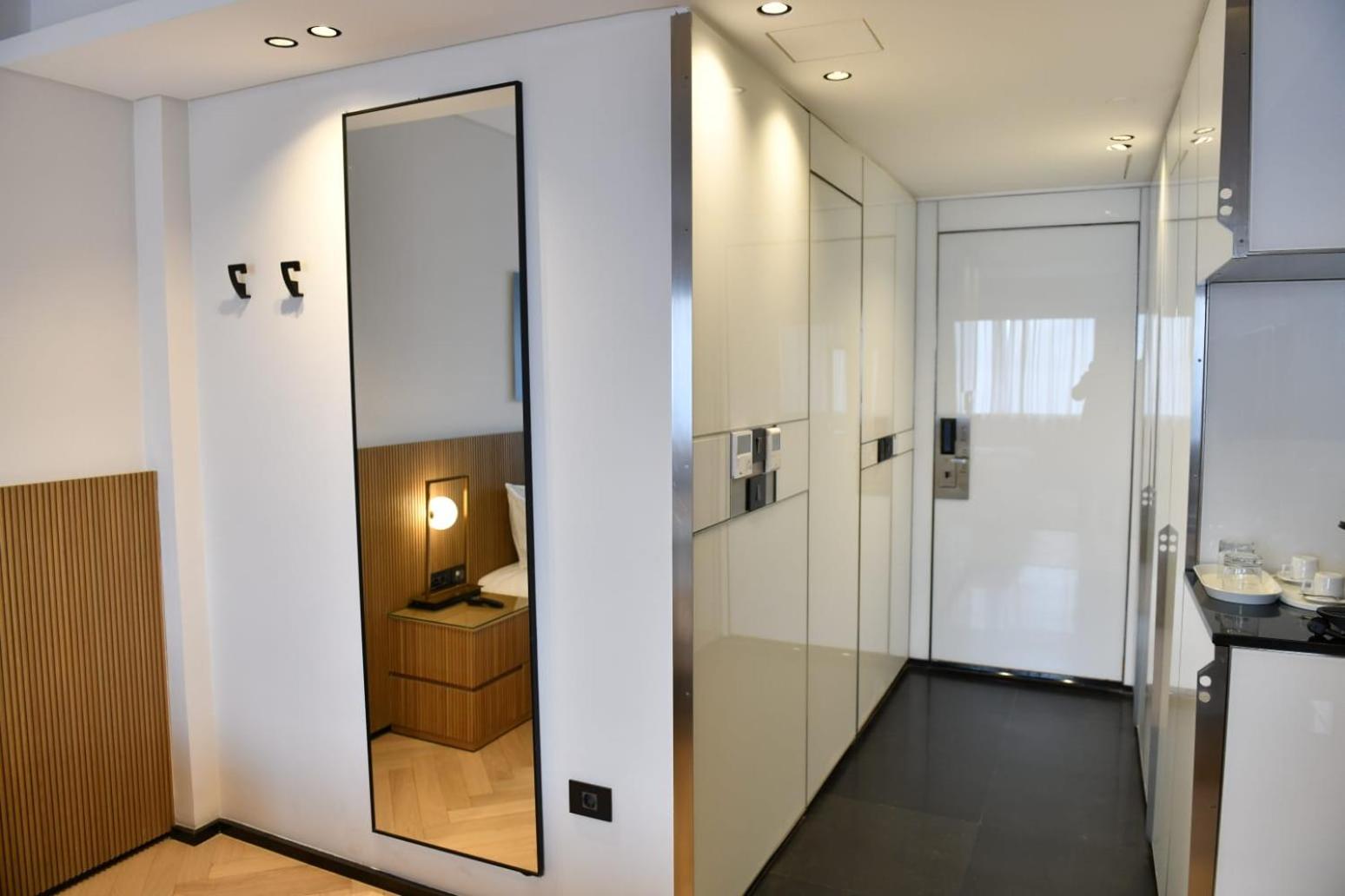 The room was more than spacious and sparkling clean! Very hot and pressurized water in the shower. Even equipped with a lovely small kitchen!