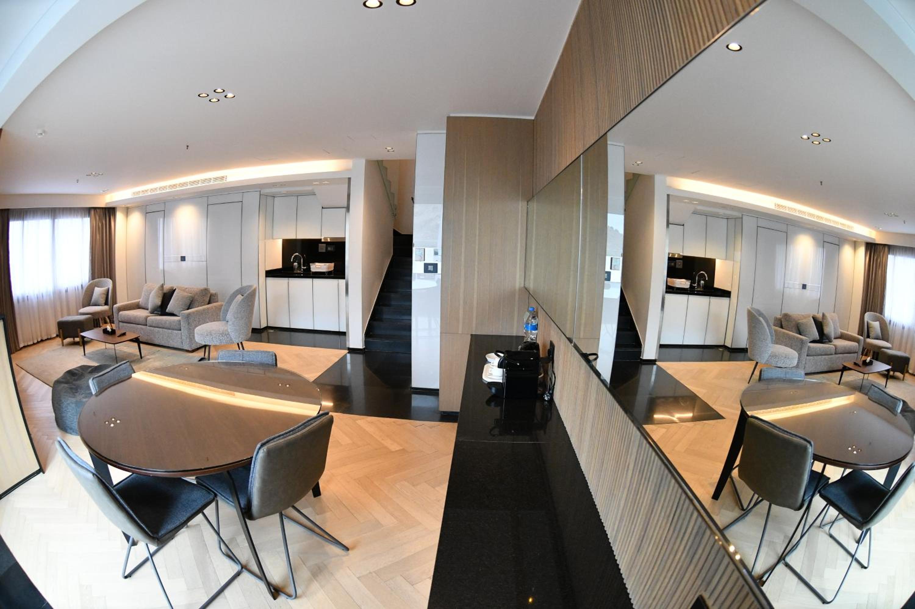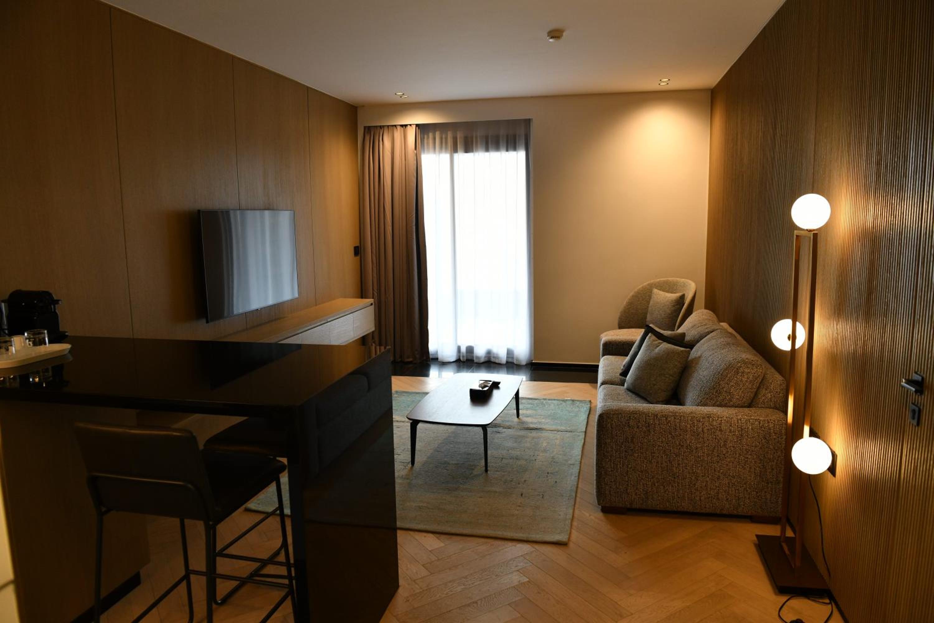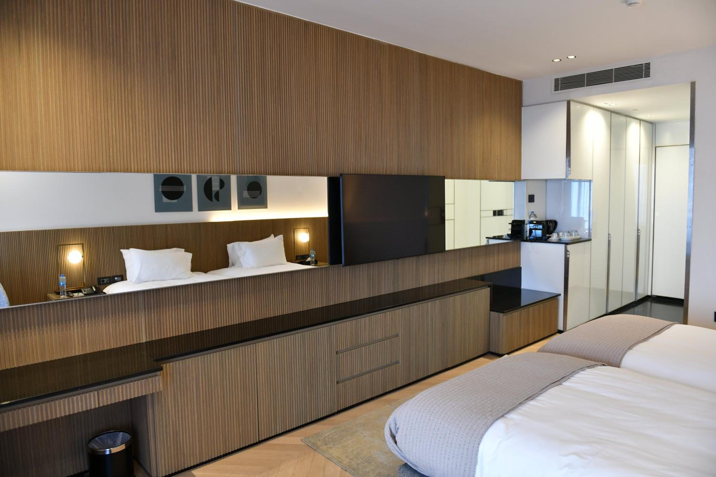 The room was more than spacious and sparkling clean! Very hot and pressurized water in the shower. Even equipped with a lovely small kitchen!