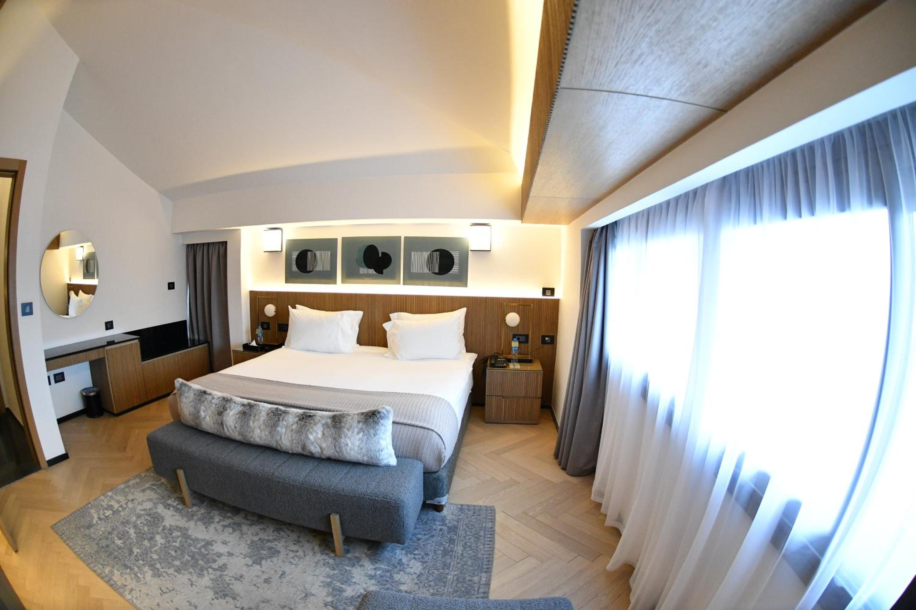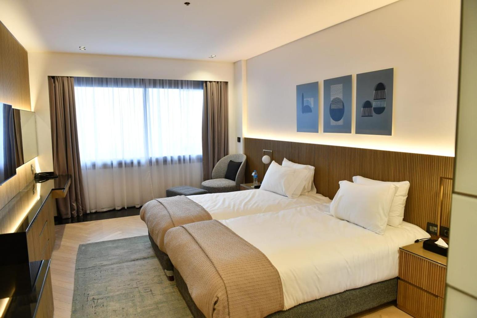 Modern Amenities: Enjoy the comfort of air-conditioned rooms with flat-screen TVs, safety deposit boxes, and private bathrooms. Indulge in conveniences like free WiFi, room service, and a 24-hour front desk.