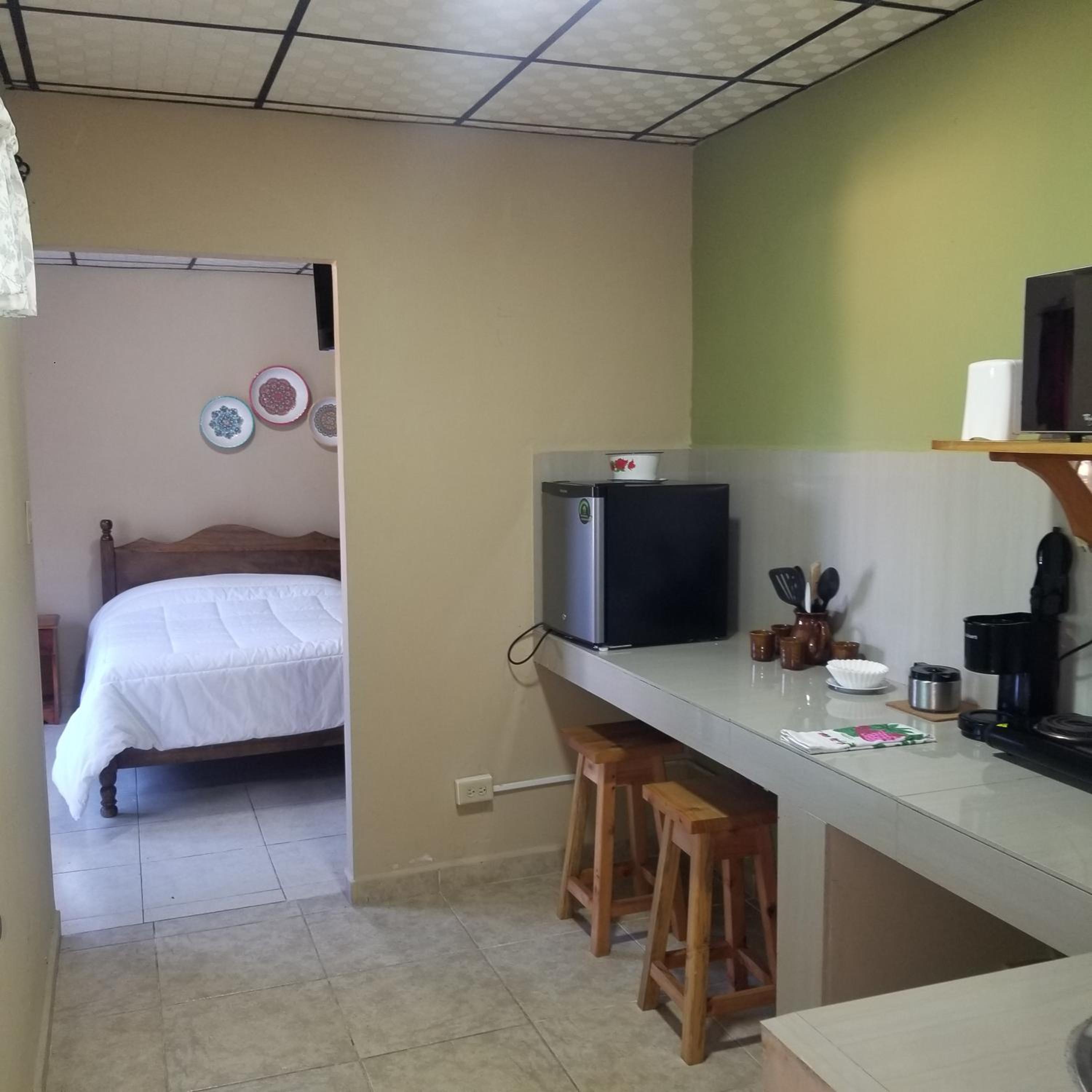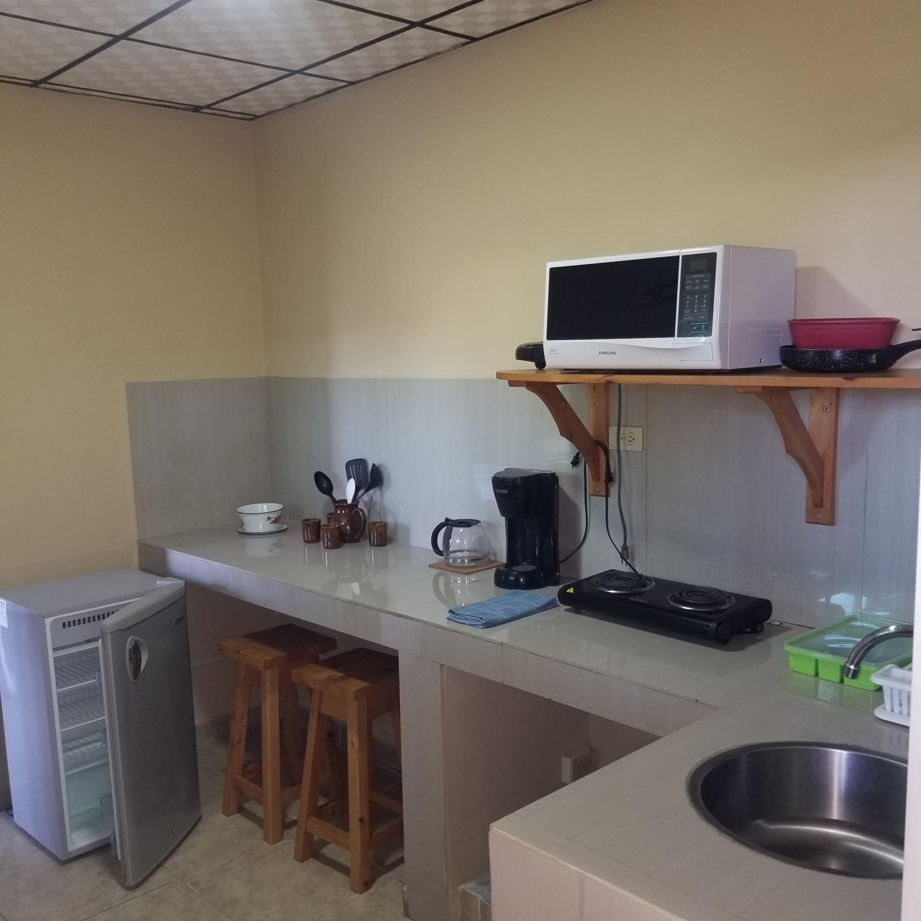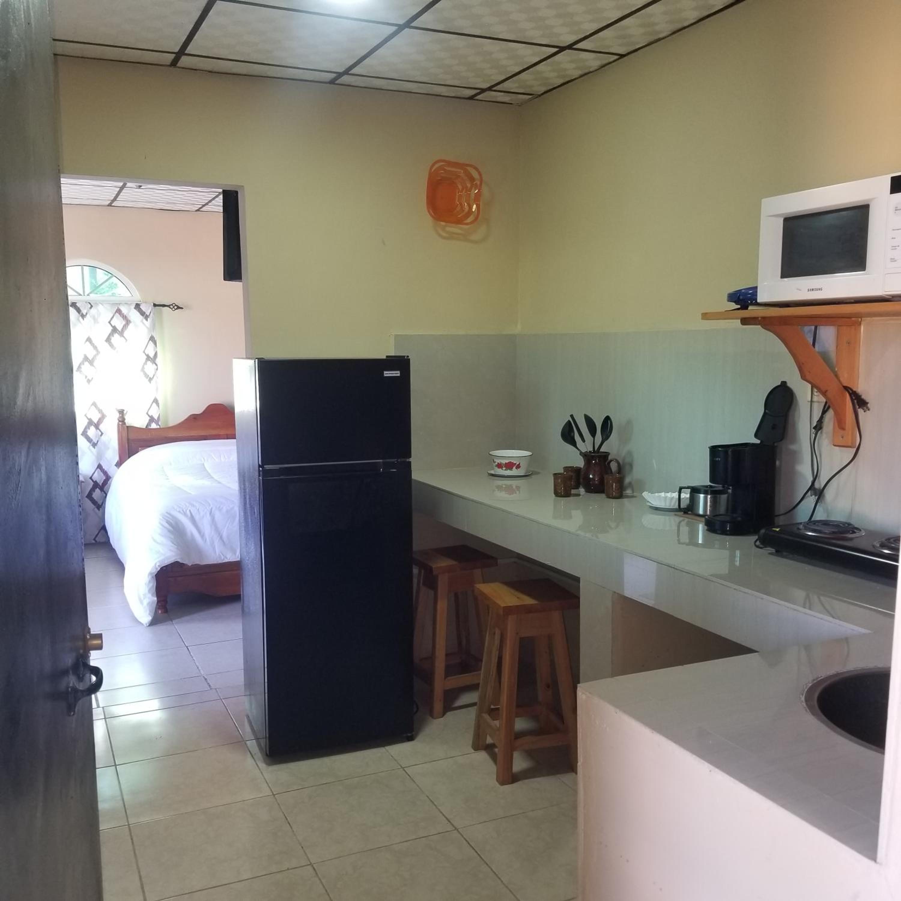 Kitchen could’ve used a pot holder, a few more forks and a sharp knife. Fry pan is uneven on bottom and didn’t sit on burner securely. Bathroom tile had some mold in the grout, but ample towels for our stay. Rooms are right next to highway, so traffic and truck noise during the night was disturbing. Maybe add a fan to the room for hot afternoons?