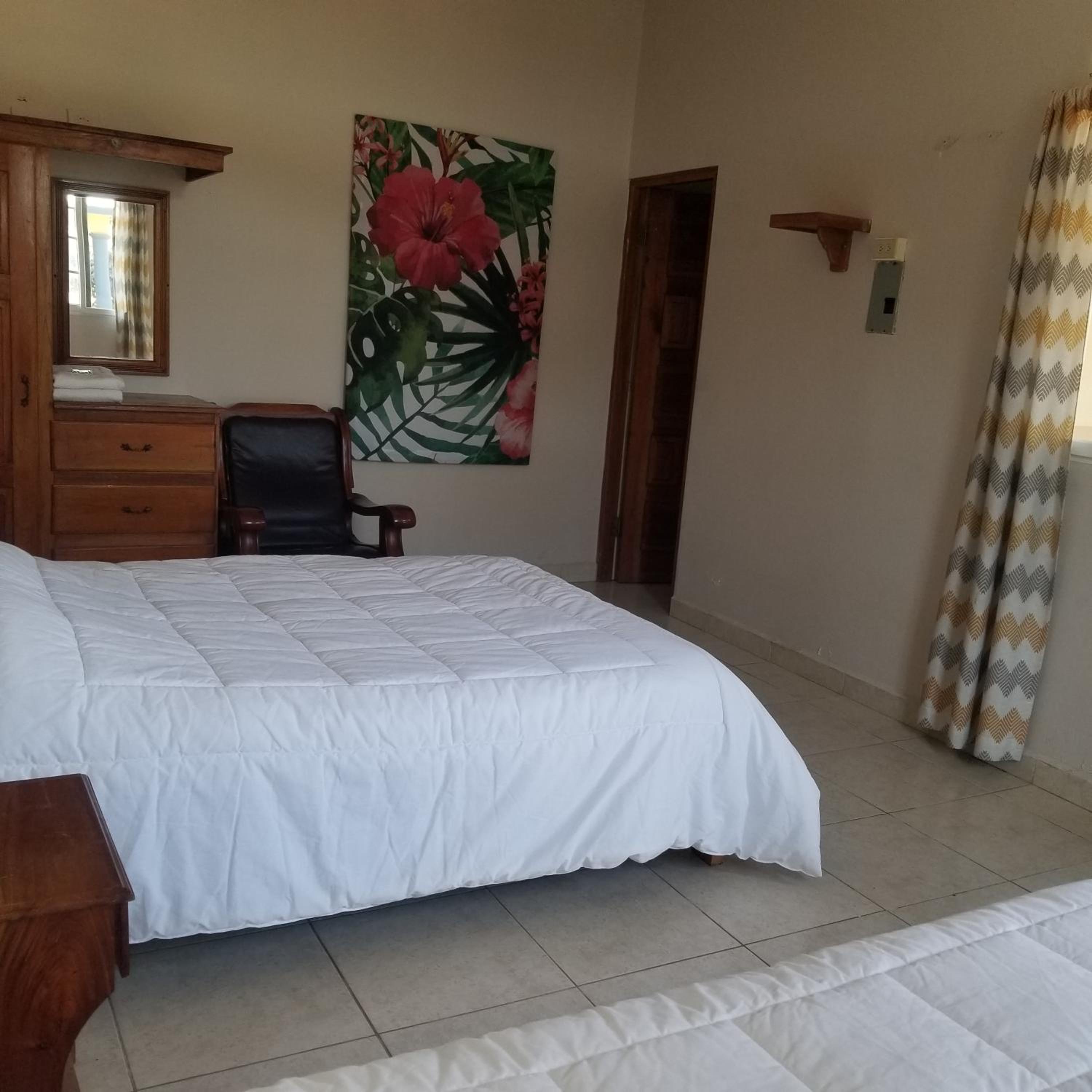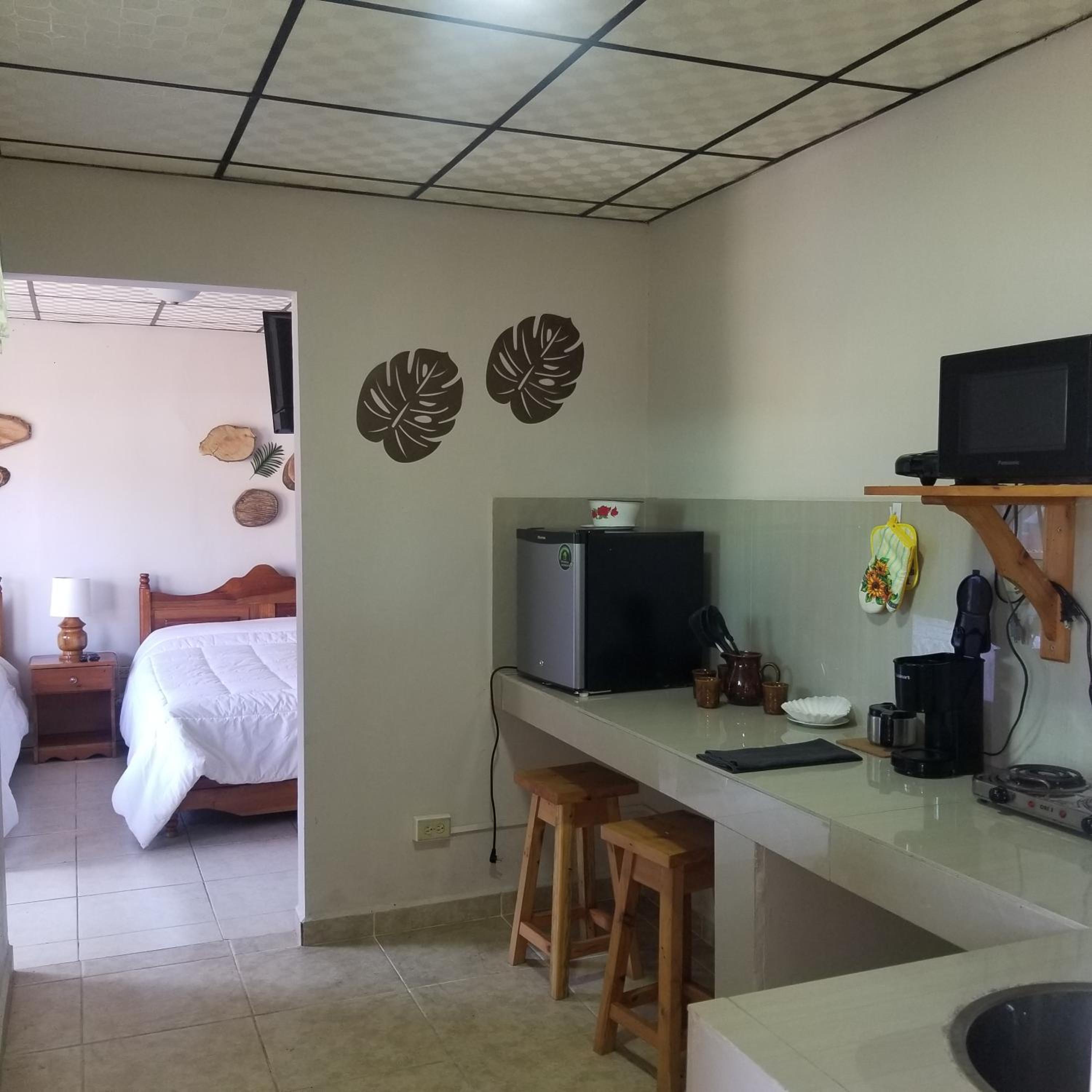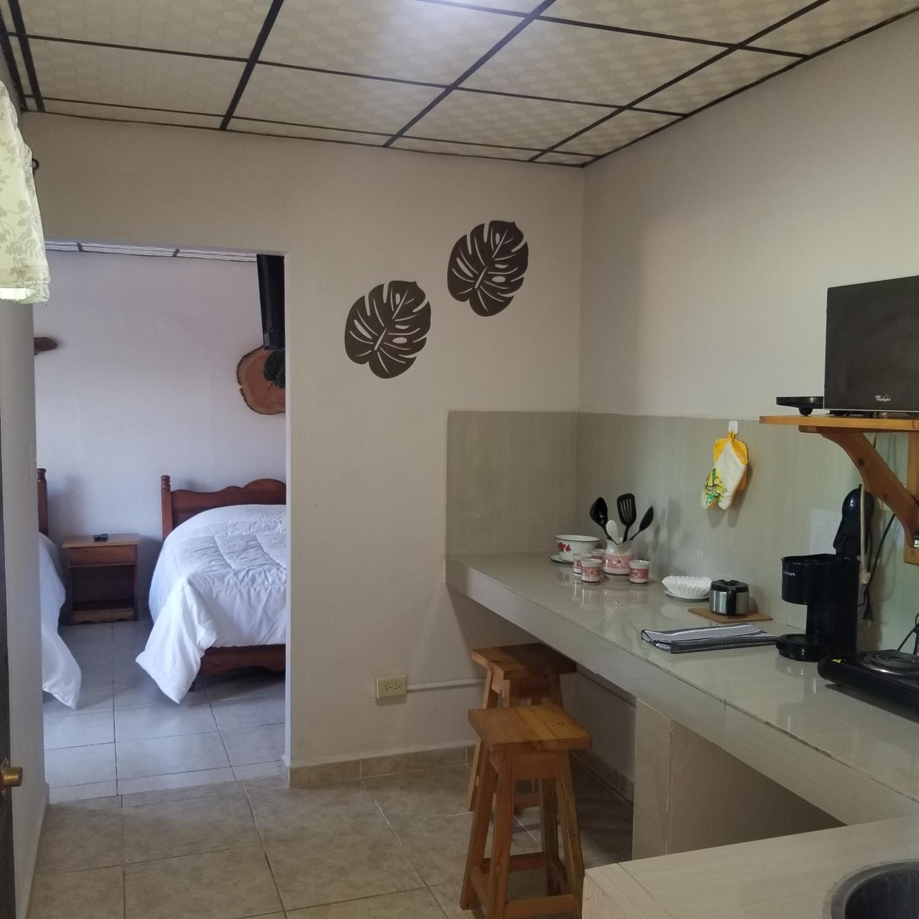 Kitchen could’ve used a pot holder, a few more forks and a sharp knife. Fry pan is uneven on bottom and didn’t sit on burner securely. Bathroom tile had some mold in the grout, but ample towels for our stay. Rooms are right next to highway, so traffic and truck noise during the night was disturbing. Maybe add a fan to the room for hot afternoons?