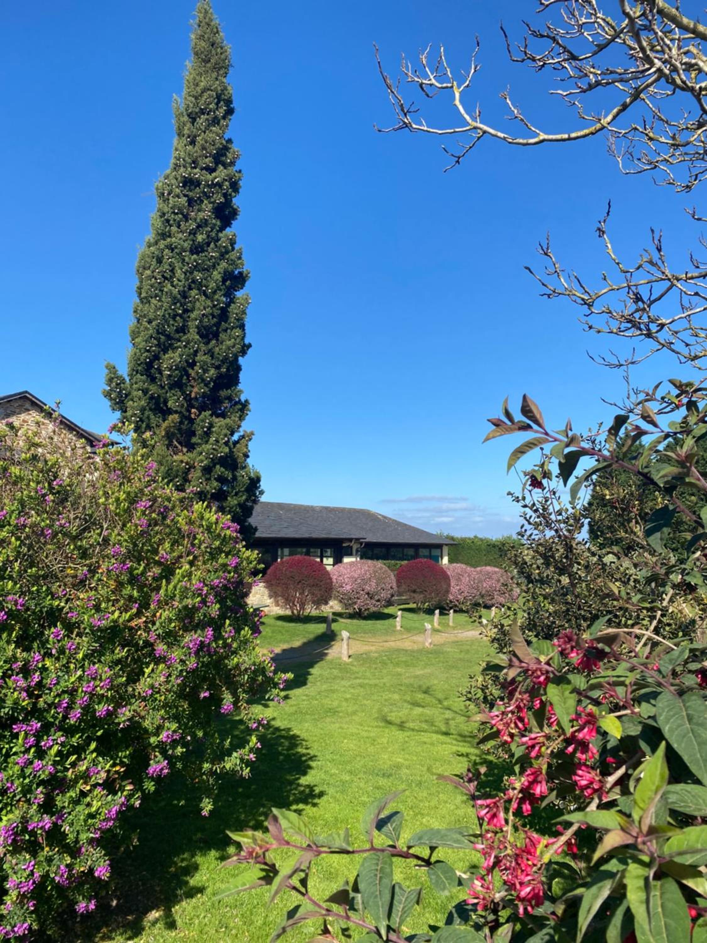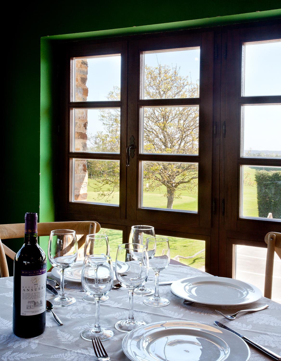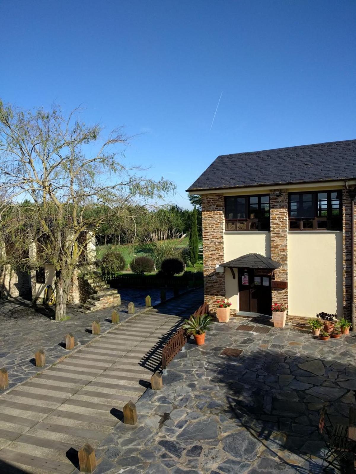 Las instalaciones no son como muestran las fotos, es mucho más pequeño y antiguo...Está al lado de campos donde pastan vacas y fuera huele algo a estiércol. Los jardines no los puedes pisar..solo para los jugadores de golf...la piscina más pequeña que en fotos y con cursos a determinadas horas, por lo que hay horas que no se puede usar. En la habitación un calor horrible!!, techo de vigas antiguas de madera y ventanas con contras. Sin aire ni ventilador, ni nevera.. sudando estuvimos. no tenía baño separado con pared y puerta( nunca lo habiamos visto!), sino un tabique a media altura de la habitación...se escucha todo y van los olores a la habitación....algo que no sé menciona en la descripción de habitaciones y deberian. Además escuchas a los de las otras habitaciones...llamé para preguntar y me dijeron que si estabas en la planta alta (habitación más cara) no se escuchaba, fue la que reservamos ,pero se oye perfectamente todo.....el personal sin ningún tipo de interes por hacer que tú estancia sea más cómoda , bastante secos..salvo Natalia que fue amable. En resumen no entendemos las valoraciones de 10 que vimos porque muy lejos de la realidad...creo que las personas que buscan hotel en la zona deben saber esto y decidir si aún así quieren alojarse ahí, si nosotros lo hubieramos sabido por supuesto que no hubiéramos ido....