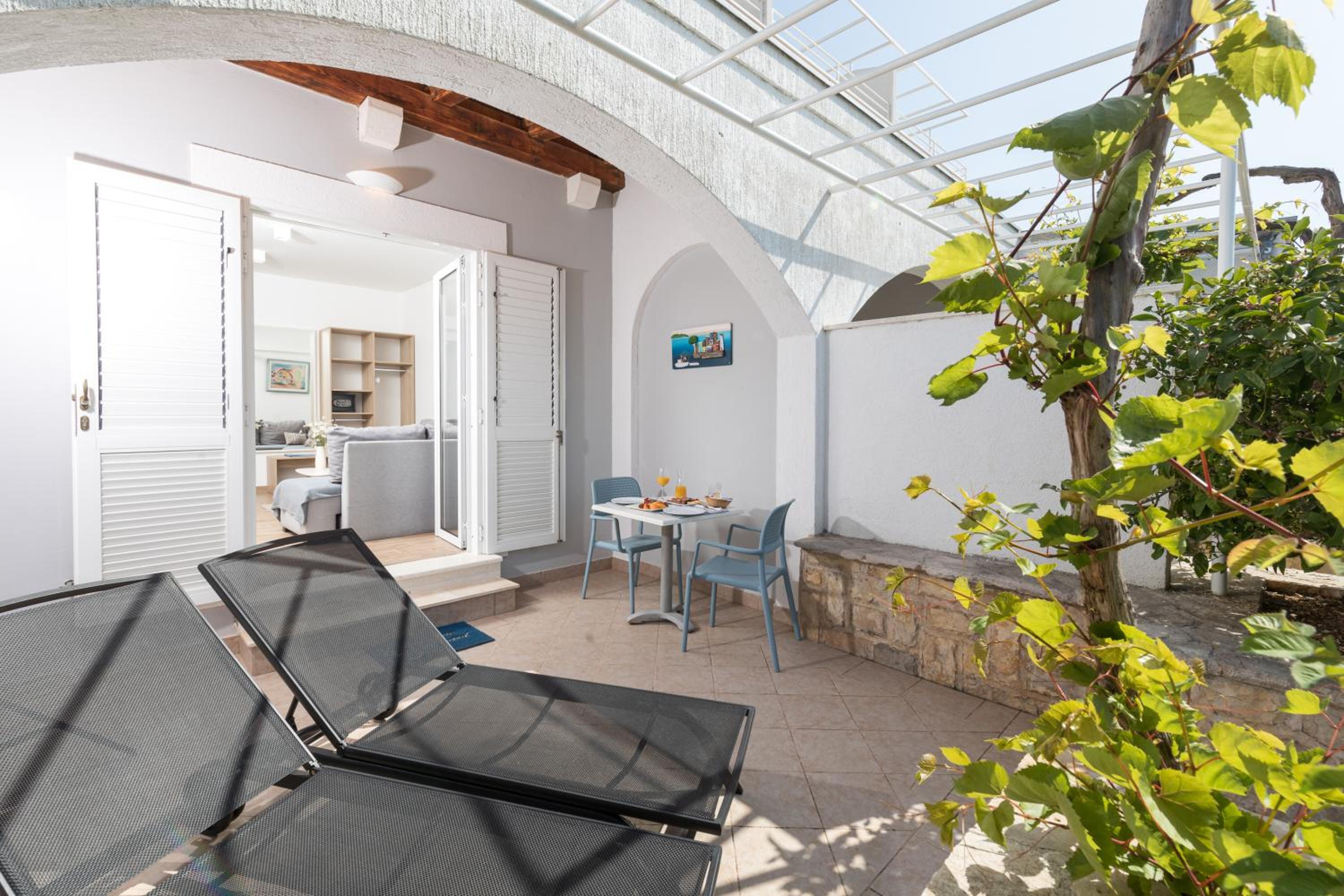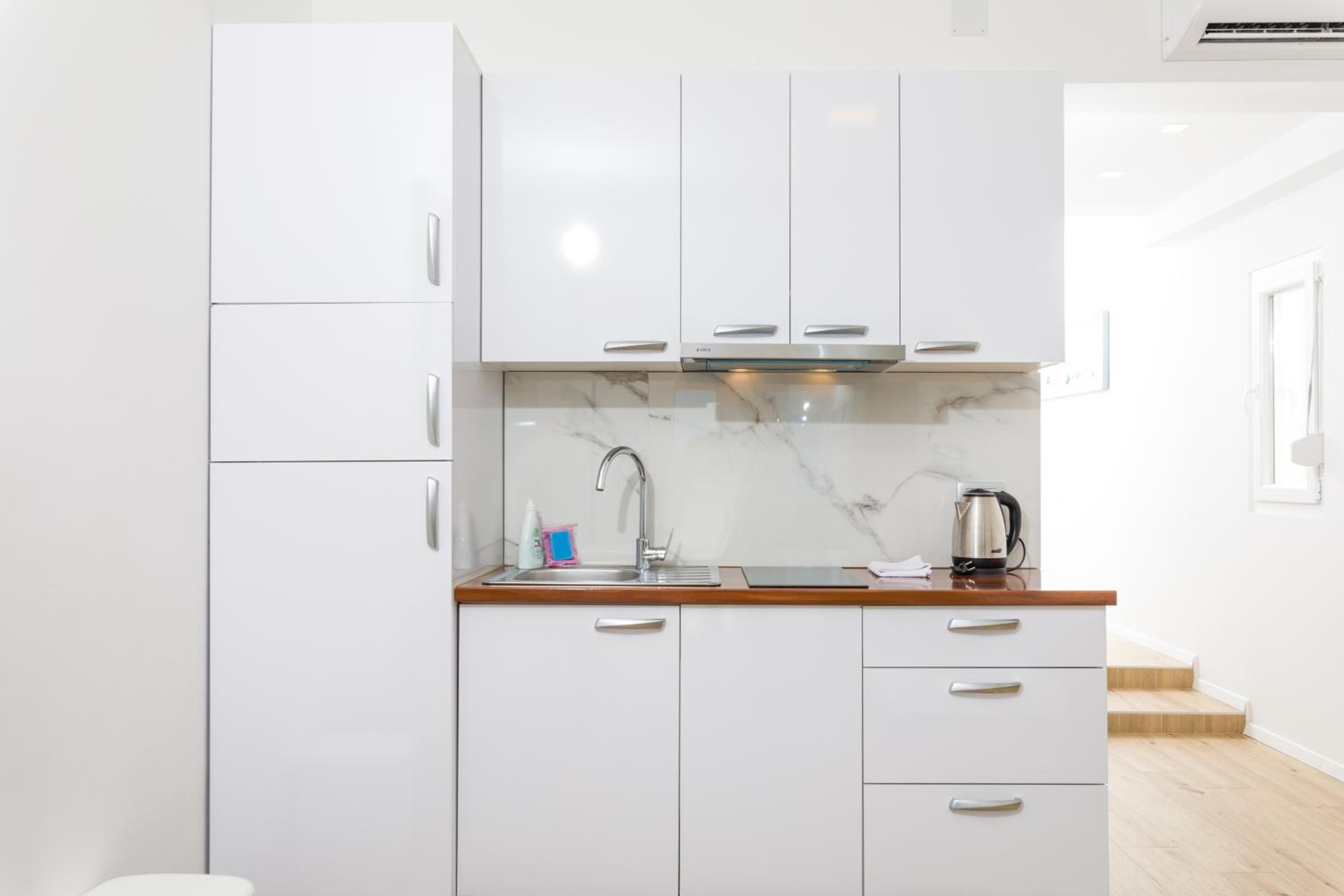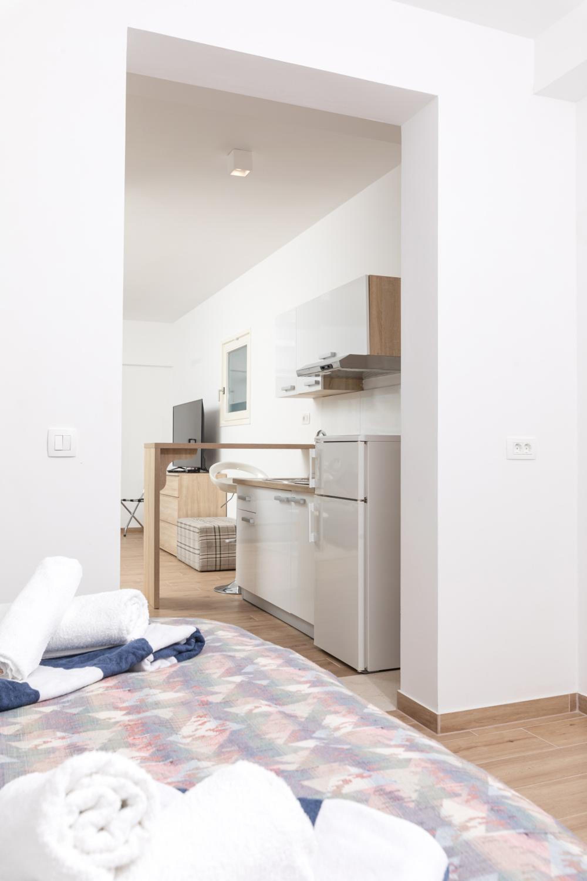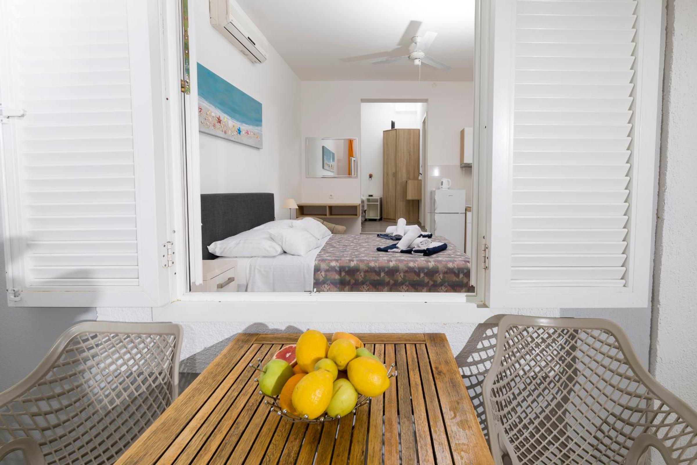 The amazing location of this place is impossible to capture in photographs! When relaxing in the infinity pool the sea stretches out in front of you as far as the eye can see. The pool was never too busy. Well priced drinks and snacks at the pool bar. Numerous amazing spots for sea swimming can be found within 10 minutes' walk of the hotel (some of these are not beaches but places where you can climb into the water from the rocks - but we found them safe and easy to navigate). Beautiful, calm, crystal clear water with 360 views. The apartment was spotlessly clean and the bed comfortable. The family and staff make a special effort to welcome you and make sure all your needs are attended to. We felt thoroughly relaxed by the time of leaving and would return!