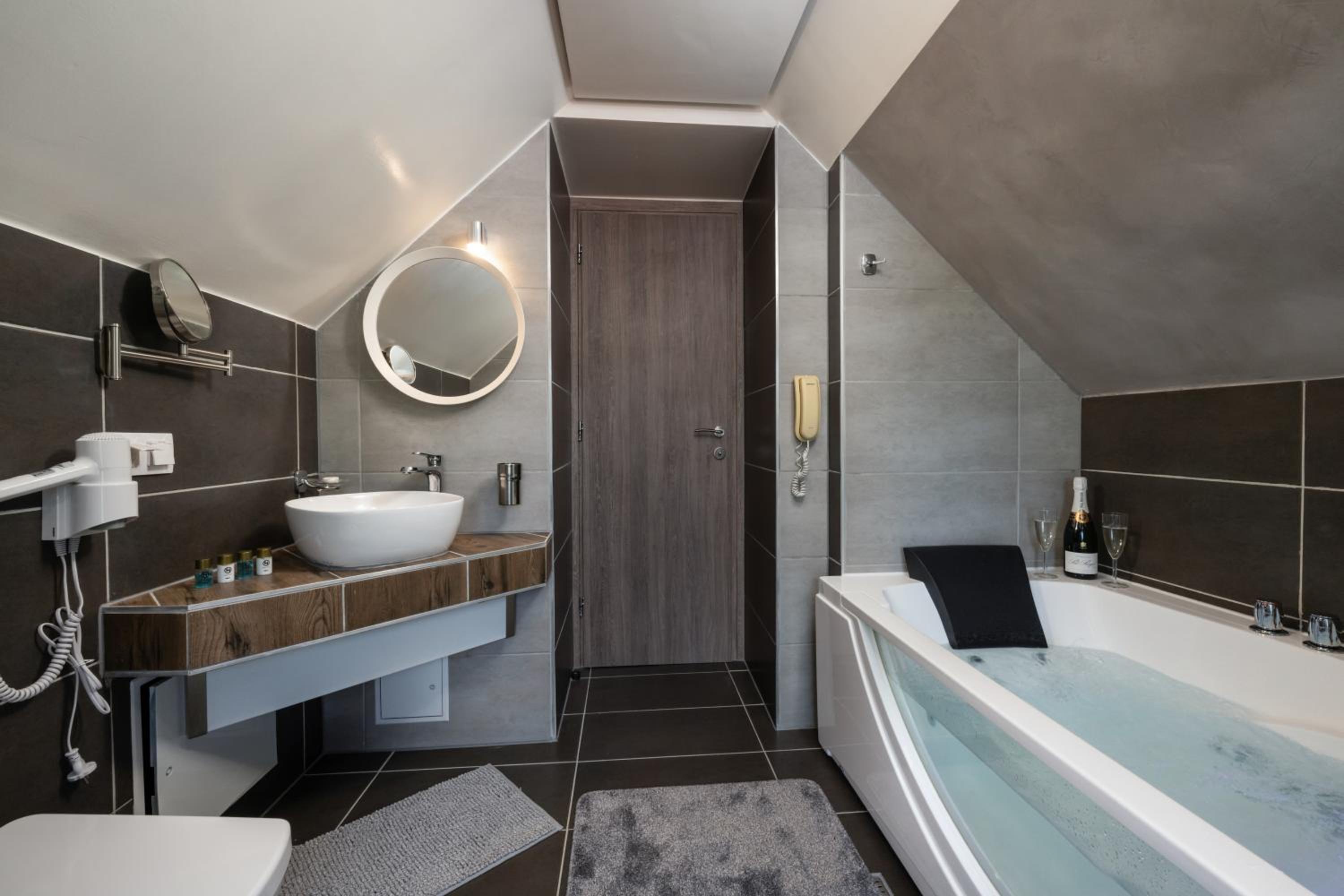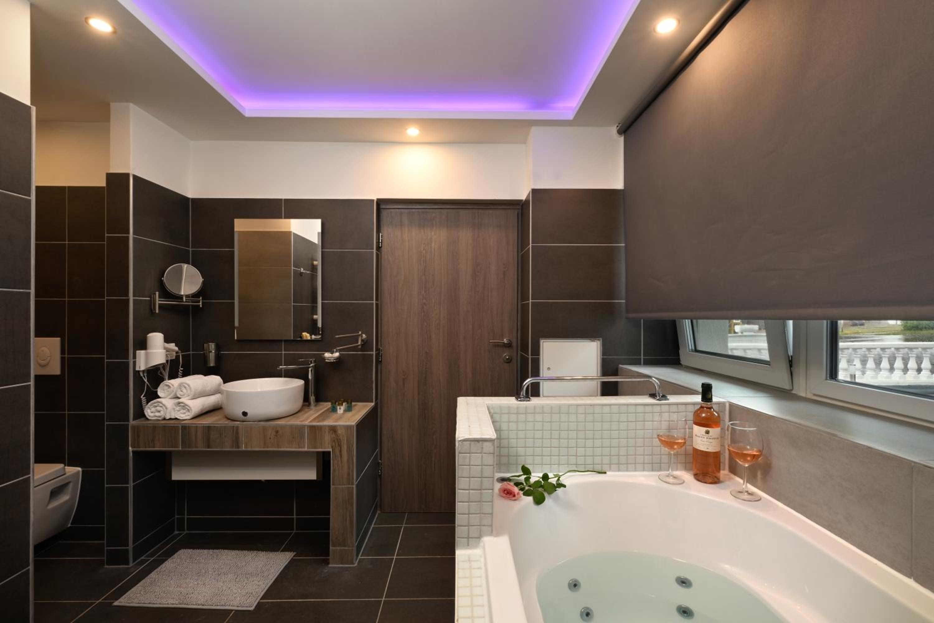 Der exzellente Wellnessbereich mit mehreren Saunen, Jacuzzi und beheiztem Außenpool lädt zum Entspannen ein. Das Frühstück überzeugt mit großer Auswahl und hervorragender Qualität.