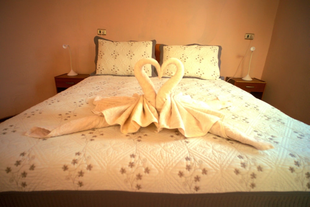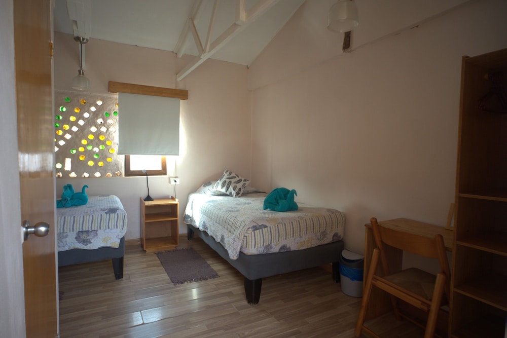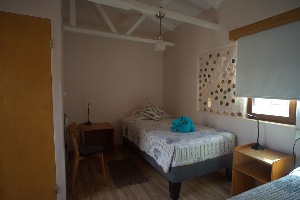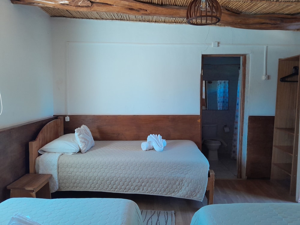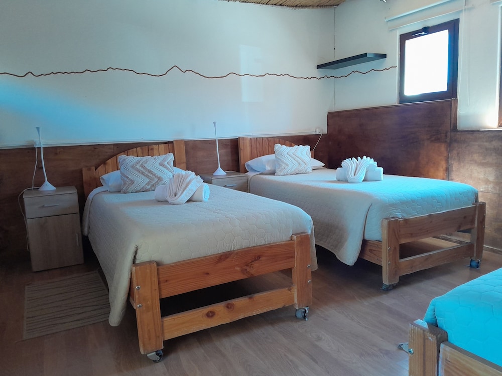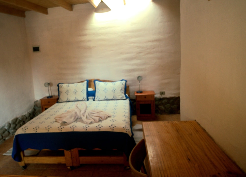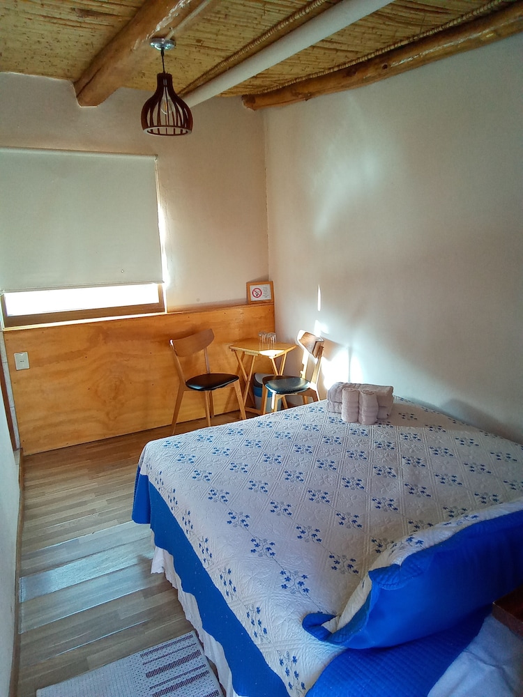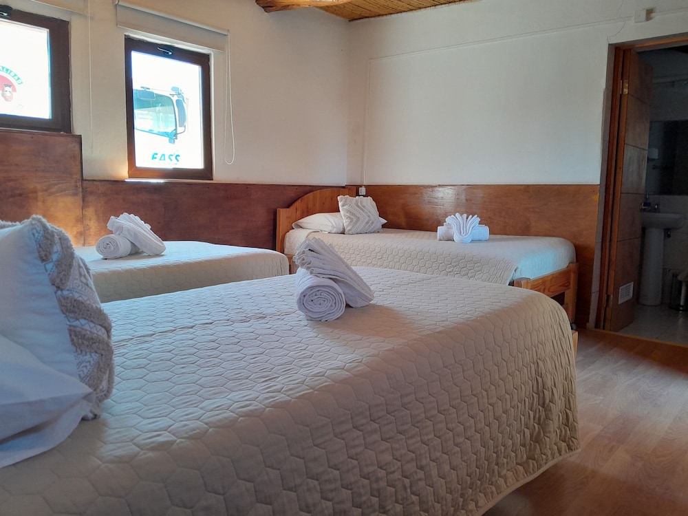 Que baita surpresa positiva que tivemos nesse hotel! Pelas fotos, eu estava com certa dúvida sobre o hotel, mas, quando chegamos lá na recepção , vimos um local simples, de fato, mas extremamente bem cuidado, organizado, limpo e cheiroso. Fomos MUITO bem recebidos lá, todos os funcionários atenciosos e hiper simpáticos em todos os momentos. O quarto seguia o mesmo padrão da recepção, super bem cuidado e limpinho. As camas eram confortáveis, bem como o resto da instalação. Apesar de não ter ar condicionado no quarto, tínhamos uns aquecedores que, mesmo que não muito potentes, para mim, foram suficientes - não passamos frio mesmo no inverno. Não chegamos a tomar café da manhã pois sempre saíamos muito cedo, mas eles nos entregavam um saquinho com um sanduíche gostoso, algumas bolachas, barrinha de cereal e suco. O hotel conta com local para lavar roupas e varal, e todos os funcionários sempre se colocam à disposição para ajudar os hóspedes. A localização é ótima, na rua principal, a Caracoles, e, pelo que oferece, tem um custo bem justo, mais barato do que alguns dos hotéis de lá. O banho é muito quente e eventualmente é complicado de ajustar a água para que ela não fique tão quente, mas isso em nada prejudica a experiência no hotel. O hotel tem alguns cachorrinhos que moram lá, é um local bem agradável.