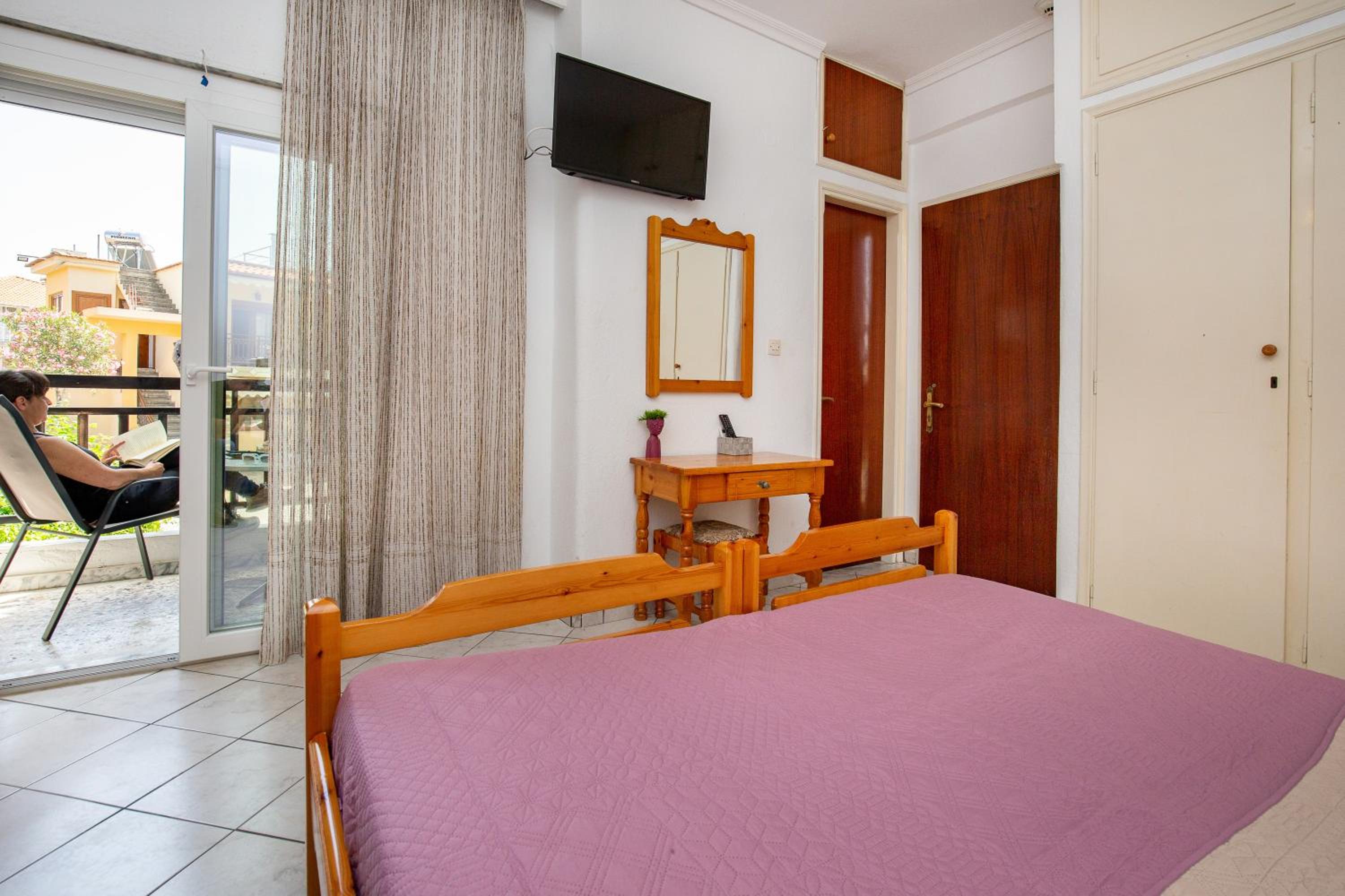 Oh my lord. Ok, so this was a last minute booking at 8pm after a visit from hell to a local villa... The landlady/manager Eleftheria was amazing! She came to meet me at 22:00 to welcome me in and show me the little flat. She even made sure to grab me extra sachets for a mosquito repellent! Comfortable beds. Perfect for a quick stay as I needed a shower, fridge, hair dryer and to rest quietly in a cool place before continuing my journey the next day. The flat has a gorgeous little balcony, it's quiet, it's just off a main road and close to the bustling centre and beach. Everything was nice and clean and tidy. Eleftheria, you are amazing! Efharisto poli!