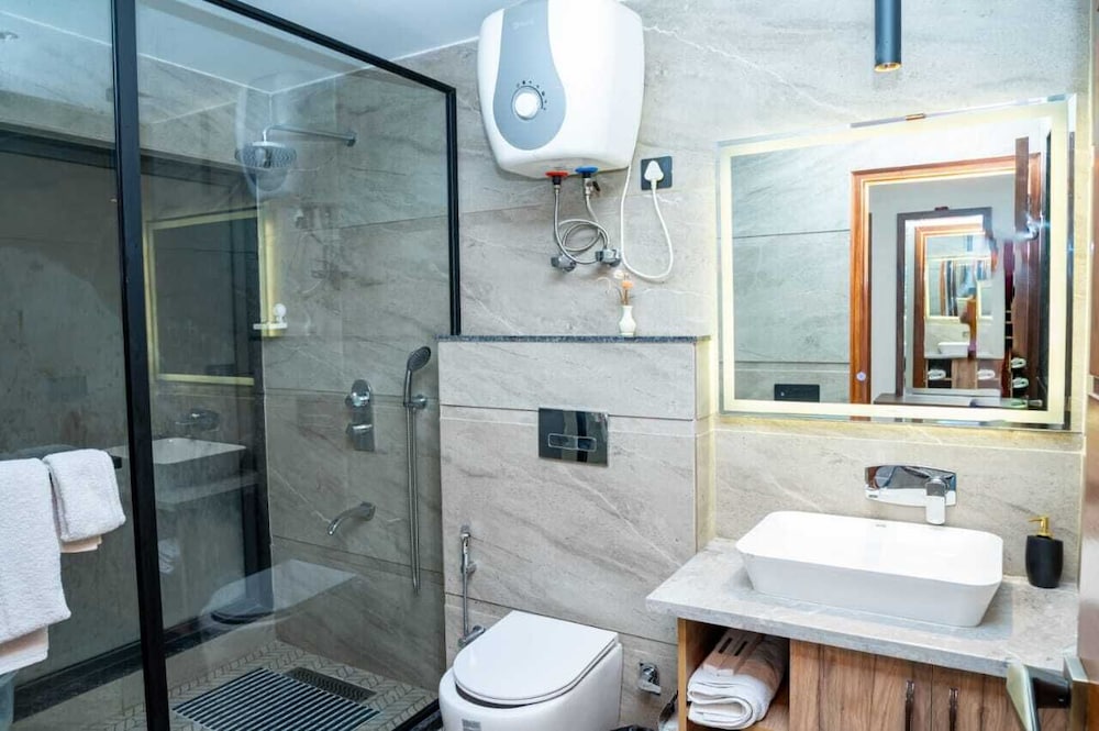 Modern, generous rooms in a quiet part of Delhi, 30 minutes from the airport. Good Wi-Fi.